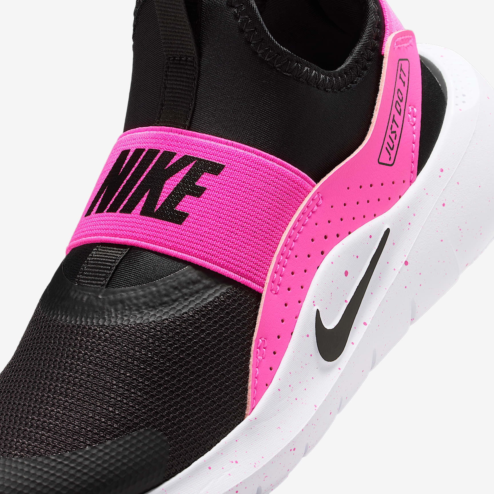 Designed for getting into fun fast, the Flex Runner 4 is made to be easy for kids to pull on. Its bootie-like design is flexible with stretchy straps that secure their fit. Flex grooves in the outsole allow little feet to move naturally, helping little ones find their footing. What's New You spoke and we listened. For the Flex Runner 4, we've updated the fit of the midfoot strap and the collar to help make these easy for kids to slip on and comfortable enough to wear all day. Pull on and go Pull tabs on the heel and tongue work with a stretchy inner sleeve to help make these shoes easy for kids to put on themselves. Elastic straps run behind the heel and across the top of the foot to provide a snug, secure feel. Play anywhere Flex grooves in the outsole add flexibility, helping every step feel natural. Multi-surface traction works with sturdy foam that wraps around the heel to provide grip and stability when kids shift directions. Durable comfort and support We reinforced the toe box and used durable materials throughout to help these kicks stand up to how kids play. Soft, springy foam in the midsole helps cushion their every step.