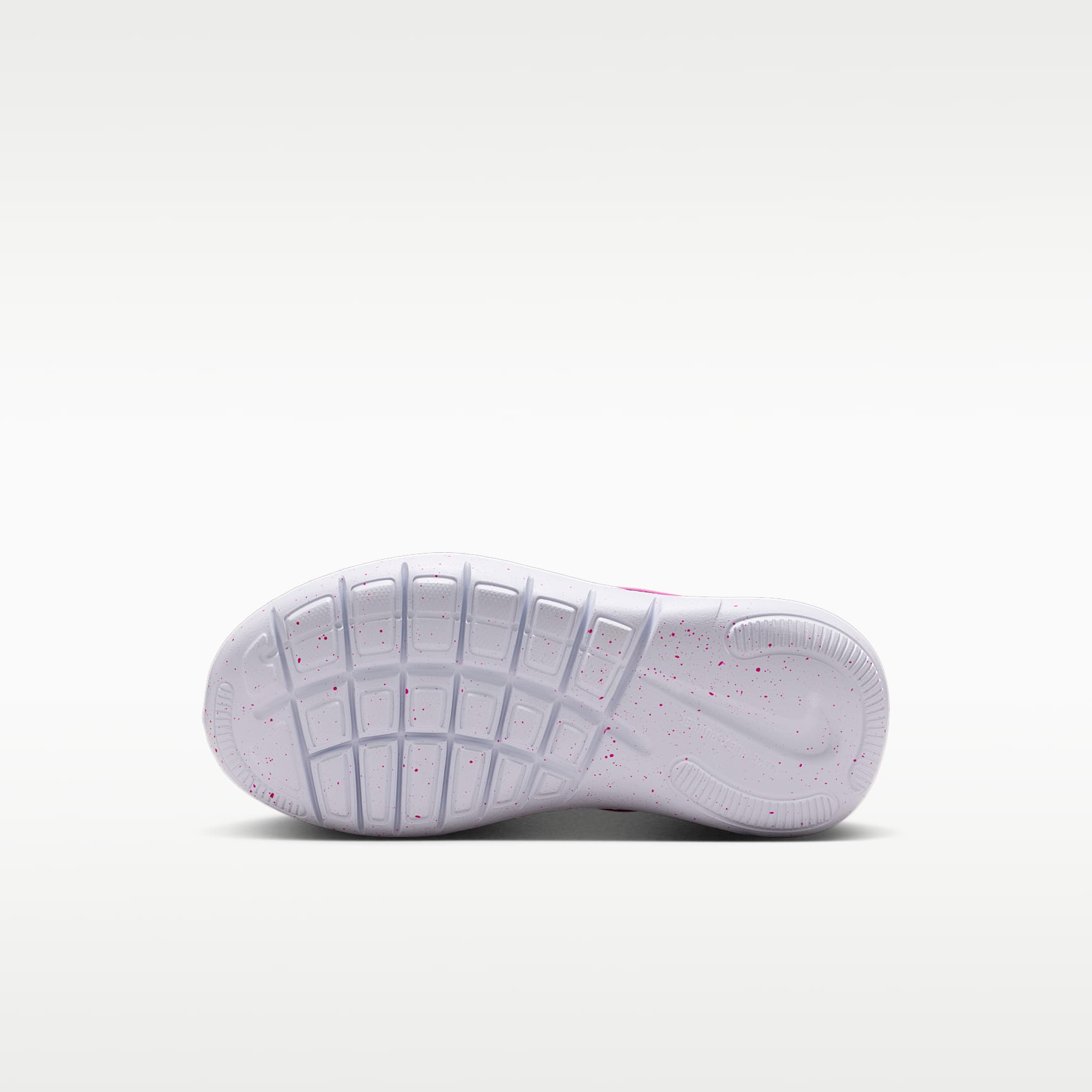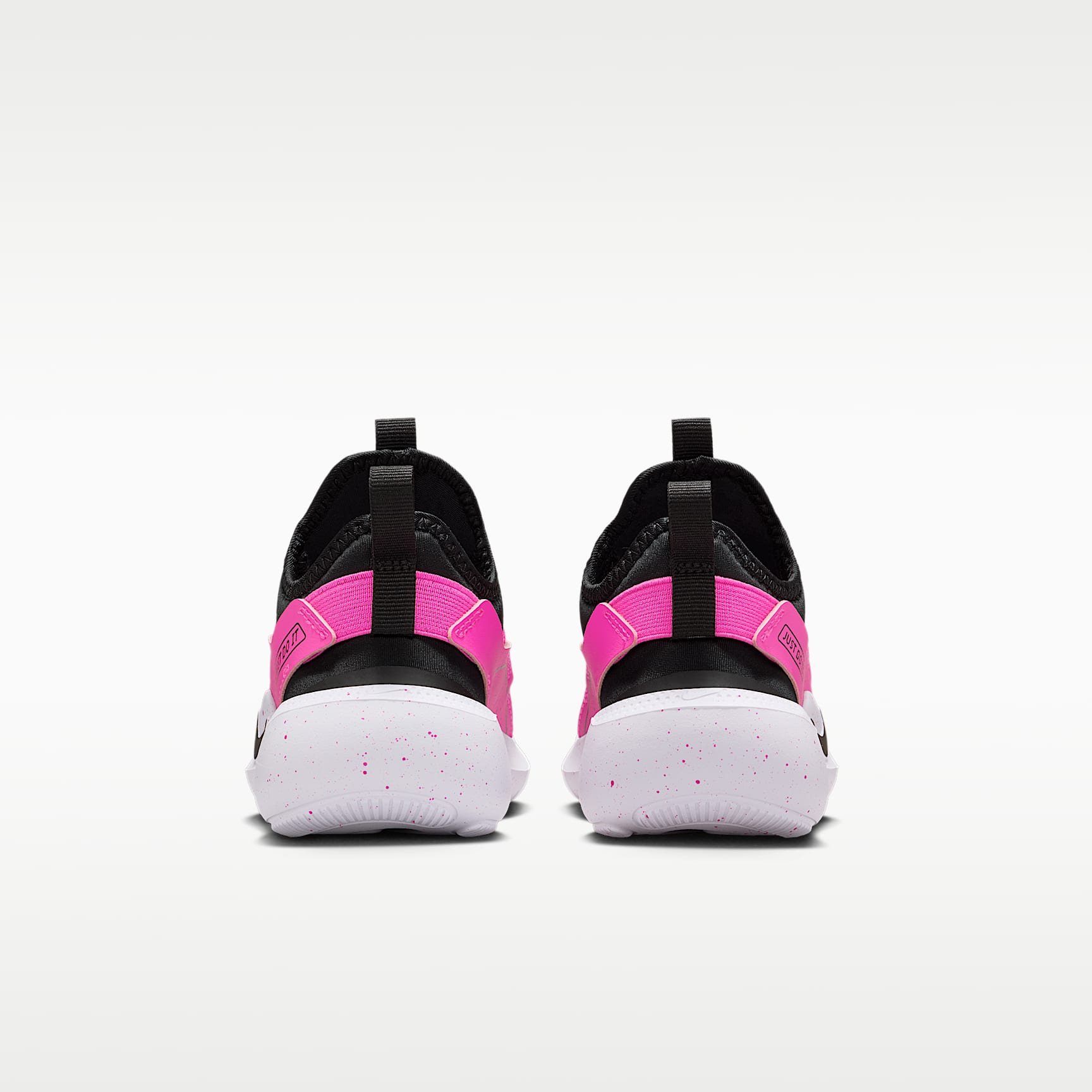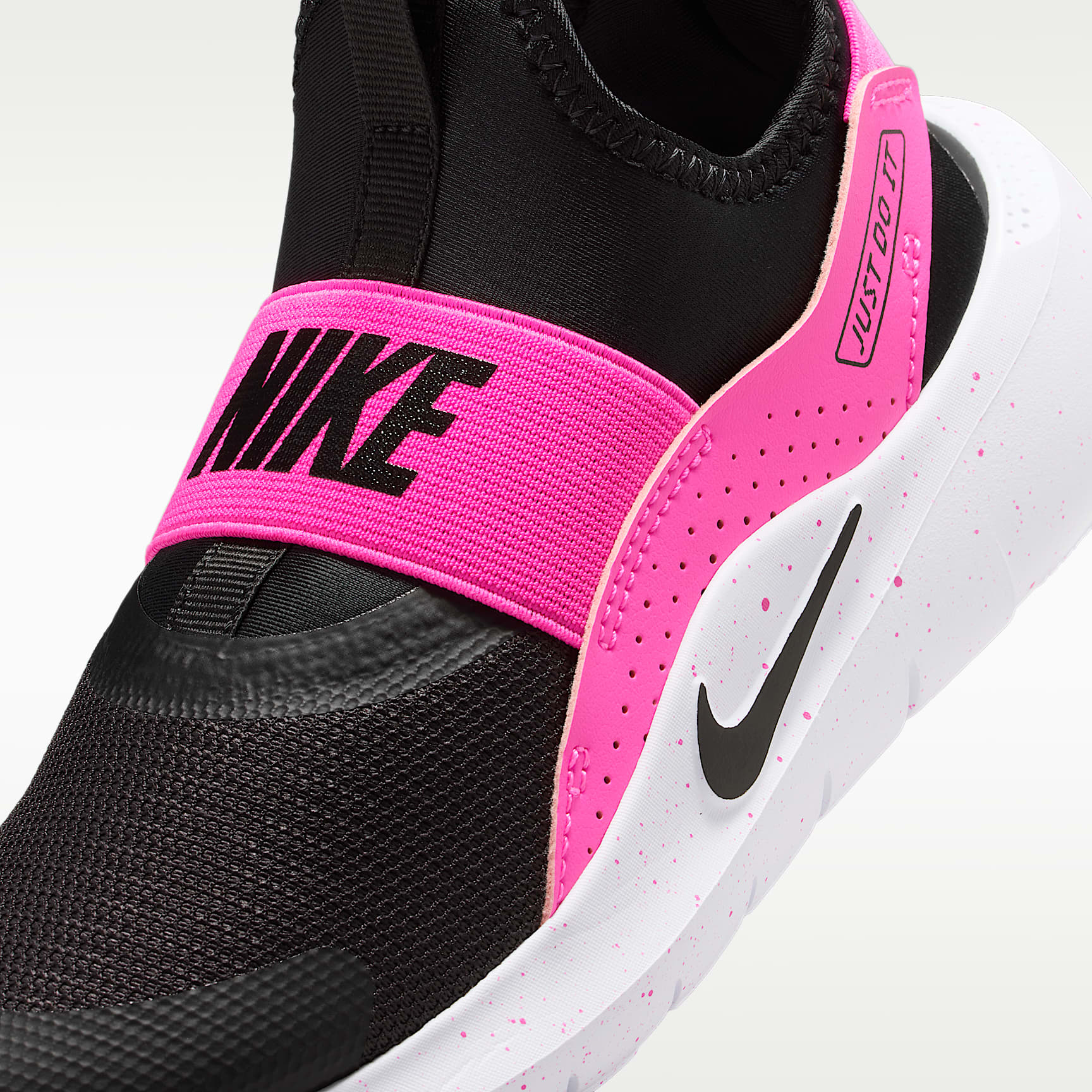 Designed for getting into fun fast, the Flex Runner 4 is made to be easy for kids to pull on. Its bootie-like design is flexible with stretchy straps that secure their fit. Flex grooves in the outsole allow little feet to move naturally, helping kiddos find their footing. What's New You spoke and we listened. For the Flex Runner 4, we updated the fit of the midfoot strap and the collar to help make these easy for kids to slip on and comfortable enough to wear all day. Pull on and Go Pull tabs on the heel and tongue work with a stretchy inner sleeve to help make these shoes easy for kids to put on themselves. Elastic straps run behind the heel and across the top of the foot to provide a snug, secure feel. Play Anywhere Flex grooves in the outsole add flexibility, helping every step feel natural. Multisurface traction works with sturdy foam that wraps around the heel to provide grip and stability when kids shift directions. Durable Comfort and Support We reinforced the toe box and used durable materials throughout to help these kicks stand up to how kids play. Soft, springy foam in the midsole helps cushion their every step.