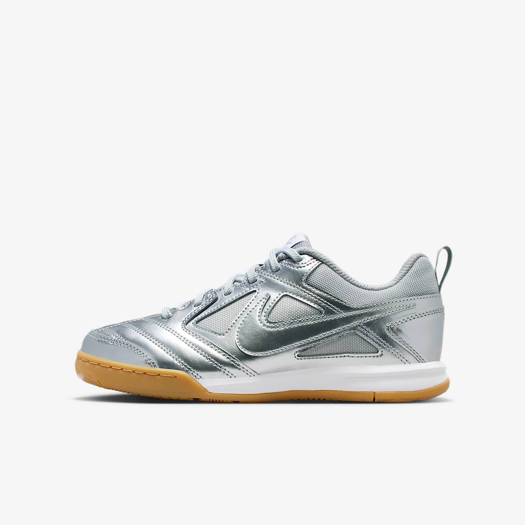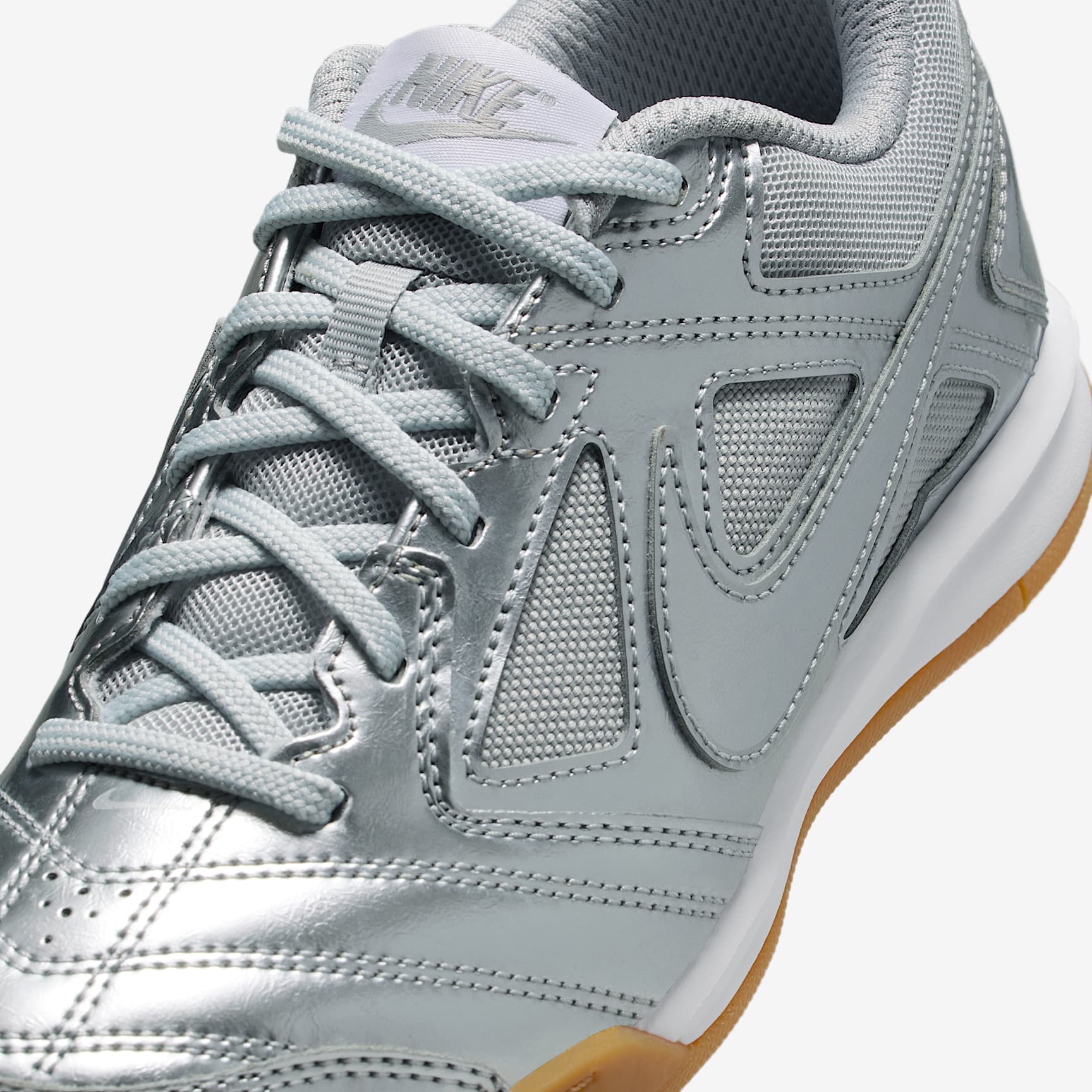 Originally an indoor football favourite, the Nike Gato is back with heritage style. This pair mixes breezy textiles with metallic overlays for an elevated look that's easy to style. Springy foam in the midsole helps you stay ready to play. Benefits * The synthetic leather across the forefoot helps create a snug feel inspired by football boots and skate shoes. * The lightweight mesh and other textiles in the upper help keep these breathable. * The soft foam in the midsole helps provide responsive cushioning. * The gum-rubber outsole features a hexagon tread pattern for durable traction. Product details * Classic laces * Reinforced toe