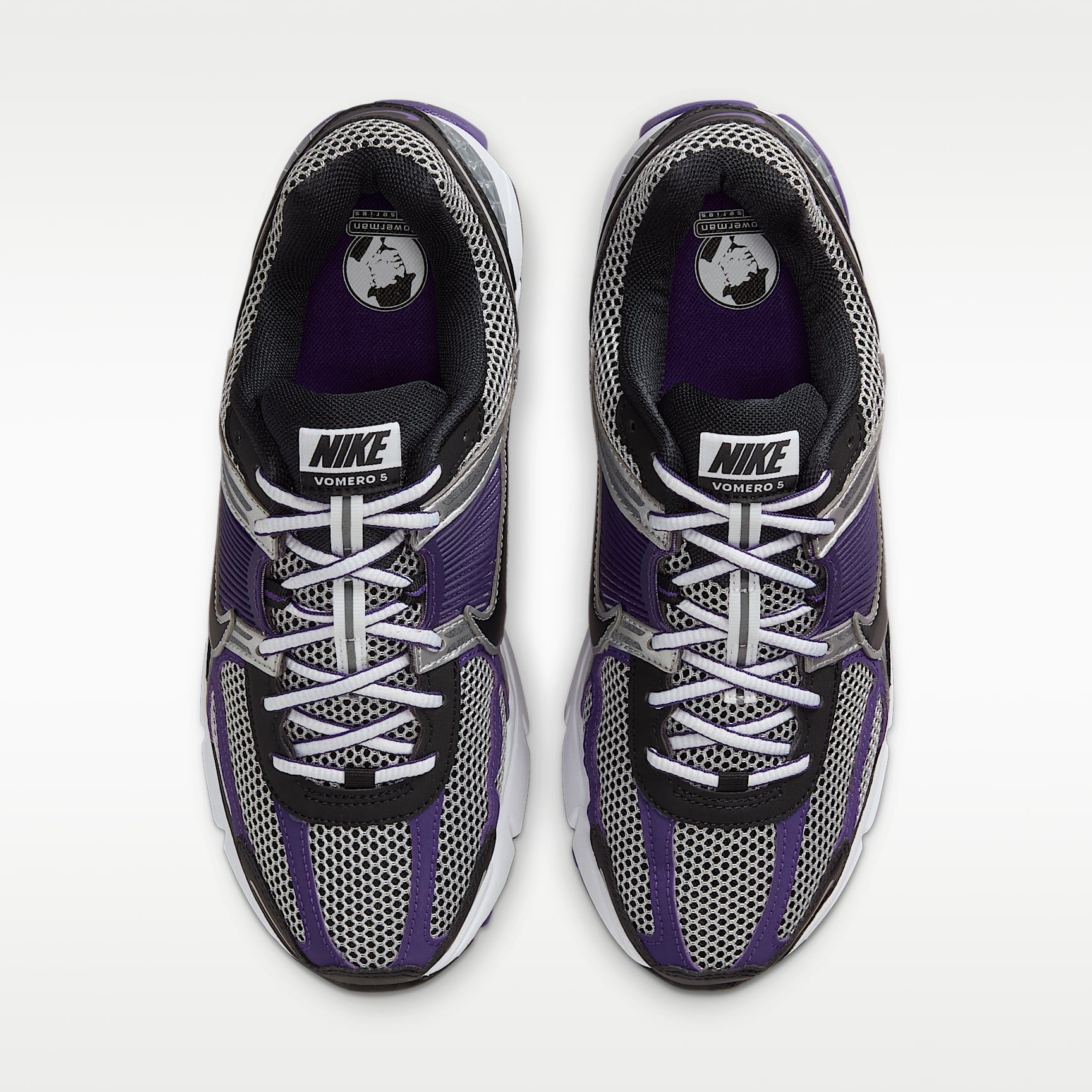 Carve a new lane for yourself in the Zoom Vomero 5—your go-to for depth, durability and easy styling. The richly layered design includes textiles, synthetic leather and plastic accents that nod to the Y2K aesthetic. Benefits * Synthetic leather on upper adds durability. * Snappy and responsive, Air Zoom cushioning helps provide a quick-off-the-ground sensation. * Rubber outsole gives you durable traction. Product Details * Reflective details * Not intended for use as Personal Protective Equipment (PPE)