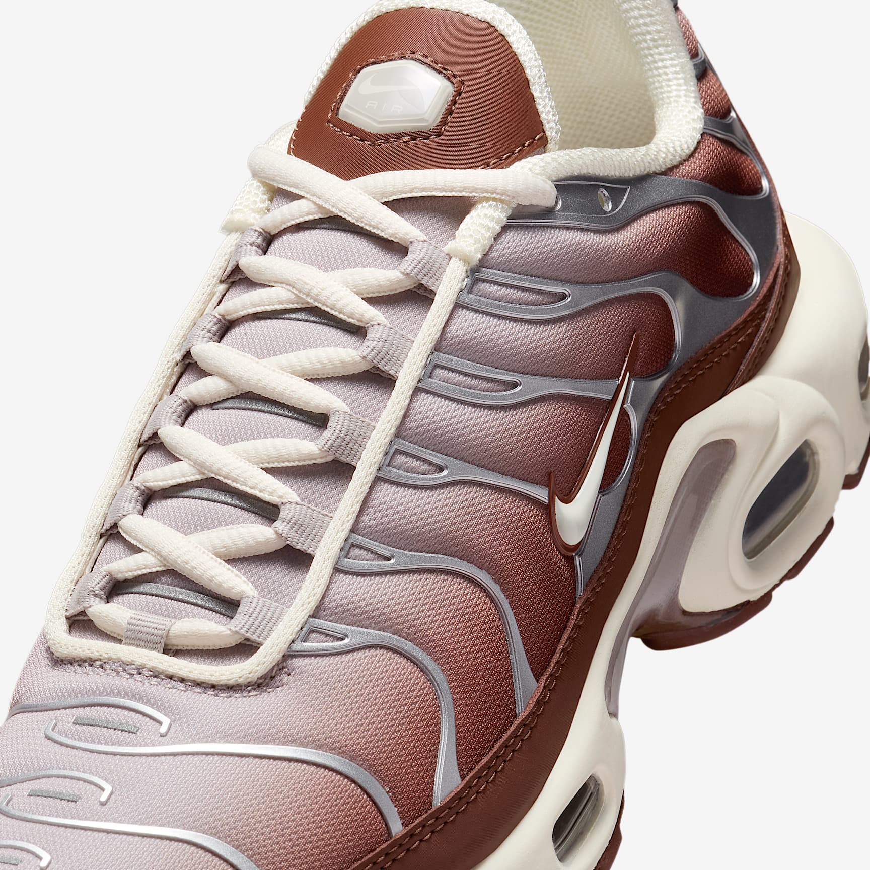 Let your attitude have the edge in this shinier version of the Air Max Plus. Its iconic caging adds heat to your look while airy mesh keeps you cool. And the visible cushioning lets you celebrate your defiant style in comfort. Benefits * Mesh upper with synthetic leather accents is durable and breathable. * The midfoot arch creates a supportive feel. * Nike Air units provide lightweight cushioning. * Rubber outsole gives you durable traction. * The toe cap adds extra durability in high-wear areas. Product details * Pearlised Swoosh logo * Foam midsole
