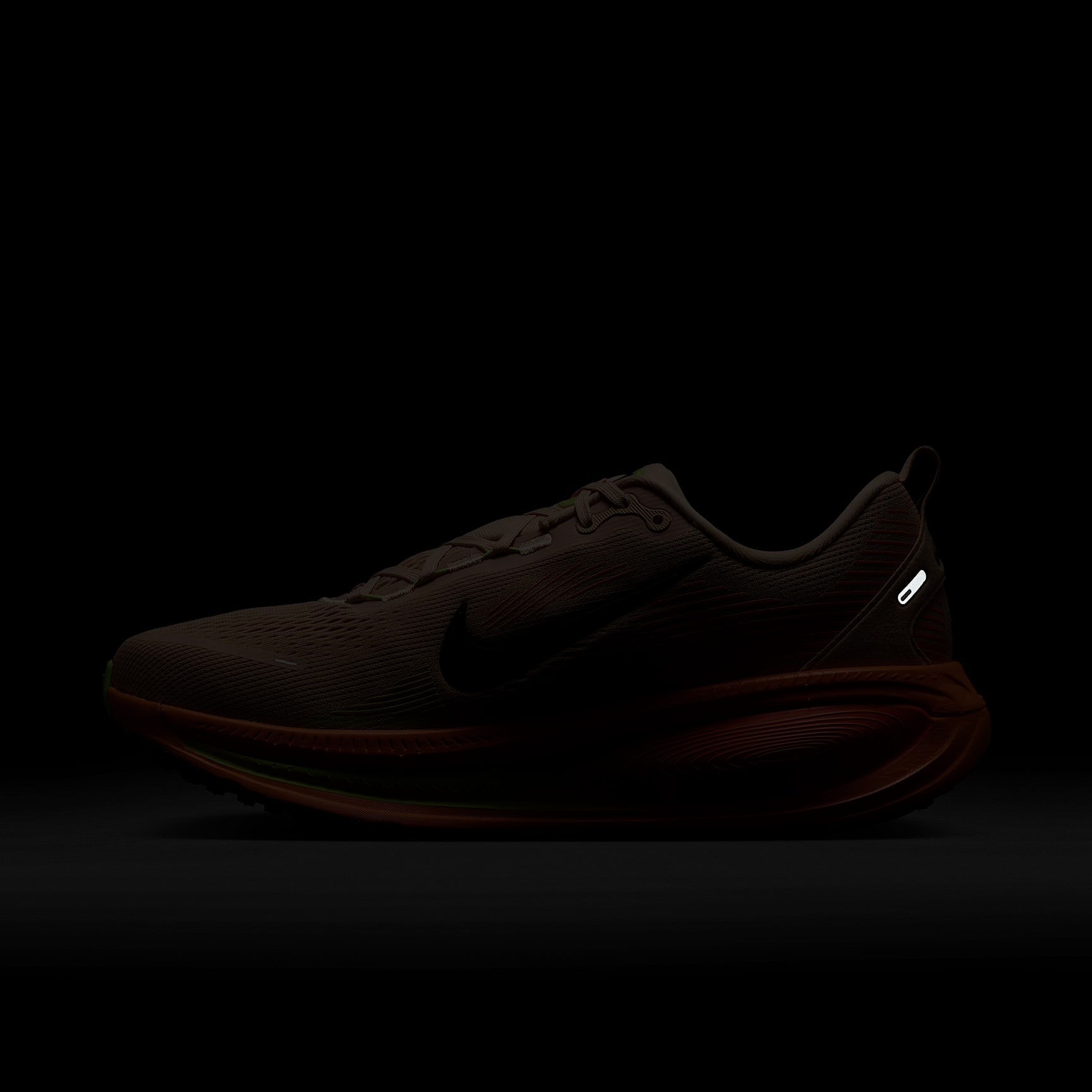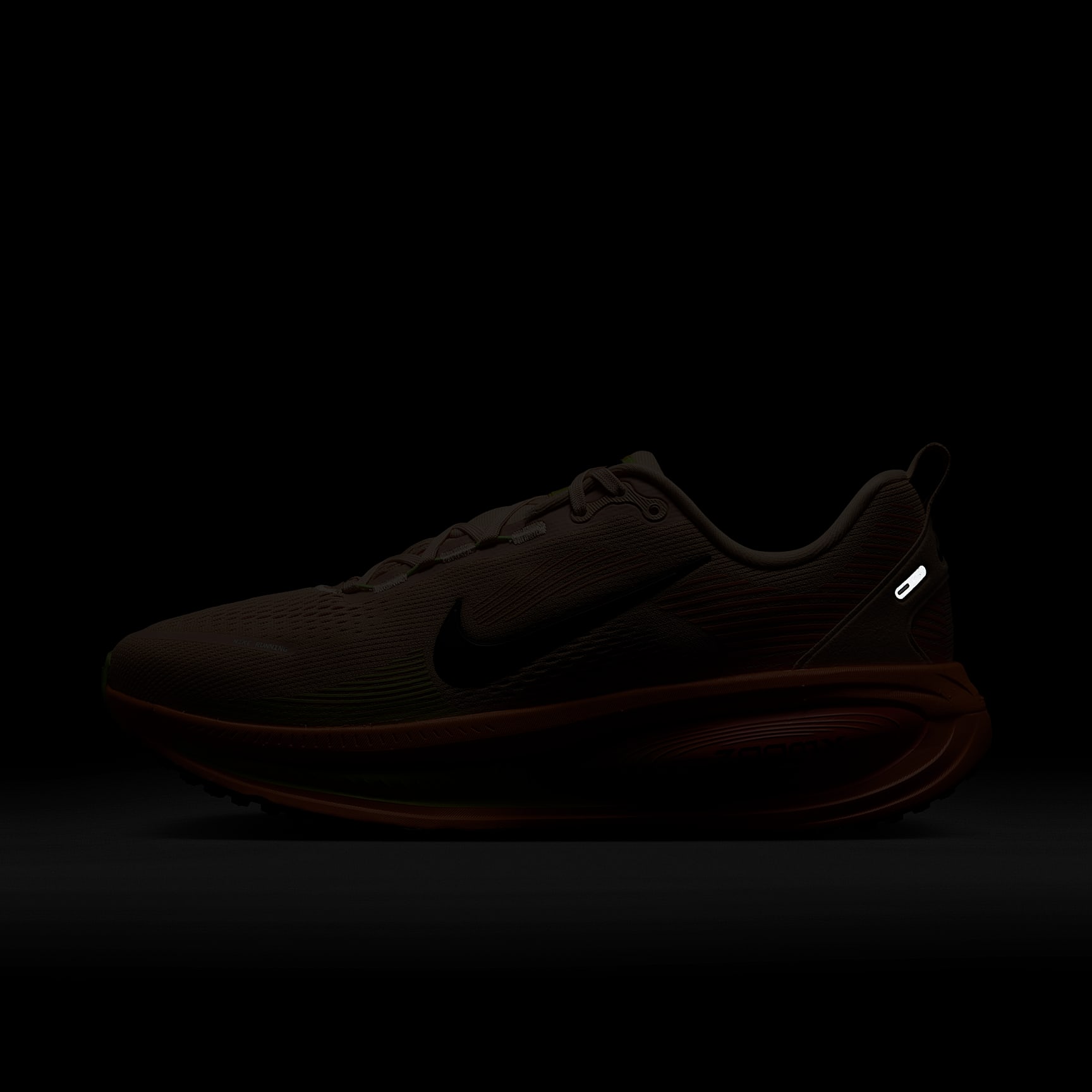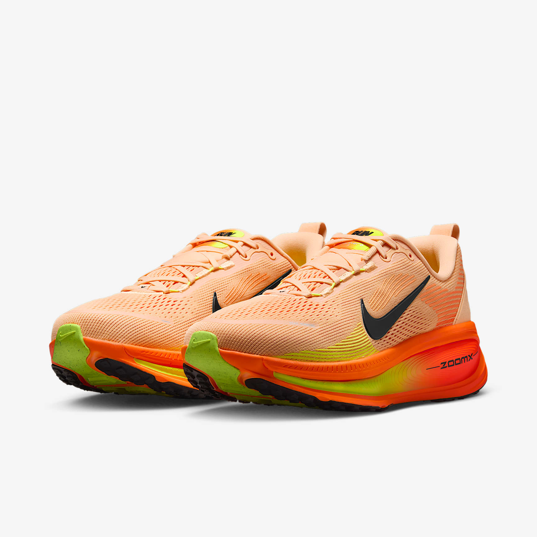 Double-stacked foam delivers our softest, most cushioned ride. Maximum cushioning in the Vomero provides a comfortable ride for everyday runs. Our softest, most cushioned ride has lightweight ZoomX foam stacked on top of responsive ReactX foam in the midsole. Plus, a redesigned traction pattern offers a smooth heel-to-toe transition. Engineered mesh upper The upper is made from engineered mesh for soft breathability. Dual-density midsole Our dual-density midsole has ZoomX foam stacked on top of ReactX foam—13% more responsive than previous React technology—for a comfortable ride. Pods around the outsole We placed pods around the outsole to help enhance agility and smoother heel-to-toe transitions. Plush padding A plush tongue and lining give you a comfortably snug feel. What's new? The newly stacked foam midsole with premium ZoomX on top of ReactX foam amplifies cushioned comfort. Product details * Weight: 325g approx. (men's UK 9) * Heel-to-toe drop: 10mm * MR-10 Last—Our best, most consistent fit * Reflective design details * Not intended for use as personal protective equipment (PPE)