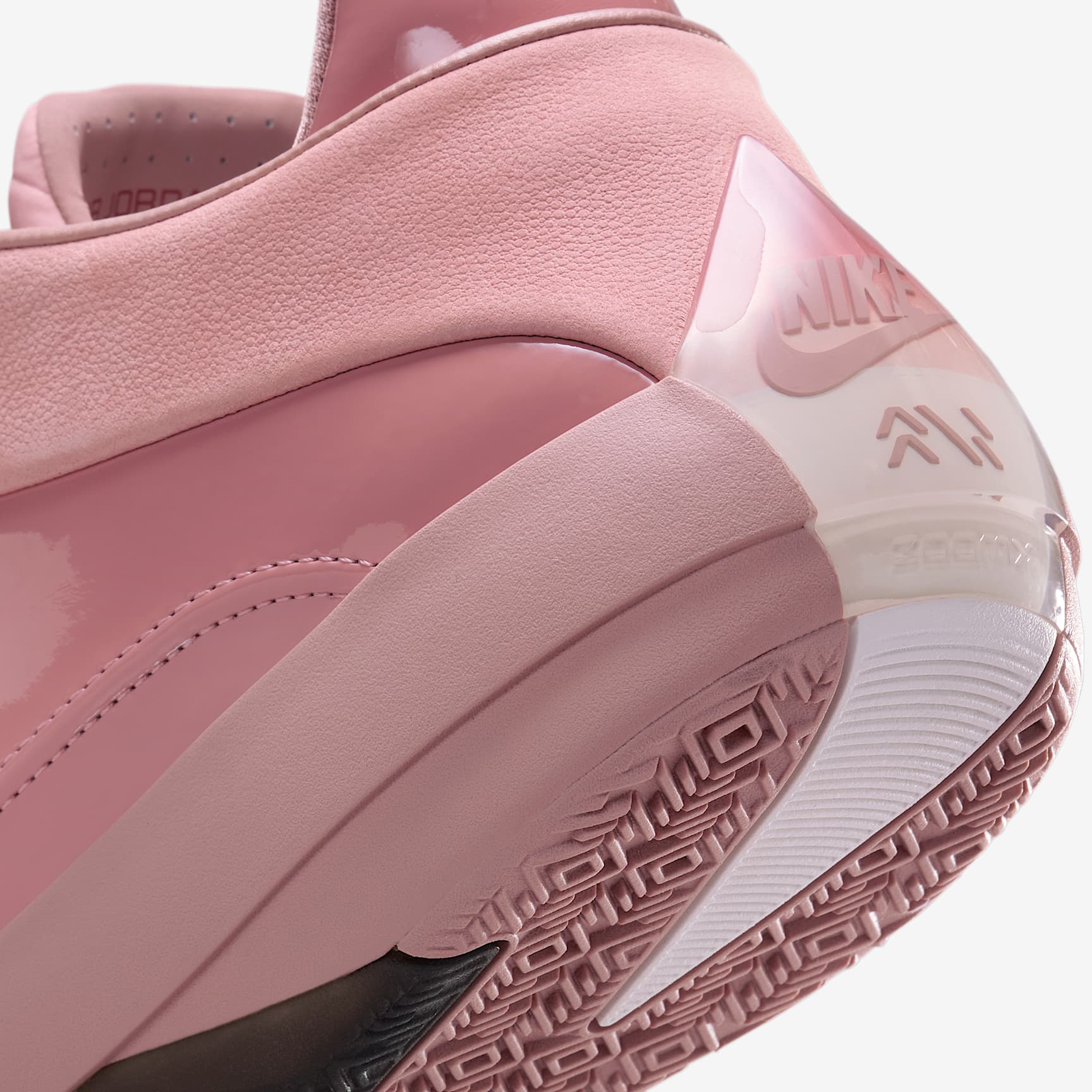 There's only one way to celebrate 40 years of Air Jordans. You gotta do what's never been done. For the first time, we stacked a full-length Zoom Strobel unit on top of full-length ZoomX foam for responsive, marathon-level cushioning. Up top, internal straps work with premium materials to give you optimal containment. Underfoot, a unique herringbone traction pattern helps you leave defenders guessing. Patent and pebbled leather—both pink—give you a high-energy look. Cushioning. Bounce. Traction. It's almost too easy. Explosive Cushioning We're combining ZoomX foam with a full-length Zoom Strobel unit for the first time in Jordan history. Why? So you get the responsive bounce your explosive moves demand with comfortable cushioning fit for marathon runners. Containment Redefined Six internal webbing straps combine with premium materials in the upper to help hold your foot in place for optimal containment as you move side to side. Big Time Traction Cross every defender off your list with a unique 40-degree herringbone traction pattern that helps you cook on court. Product Details * Not intended for use as Personal Protective Equipment (PPE)