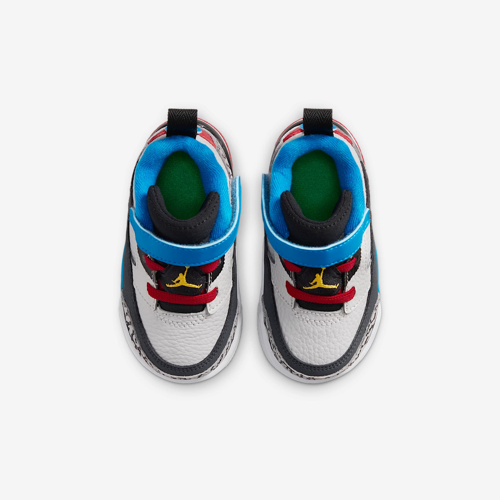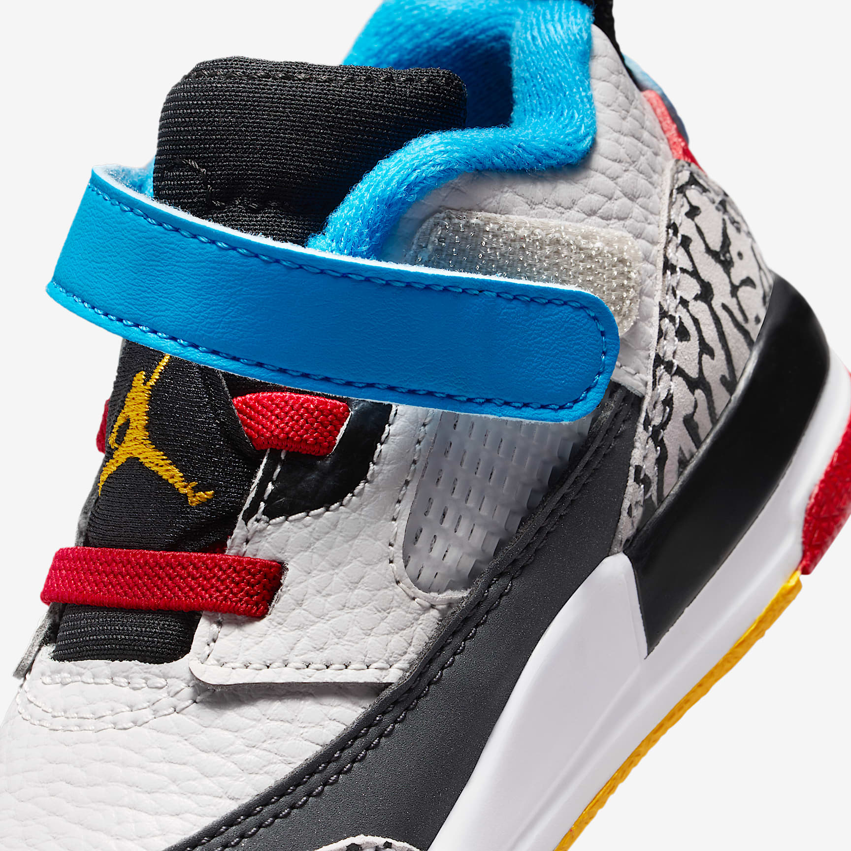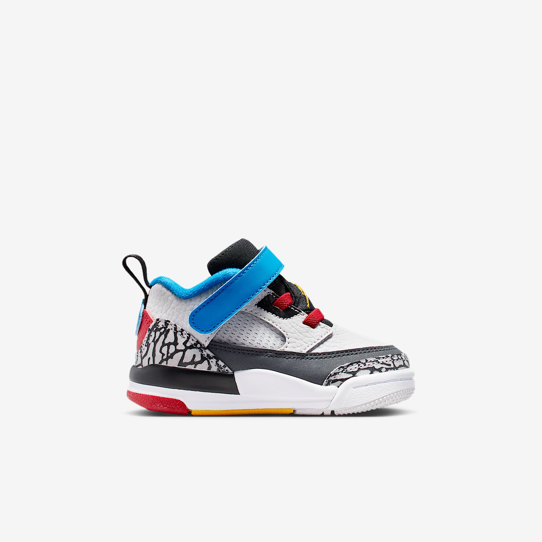 Elements of five classic Jordans come together in one iconic sneaker. An homage to Spike Lee formally introducing Hollywood and hoops, the Spizike gives your little one a great-looking pair of kicks packed with history. What more can you ask for? Ya dig? Benefits * Hook-and-loop strap helps you secure their fit fast. * Real and synthetic leather work with textiles to add durability and structure to the upper. * Soft foam underfoot cushions little feet. * Rubber outsole helps provide durable traction. Product Details * Pull tab * Foam midsole