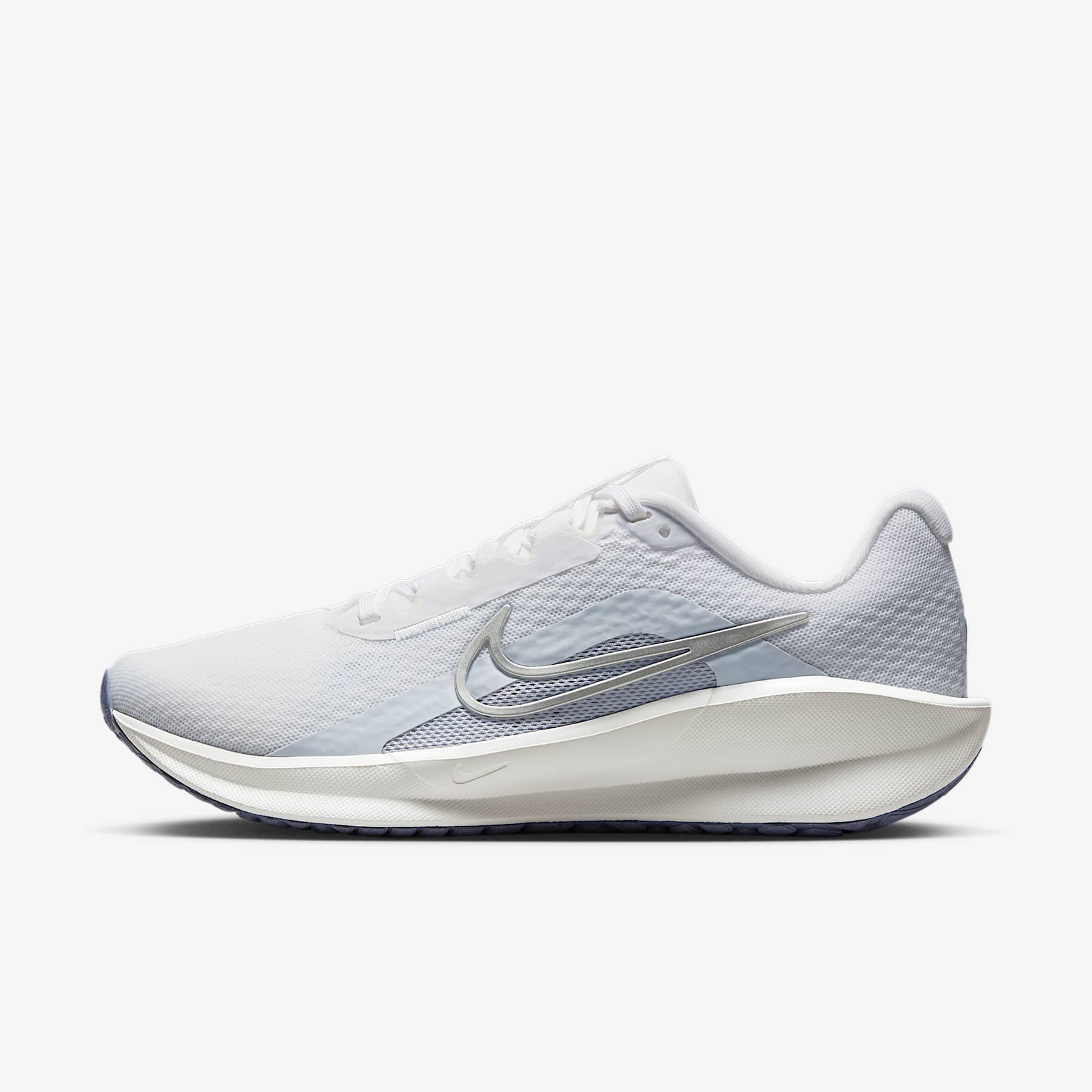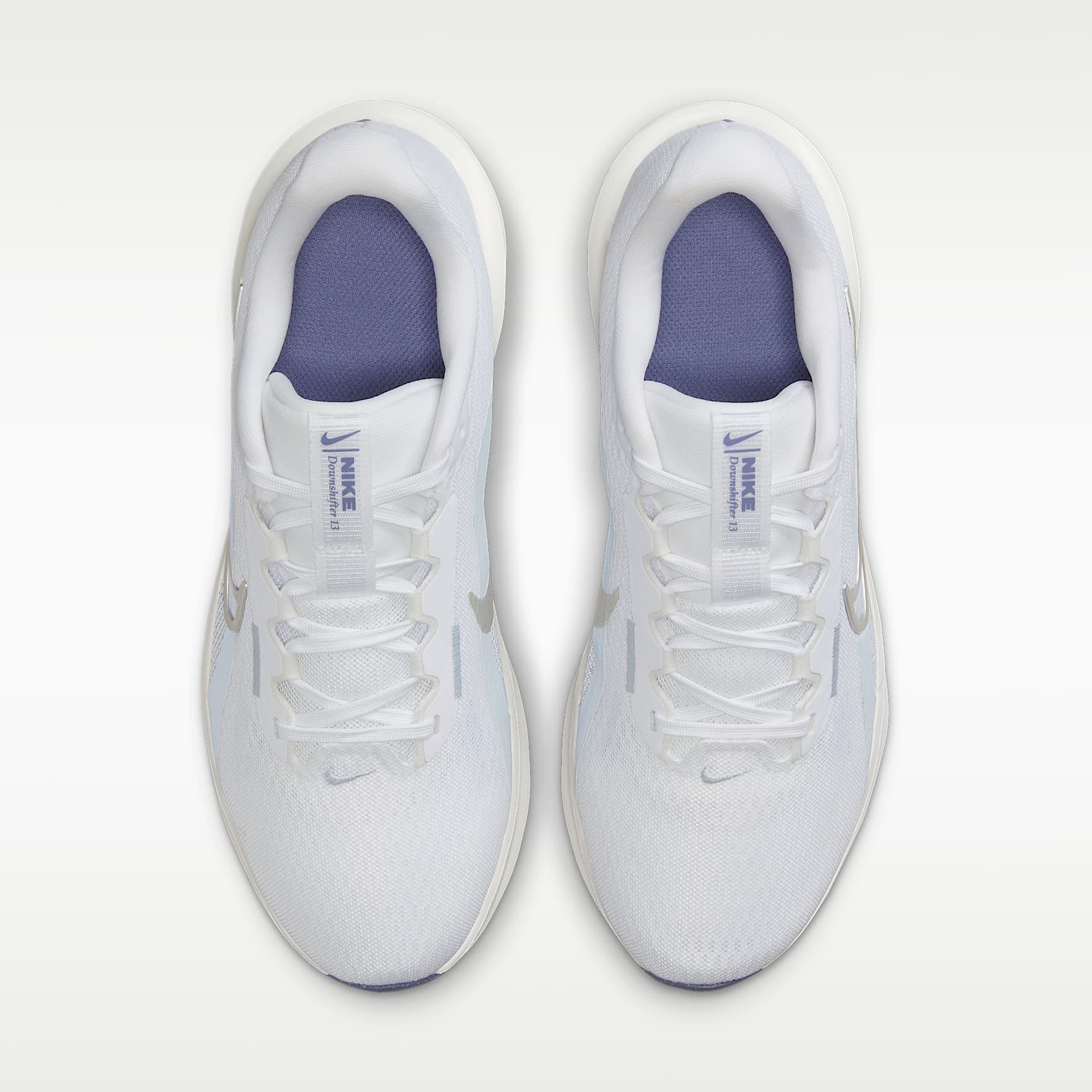 An updated internal fit band delivers a secure ride. Whether you're starting your running journey or an expert eager to switch up your pace, the Downshifter 13 is down for the ride. With breathable mesh and an updated internal fit band, it helps you find that extra gear or take that first stride towards chasing down your goals. Breathable upper Soft and comfortable mesh offers breathability. Midfoot support Updated internal fit band offers containment around the midfoot for support and security. Soft midsole The soft foam midsole cushions every step. Reliable traction The rubber outsole gives reliable traction. Product details * Weight: 242g approx. (women's UK 5.5) * Heel-to-toe drop: 10mm * Reflective design details * Not intended for use as personal protective equipment (PPE)