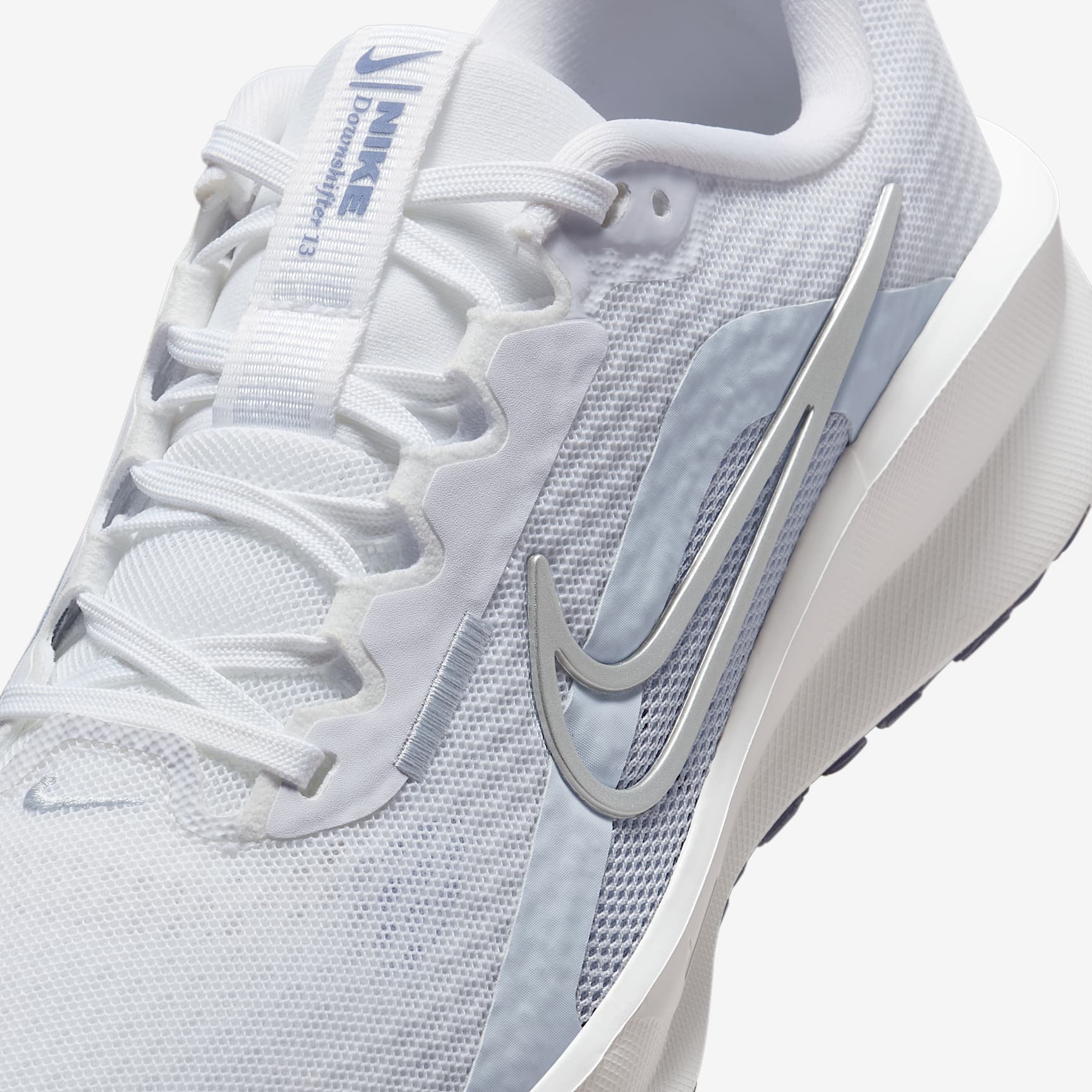 An updated internal fit band delivers a secure ride. Whether you're starting your running journey or an expert eager to switch up your pace, the Downshifter 13 is down for the ride. With breathable mesh and an updated internal fit band, it helps you find that extra gear or take that first stride towards chasing down your goals. Breathable upper Soft and comfortable mesh offers breathability. Midfoot support Updated internal fit band offers containment around the midfoot for support and security. Soft midsole The soft foam midsole cushions every step. Reliable traction The rubber outsole gives reliable traction. Product details * Weight: 242g approx. (women's UK 5.5) * Heel-to-toe drop: 10mm * Reflective design details * Not intended for use as personal protective equipment (PPE)