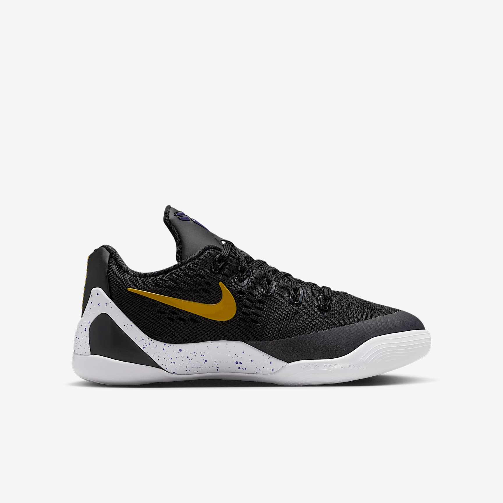 Kobe's return to the court after tearing a tendon in his lower leg inspired generations of players to keep fighting. The Kobe 9 updates the shoe that supported the Black Mamba during his comeback. A lightweight knit upper and springy cushioning help you lock into the game and start building your own legacy. Breathable support The lightweight knit upper is made to move, offering breathable comfort and the support you need to make quick cuts as you dash down court. Lateral stability The moulded plastic at the heel helps provide stability and structure as you move from side to side. Durable traction We used pressure-mapping to place rubber where you need it most on the outsole for durable traction that mimics the natural curves of your foot. Product details * Classic laces * Foam sockliner
