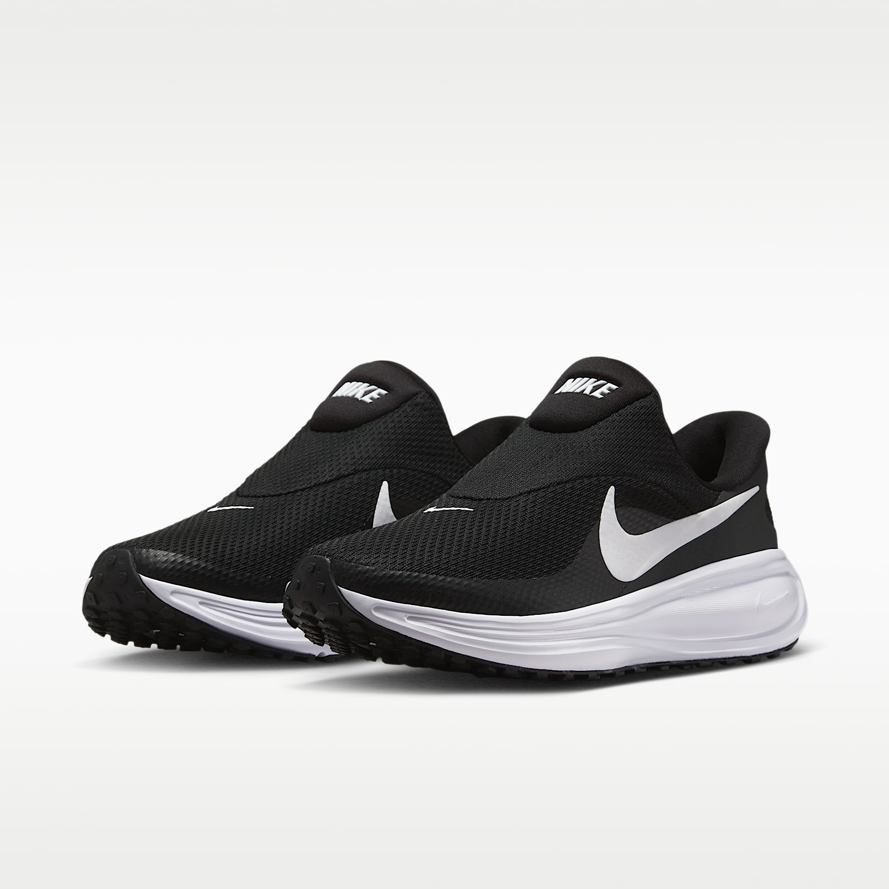 The comfortable foam midsole and step-in-ready design is perfect for quick, everyday runs. This Revolution 8 gets you on your path fast. Our EasyOn technology allows you to step into the shoe while providing a secure, effortless fit. Every stride is cushioned thanks to a foam midsole and a flexible forefoot. The mesh upper is even more breathable than the previous iteration, so it gives you cool, on-the-go comfort. Breathable upper The mesh upper provides a comfortable, breathable feel. Comfortable midsole The foam midsole and rocker design deliver soft cushioning. Flexible Outsole Rubber outsole with flex grooves in the forefoot offers flexibility and durability. Easy fit A hands-free collapsible heel lets you step down and slip in for a secure fit. What's new? * Laceless design * Skins for durability Product Details * Weight: approx. 238g (women's size 5.5) * Heel-to-toe drop: 10mm