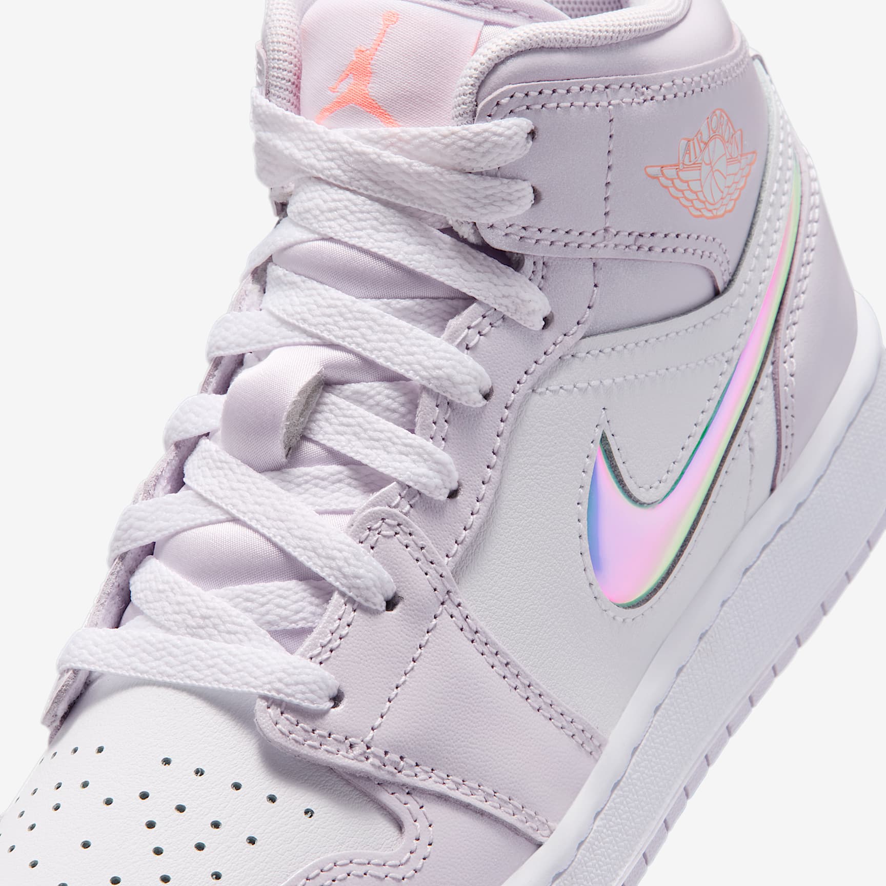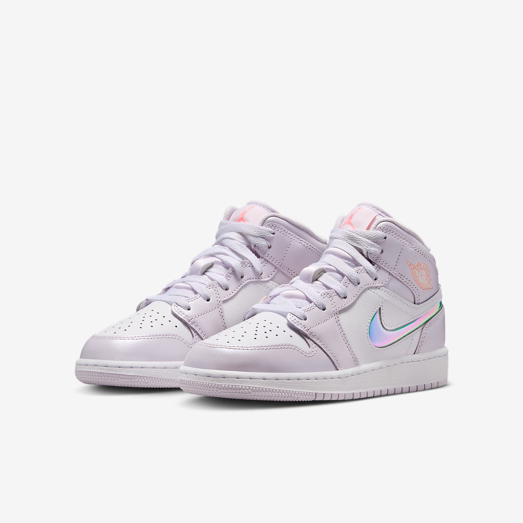 This iteration of the AJ1 reimagines Mike's first signature model with a fresh mix of colors and iridescent details. Premium materials, soft cushioning and a padded ankle collar offer total support and celebrate the shoe that started it all. Benefits * Real and synthetic leather in the upper adds durability and structure. * Nike Air technology absorbs impact for cushioning with every step. * Rubber in the outsole helps give you durable traction. Product Details * Classic laces * Wings logo on collar * Jumpman on tongue