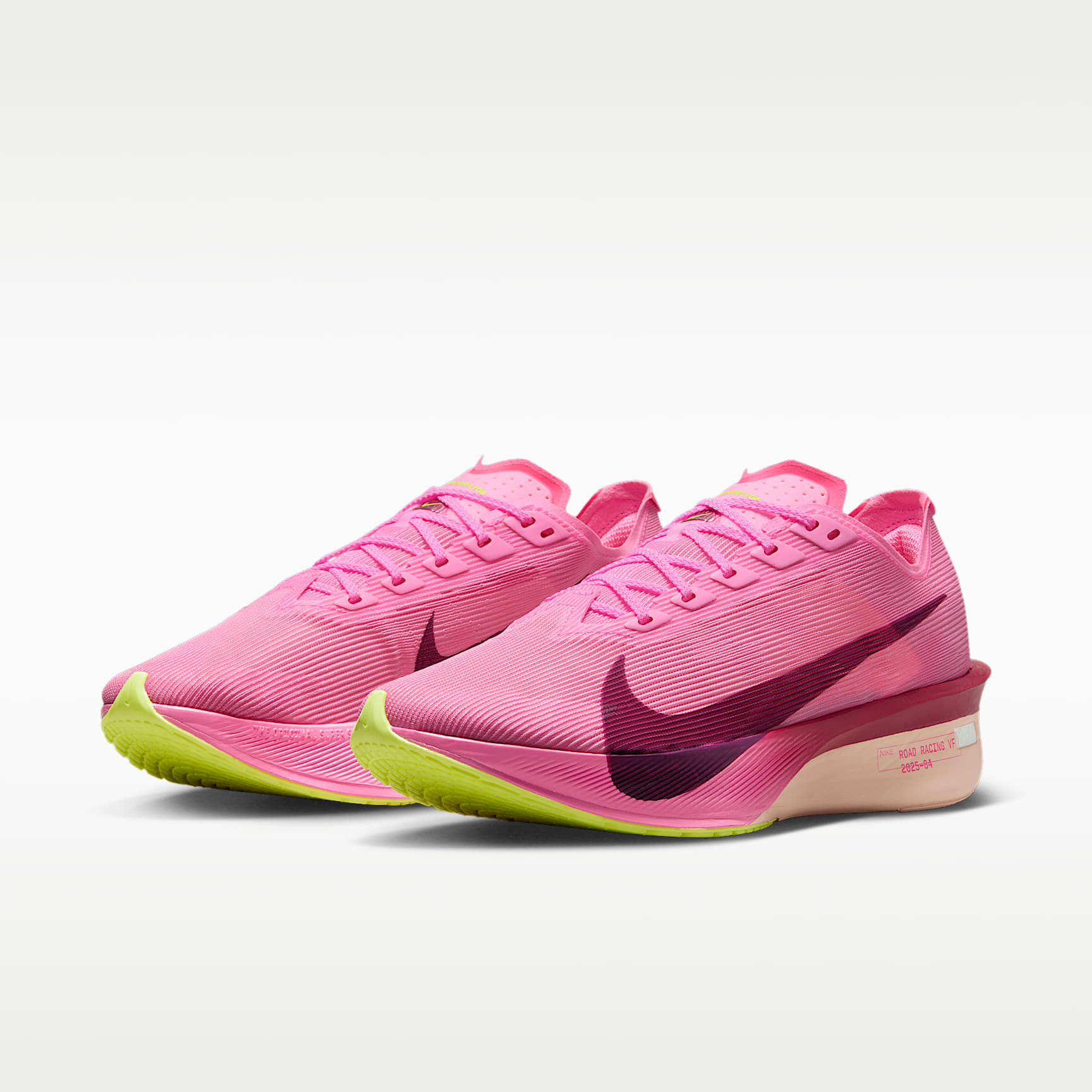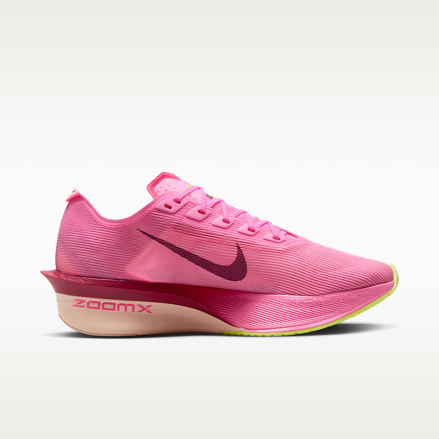 A light, efficient design feels propulsive for all 26.2. The Vaporfly 4 is a lean, mean, mile-eating machine. We trimmed weight in the midsole, outsole and upper from the Vaporfly 3, without sacrificing performance. The result is a lighter, more propulsive all-round racing shoe that's trusted from the mile to the marathon. Full Speed A full-length carbon-fibre Flyplate provides a propulsive, racing feel. More energy return Nike ZoomX, our most responsive foam, just got faster. Running from heel to toe, it unlocks even more energy return than before thanks to a slight midsole reduction, giving you a bouncy feel. Engineered mesh Engineered mesh offers improved comfort and a disappearing feel on your foot. It helps reduce the weight of the shoe while supplying a more consistent fit. Light Feel See how the midsole bulges out by the heel? We designed it that way to help reduce weight on the inside of the foot to give you a more stable ride. What's new? * Lighter upper, midsole, outsole * Higher plate angle * Lower heel-to-toe drop Product details * Weight: 152g approx. (women's UK 5.5) * Heel-to-toe drop: 6mm