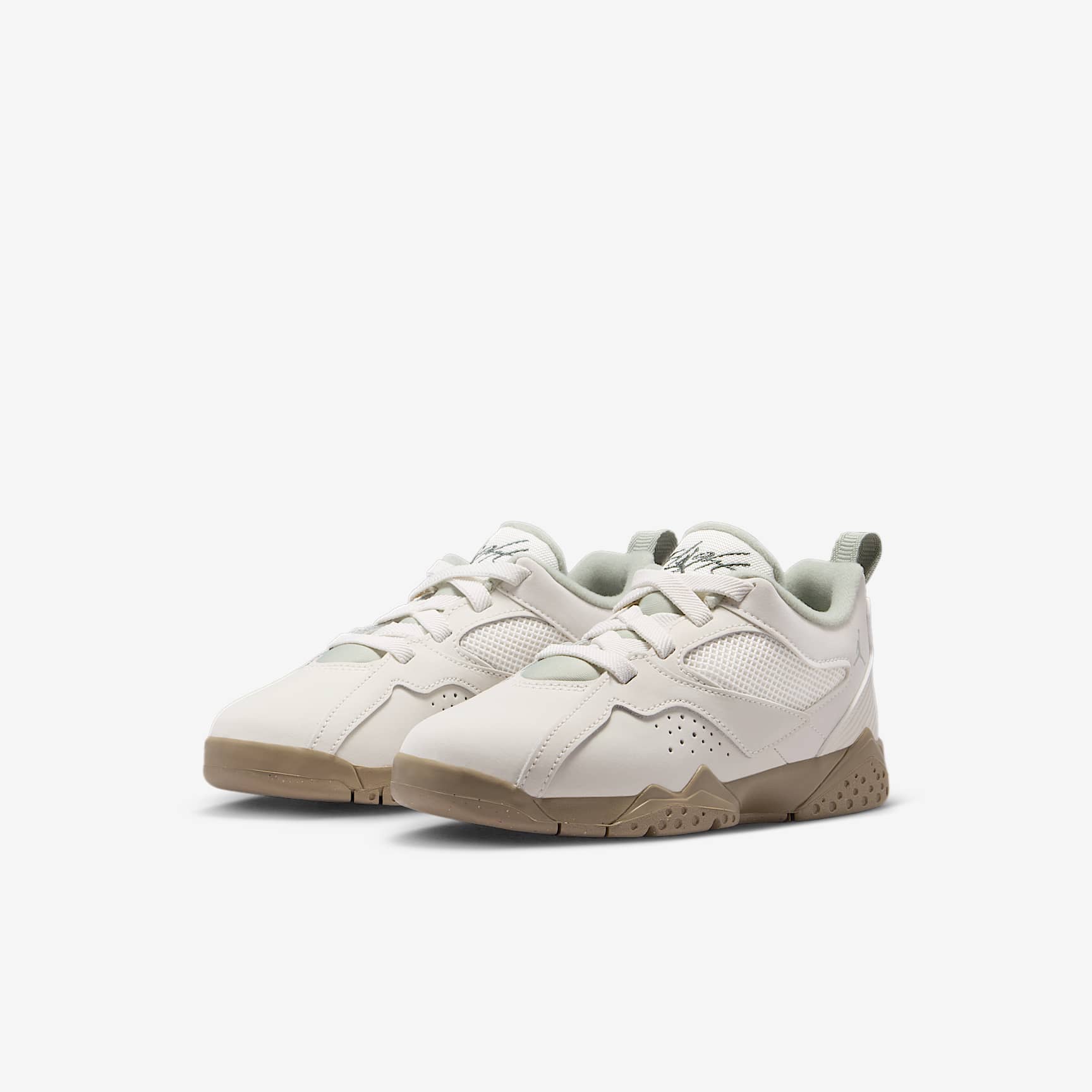 How do you top the AJ7? You reimagine it with a low-top silhouette. We started with the layered upper and iconic midsole that turned the original into an instant classic. Then we added textile accents and a padded, low-cut collar to give kids a fresh, modern look. Benefits * The real and synthetic leather add durability and structure to the upper. * The elastic laces stretch to create a wide opening so the shoes are easy to get on and off. * The soft foam underfoot helps add lightweight cushioning. * Rubber outsole offers durable traction. Product details * Elastic laces * Pull tab on heel