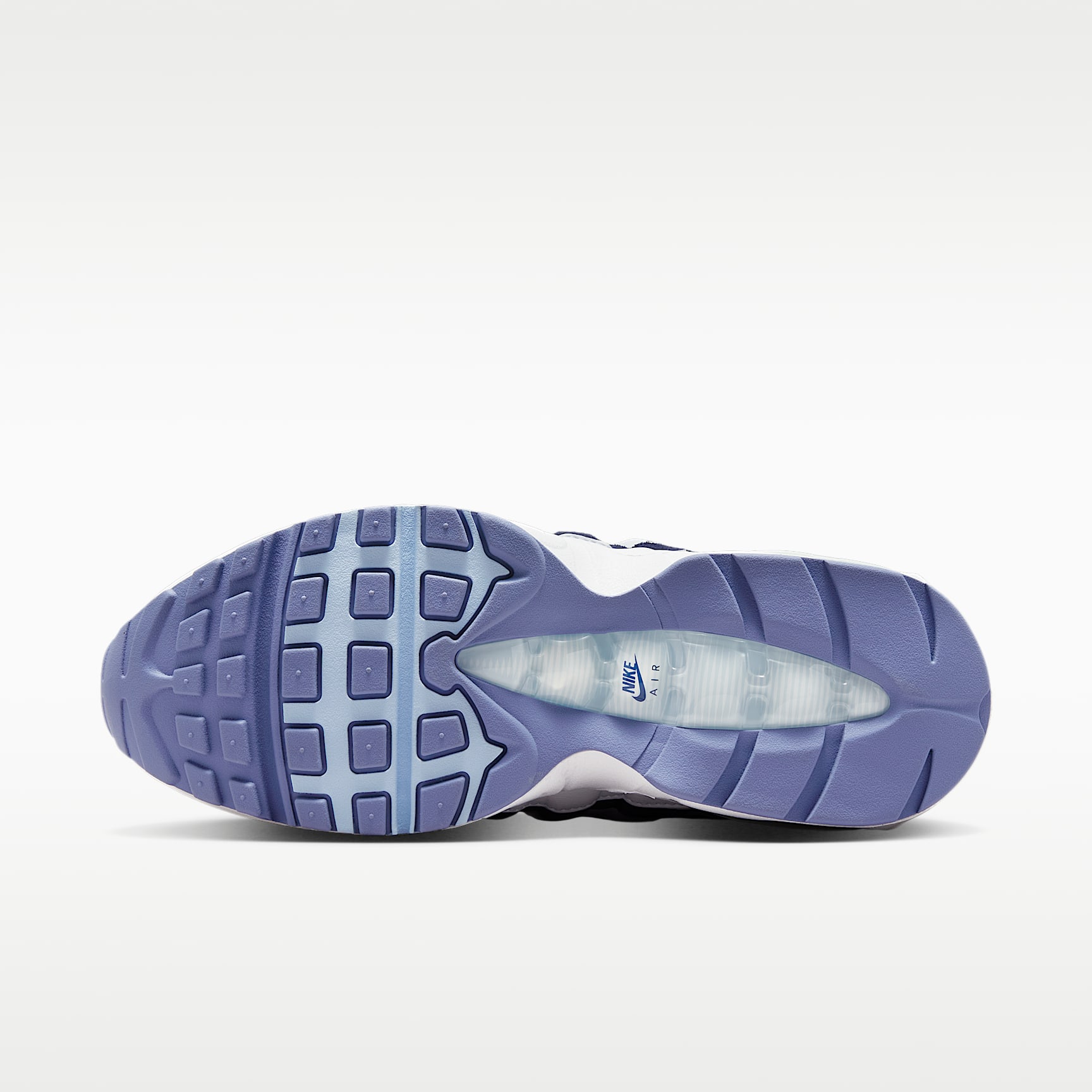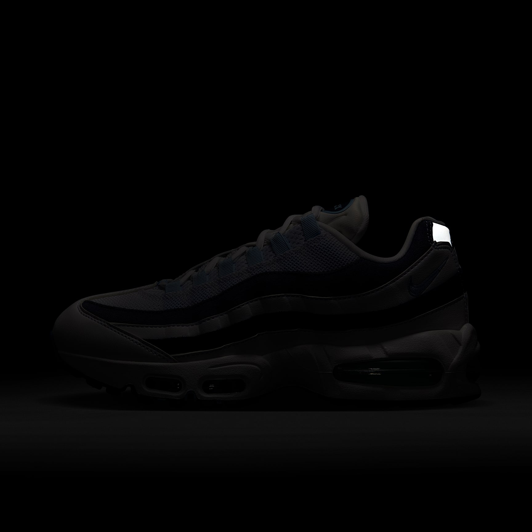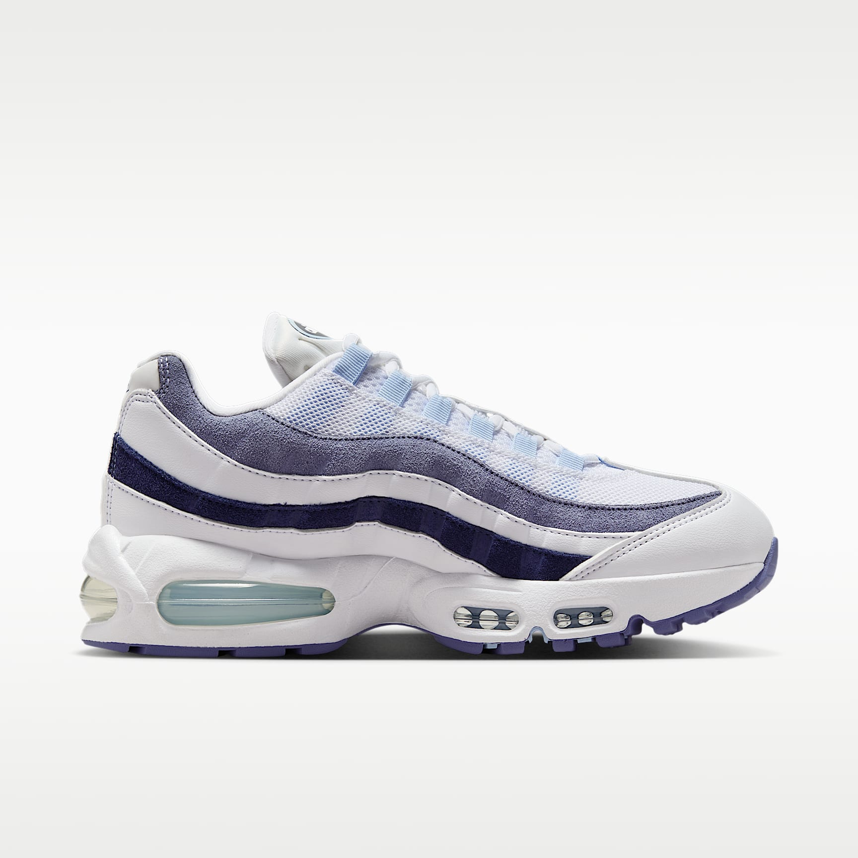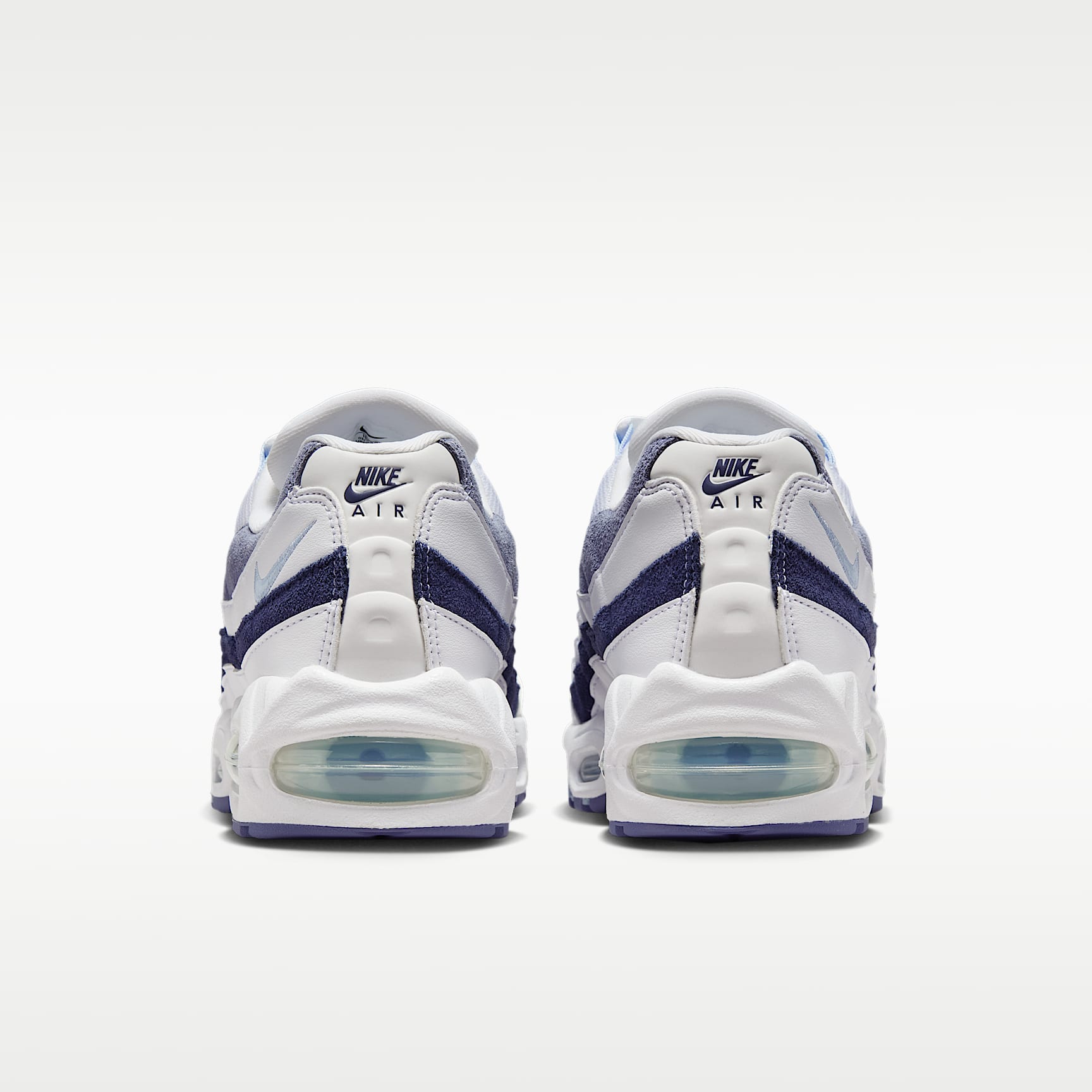 The Air Max 95 originally takes inspiration from the human anatomy, leading to its distinctive wavy design. This version pairs mixed materials and visible Max Air cushioning for a layered look with unbelievable comfort. Benefits * The upper mixes real and synthetic leather, textile and suede for a layered look built to last. * The visible Max Air cushioning provides lightweight cushioning. * Flex grooves in the midsole/outsole let you move freely. * Inspired by the human anatomy, the midsole/outsole represent the spine, upper panels are the muscles and the laces are the shoe's ribs. Product Details * Foam midsole * Rubber outsole * Not intended for use as personal protective equipment (PPE)
