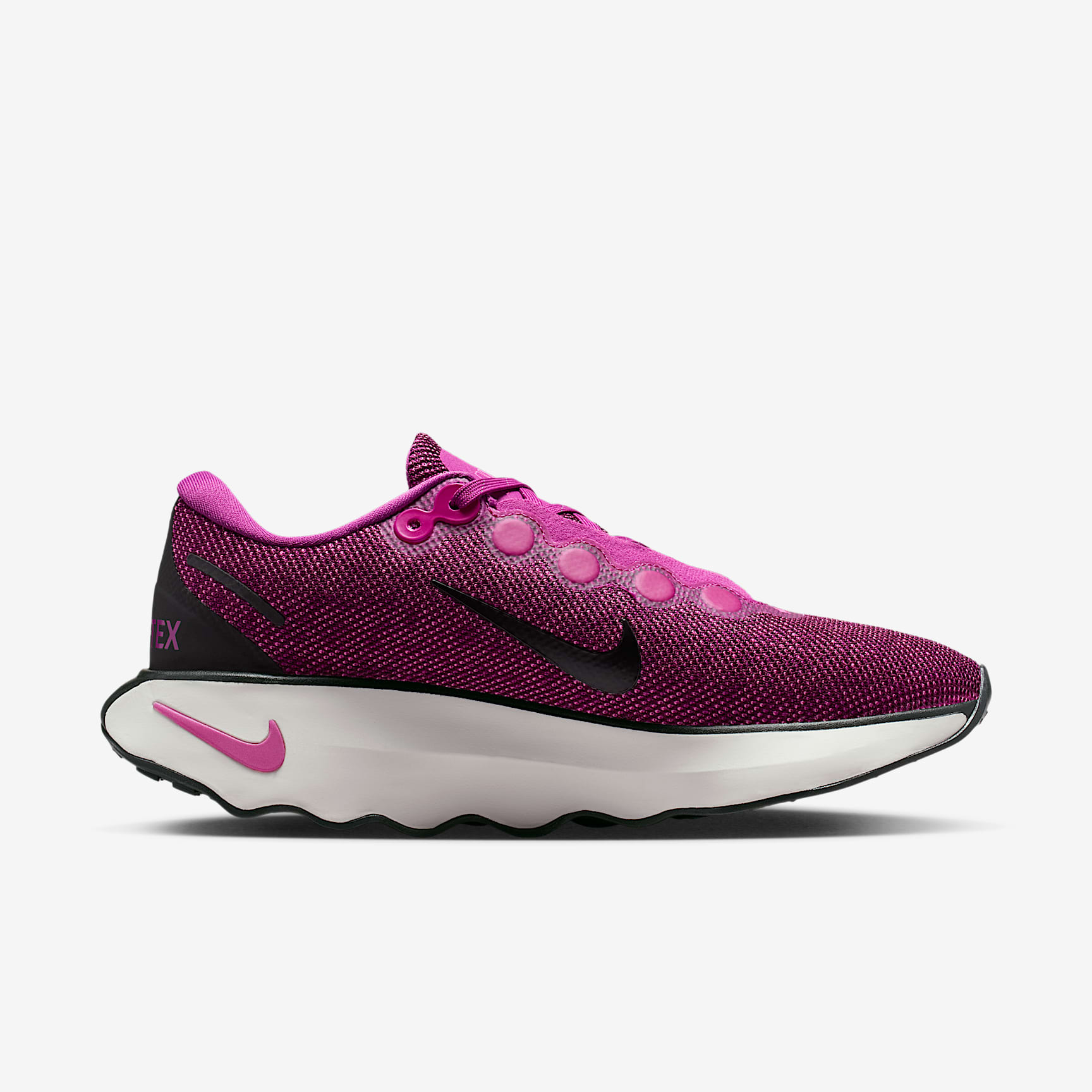 With a waterproof GORE-TEX upper and reflective details, this winterized Nike Motiva is made for wet-weather walks. It provides our highest level of cushioning with a tall foam stack and our Comfortgroove innovation on the outsole to absorb the bumps along the way. And with its exaggerated rocker, it helps propel you forward in ultimate comfort. Benefits * Wet-traction rubber pattern on outsole * Super-high cushioning * Moderate stability * Moderate flexibility Product Details * Reflective laces, overlay and midsole Swoosh logo * Soft foam collar * Widened forefoot, arch and toe box * Durable outsole pattern for traction * Not intended for use as Personal Protective Equipment (PPE)