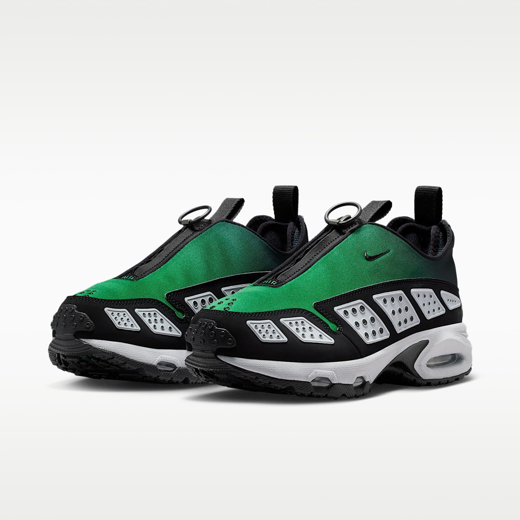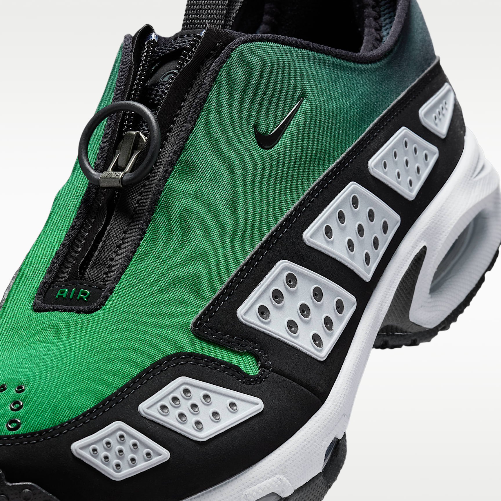 Ahead of its time in '99, the innovative Air Max SNDR is back and louder than ever. From the secure fit around the heel to the zip-up shroud, this legendary sneaker continues to break the mould. Unzip the shroud to reveal "6453", a nod to the last 4 numbers of Nike's office numbers around the world, which spell out N-I-K-E on the keypad. Benefits * Neoprene-like upper feels smooth and stretchy. * Zip-up shroud covers your laces for a sleek look. * Reflective-design vented panels create a breathable feel. * Max Air cushioning in the heel and forefoot adds exceptional bounce and comfort. Product details * Pull tabs * Foam midsole * Rubber outsole * Not intended for use as personal protective equipment (PPE) Max Air unit Visual stunner. Window to the sole. Legendary designer Tinker Hatfield took cues from inside-out Parisian architecture to re-establish Air technology as a leader in cushioning. Plush and comfortable, the Max Air unit has just the right amount of support.