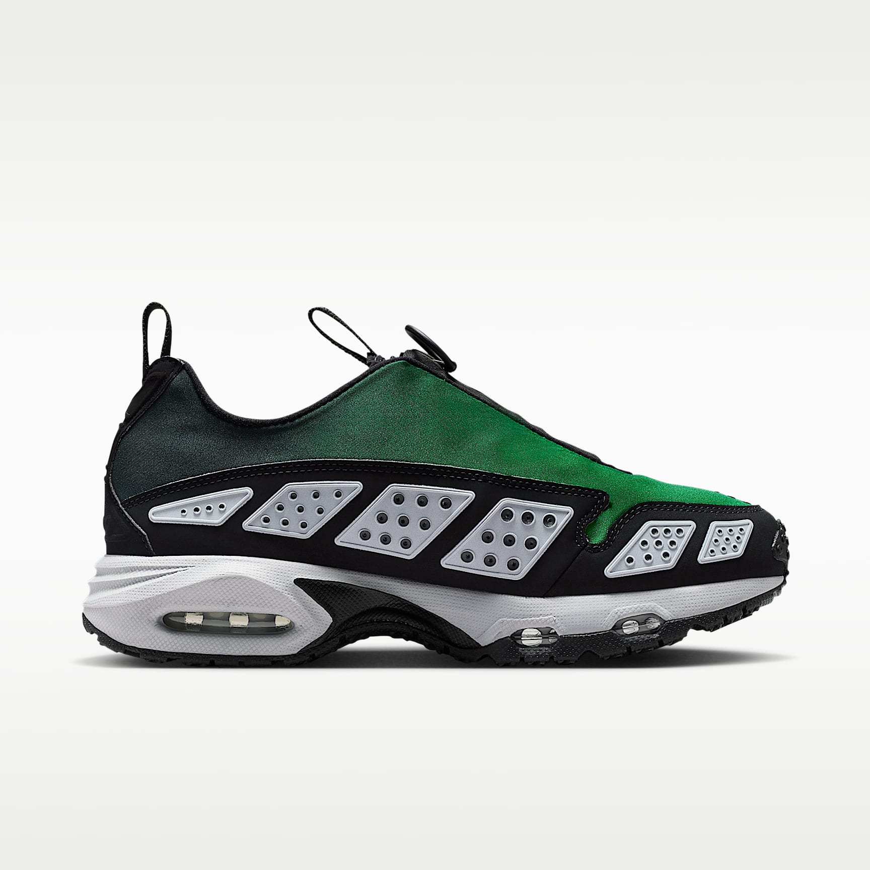 Ahead of its time in '99, the innovative Air Max SNDR is back and louder than ever. From the secure fit around the heel to the zip-up shroud, this legendary sneaker continues to break the mould. Unzip the shroud to reveal "6453", a nod to the last 4 numbers of Nike's office numbers around the world, which spell out N-I-K-E on the keypad. Benefits * Neoprene-like upper feels smooth and stretchy. * Zip-up shroud covers your laces for a sleek look. * Reflective-design vented panels create a breathable feel. * Max Air cushioning in the heel and forefoot adds exceptional bounce and comfort. Product details * Pull tabs * Foam midsole * Rubber outsole * Not intended for use as personal protective equipment (PPE) Max Air unit Visual stunner. Window to the sole. Legendary designer Tinker Hatfield took cues from inside-out Parisian architecture to re-establish Air technology as a leader in cushioning. Plush and comfortable, the Max Air unit has just the right amount of support.