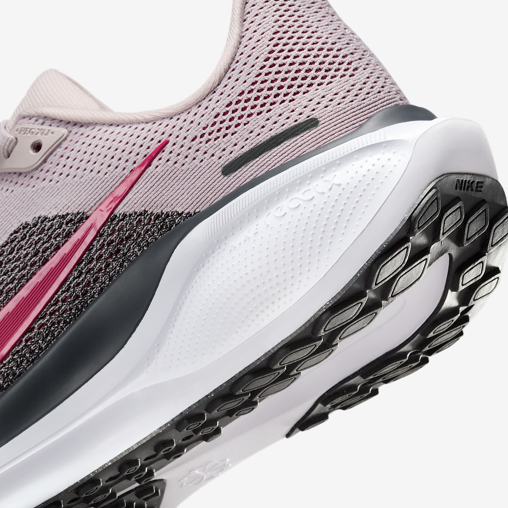 Springy foam plus snappy Air Zoom units equals our most energised ride. Responsive cushioning in the Pegasus provides an energised ride for everyday road running. Experience lighter-weight energy return with dual Air Zoom units and a ReactX foam midsole. Plus, improved engineered mesh on the upper decreases weight and increases breathability. Responsive Ride ReactX foam midsole surrounds forefoot and heel Air Zoom units for an energised ride. It's 13% more responsive than previous React technology. Waffle-inspired traction The signature Waffle-inspired rubber outsole provides traction and flexibility. Plush padding A plush collar, tongue and sockliner provide a secure and comfortable fit. What's new? * A ReactX foam midsole * A lighter, more breathable engineered mesh upper Product details * Weight: approx. 251g (women's size 5.5) * Heel-to-toe drop: 10mm * MR-10 last—our best, most consistent fit (same as Pegasus 40) * Reflective design details * Not intended for use as personal protective equipment (PPE)