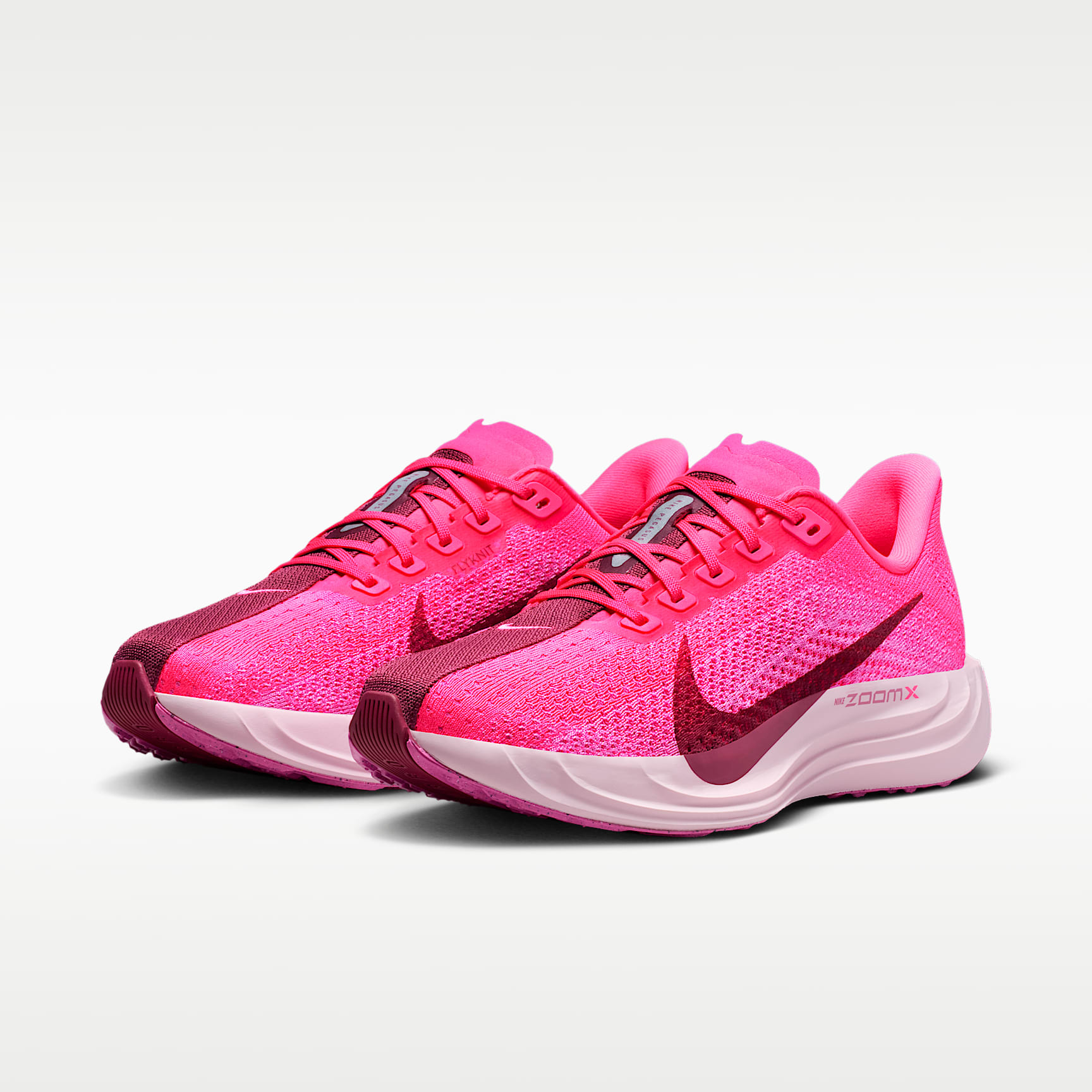 Ultra-responsive, light foam offers next-level energy return. Take responsive cushioning to the next level with the Pegasus Plus. It energises your ride with full-length, super-light ZoomX foam to give you a high level of energy return for everyday runs. And a stretchy Flyknit upper contours to your foot for a seamless fit. Flyknit Upper The Flyknit upper has perforations to help reduce the weight of the shoe and make it more breathable. ZoomX midsole The ultra-responsive ZoomX foam midsole delivers Nike's highest energy return. Reliable traction High-abrasion rubber on the outsole provides traction. Product details * Weight: 205g approx. (women's size 6) * Heel-to-toe drop: 10mm * Midfoot band for containment * Reflective design details * Not intended for use as personal protective equipment (PPE)