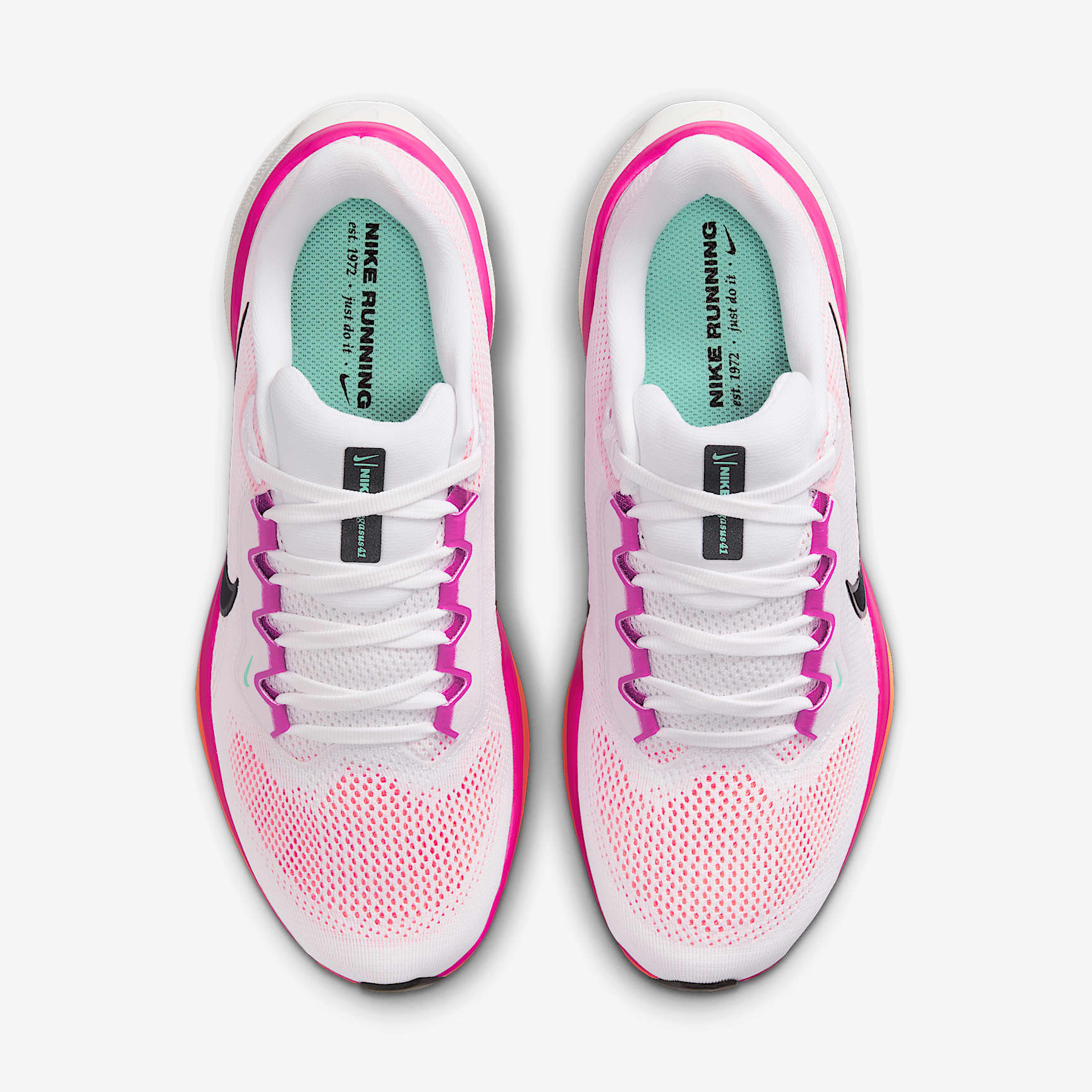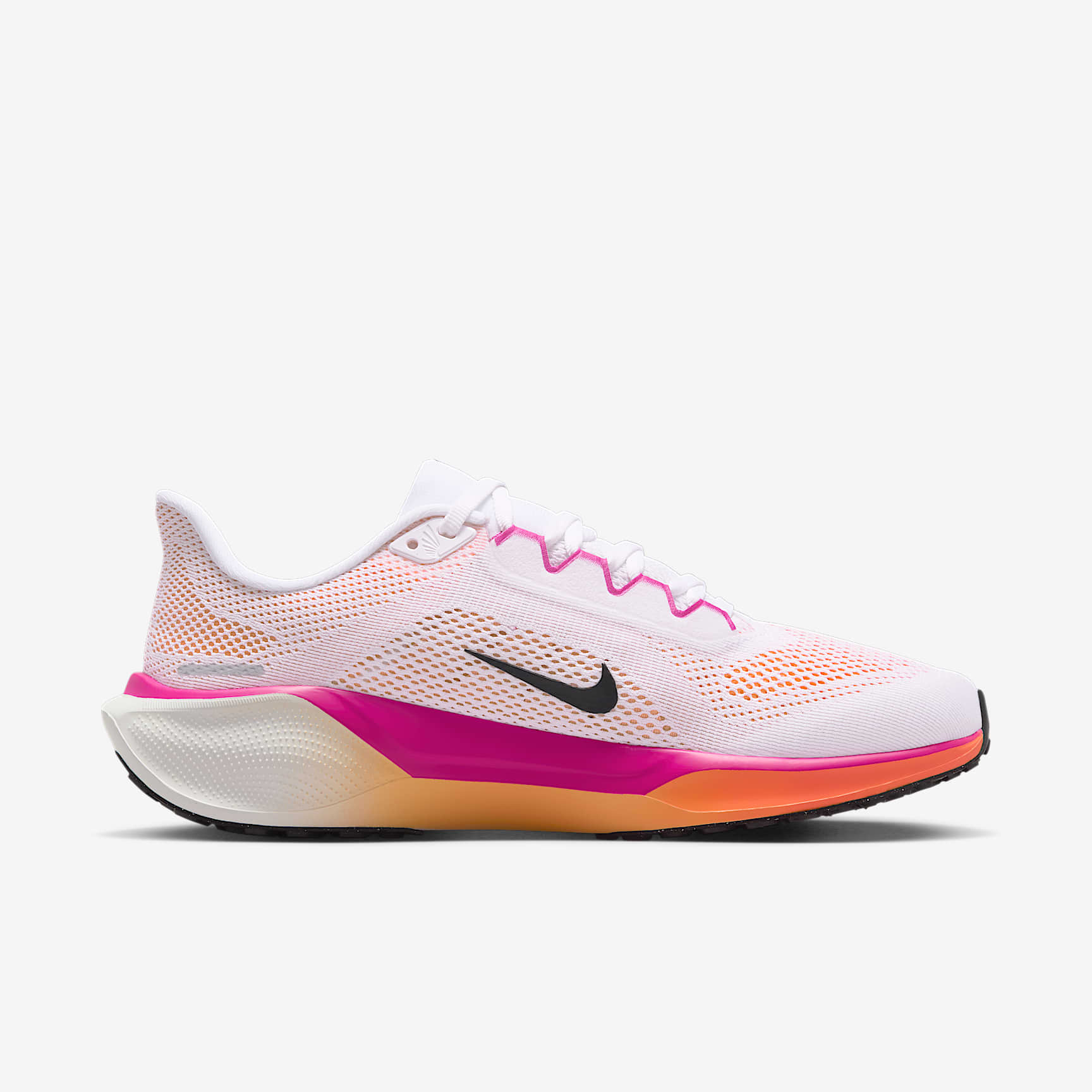 Springy foam plus snappy Air Zoom units equals our most energised ride. Responsive cushioning in the Pegasus provides an energised ride for everyday road running. Experience lighter-weight energy return with dual Air Zoom units and a ReactX foam midsole. Plus, improved engineered mesh on the upper decreases weight and increases breathability. Responsive Ride ReactX foam midsole surrounds forefoot and heel Air Zoom units for an energised ride. It's 13% more responsive than previous React technology. Waffle-inspired traction The signature Waffle-inspired rubber outsole provides traction and flexibility. Plush padding A plush collar, tongue and sockliner provide a secure and comfortable fit. What's new? * A ReactX foam midsole * A lighter, more breathable engineered mesh upper Product details * Weight: approx. 251g (women's size 5.5) * Heel-to-toe drop: 10mm * MR-10 last—our best, most consistent fit (same as Pegasus 40) * Reflective design details * Not intended for use as personal protective equipment (PPE)