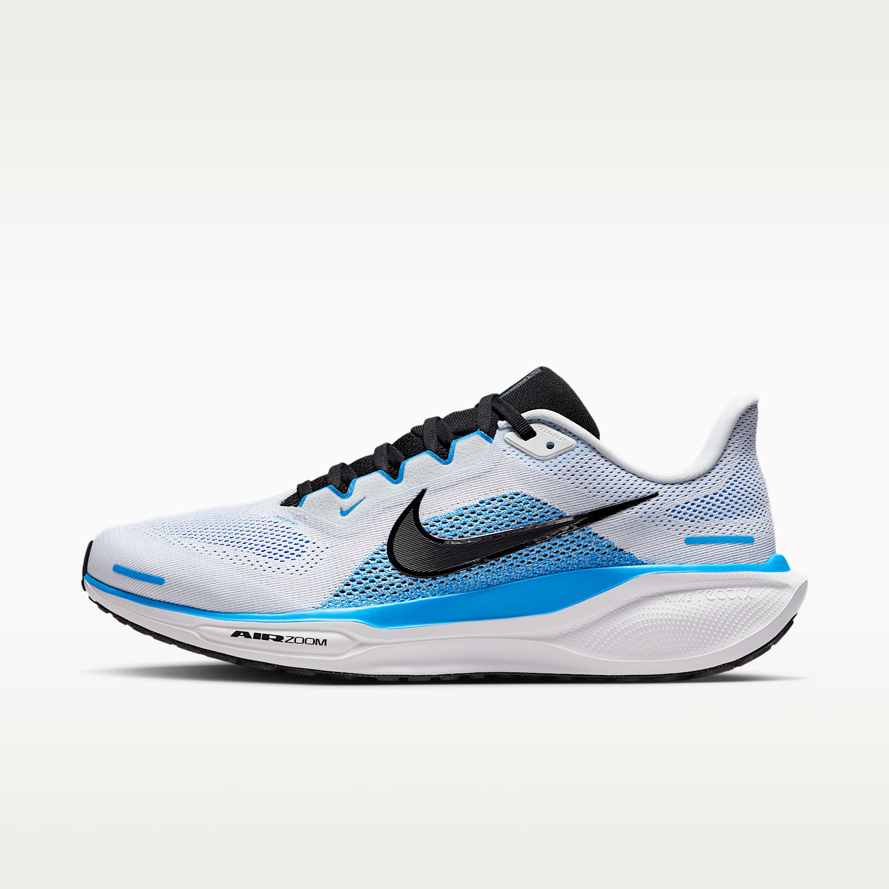 Springy foam plus snappy Air Zoom units equals our most energised ride. Responsive cushioning in the Pegasus provides an energised ride for everyday road running. Experience lighter-weight energy return with dual Air Zoom units and a ReactX foam midsole. Plus, improved engineered mesh on the upper decreases weight and increases breathability. Responsive Ride ReactX foam midsole surrounds forefoot and heel Air Zoom units for an energised ride. It's 13% more responsive than previous React technology. Waffle-inspired traction The signature Waffle-inspired rubber outsole provides traction and flexibility. Plush padding A plush collar, tongue and sockliner provide a secure and comfortable fit. What's new? * A ReactX foam midsole * A lighter, more breathable engineered mesh upper Product details * Weight: approx. 297g (men's size 9) * Heel-to-toe drop: 10mm * MR-10 last—our best, most consistent fit (same as Pegasus 40) * Reflective design details * Not intended for use as personal protective equipment (PPE)