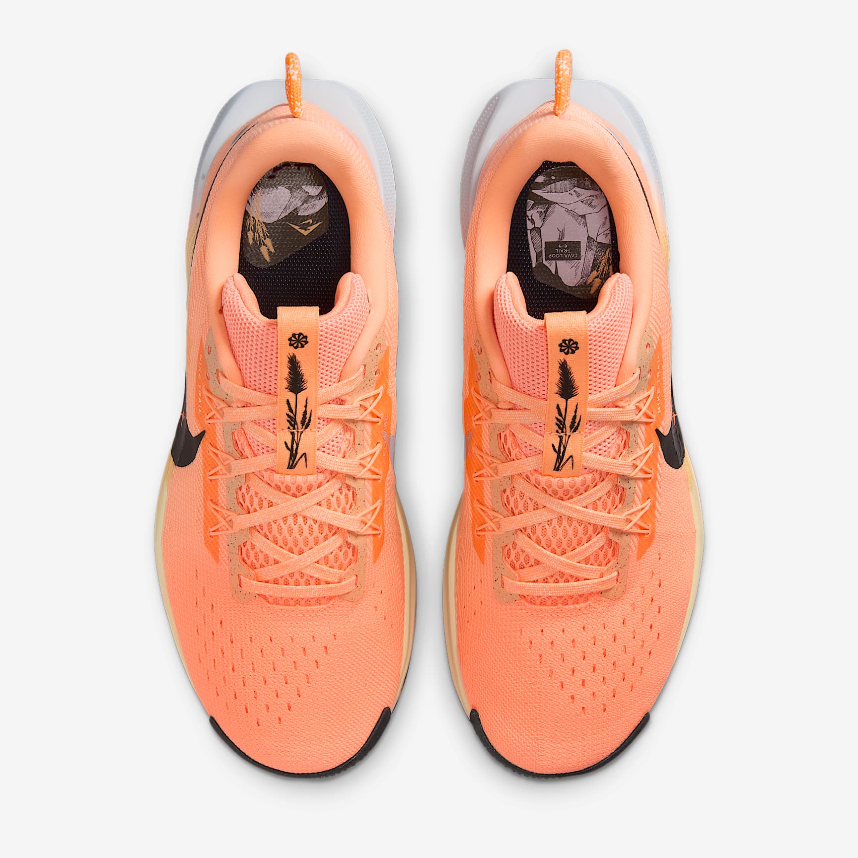 Springy foam and enhanced grip energise each step from road to trail. Spread your wings and see what nature brings as you chase earthy paths in the Peg Trail 5. Now equipped with an ultra-responsive ReactX foam midsole, this shoe is a true dual threat raring to cross the divide between dirt and drives. Mesh on the upper Mesh is combined with open holes on the upper for breathability. Responsive Ride Springy ReactX foam midsole gives you lightweight energy return. It's 13% more responsive than previous React technology. ATC outsole Nike Trail All-Terrain Compound (ATC) rubber outsole provides enhanced grip on the steep inclines and in wet weather, while giving you a smooth ride on the road. Flywire technology Flywire technology integrates with the laces to help secure your midfoot. What's new? * A ReactX foam midsole * Nike Trail ATC outsole Product details * Weight: 243g approx. (women's size 6) * Heel-to-toe drop: 9.5mm * Reflective design details * Not intended for use as personal protective equipment (PPE)
