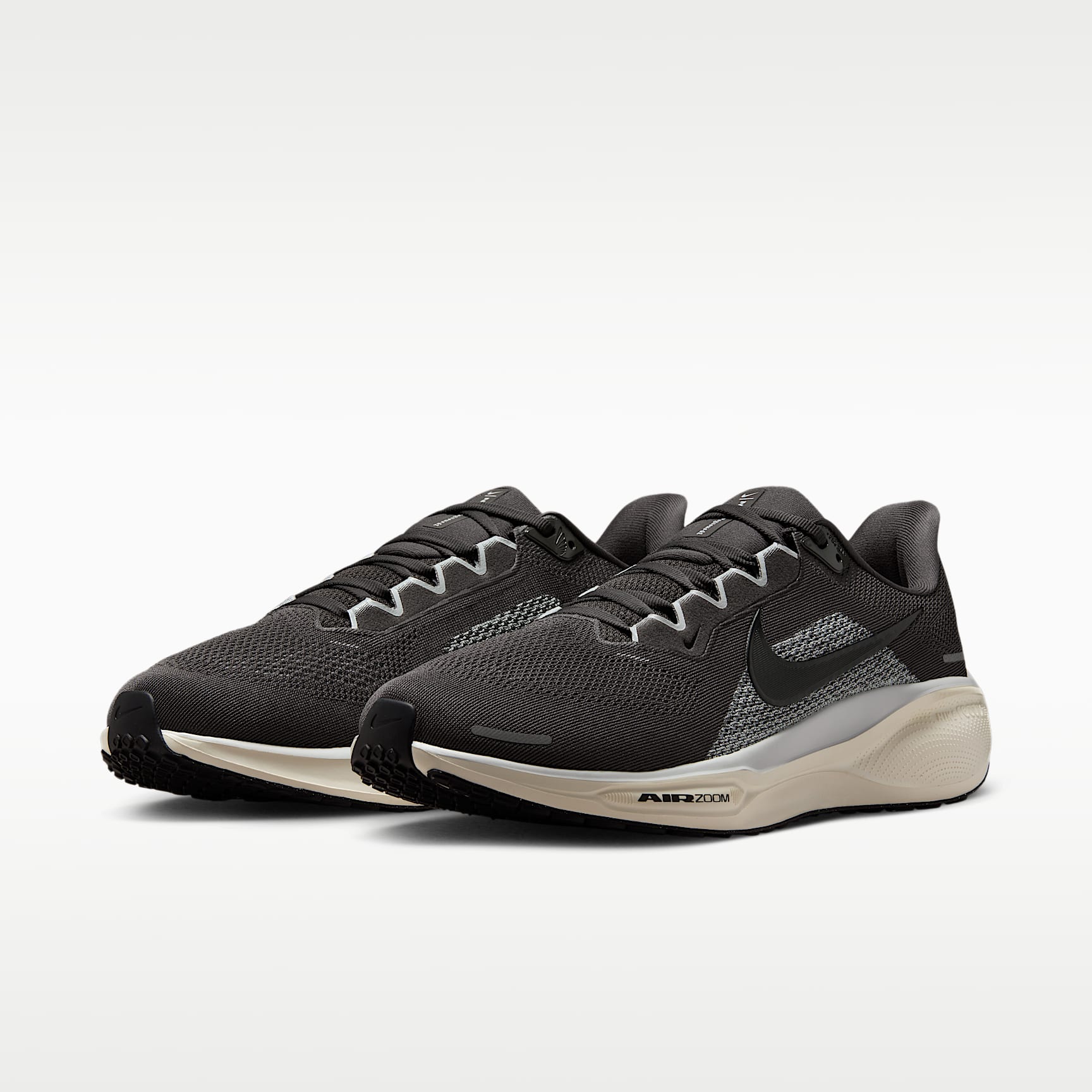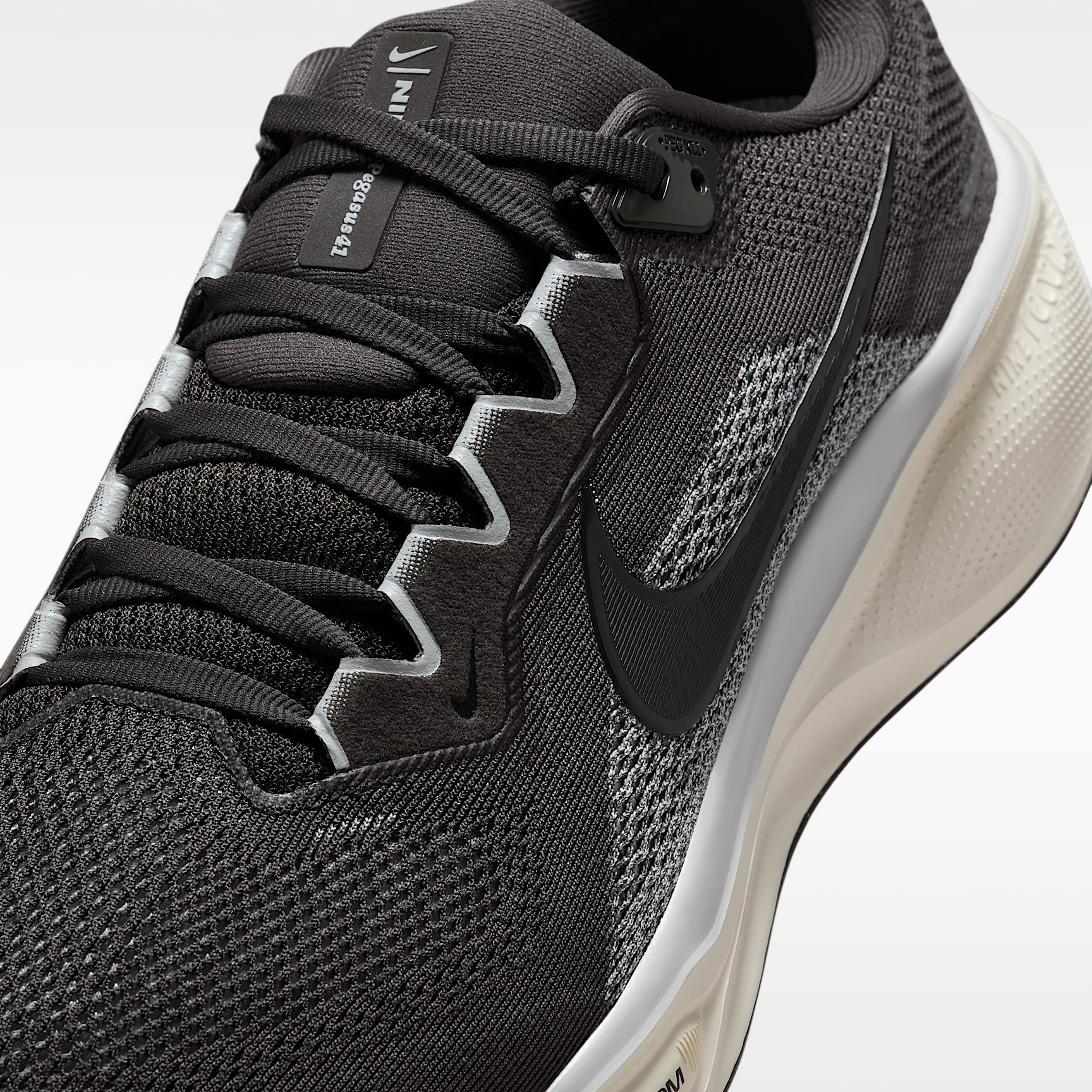 Springy foam plus snappy Air Zoom units equals our most energised ride. Responsive cushioning in the Pegasus provides an energised ride for everyday road running. Experience lighter-weight energy return with dual Air Zoom units and a ReactX foam midsole. Plus, improved engineered mesh on the upper decreases weight and increases breathability. Responsive Ride ReactX foam midsole surrounds forefoot and heel Air Zoom units for an energised ride. It's 13% more responsive than previous React technology. Waffle-inspired traction The signature Waffle-inspired rubber outsole provides traction and flexibility. Plush padding A plush collar, tongue and sockliner provide a secure and comfortable fit. What's new? * A ReactX foam midsole * A lighter, more breathable engineered mesh upper Product details * Weight: approx. 297g (men's size 9) * Heel-to-toe drop: 10mm * MR-10 last—our best, most consistent fit (same as Pegasus 40) * Reflective design details * Not intended for use as personal protective equipment (PPE)