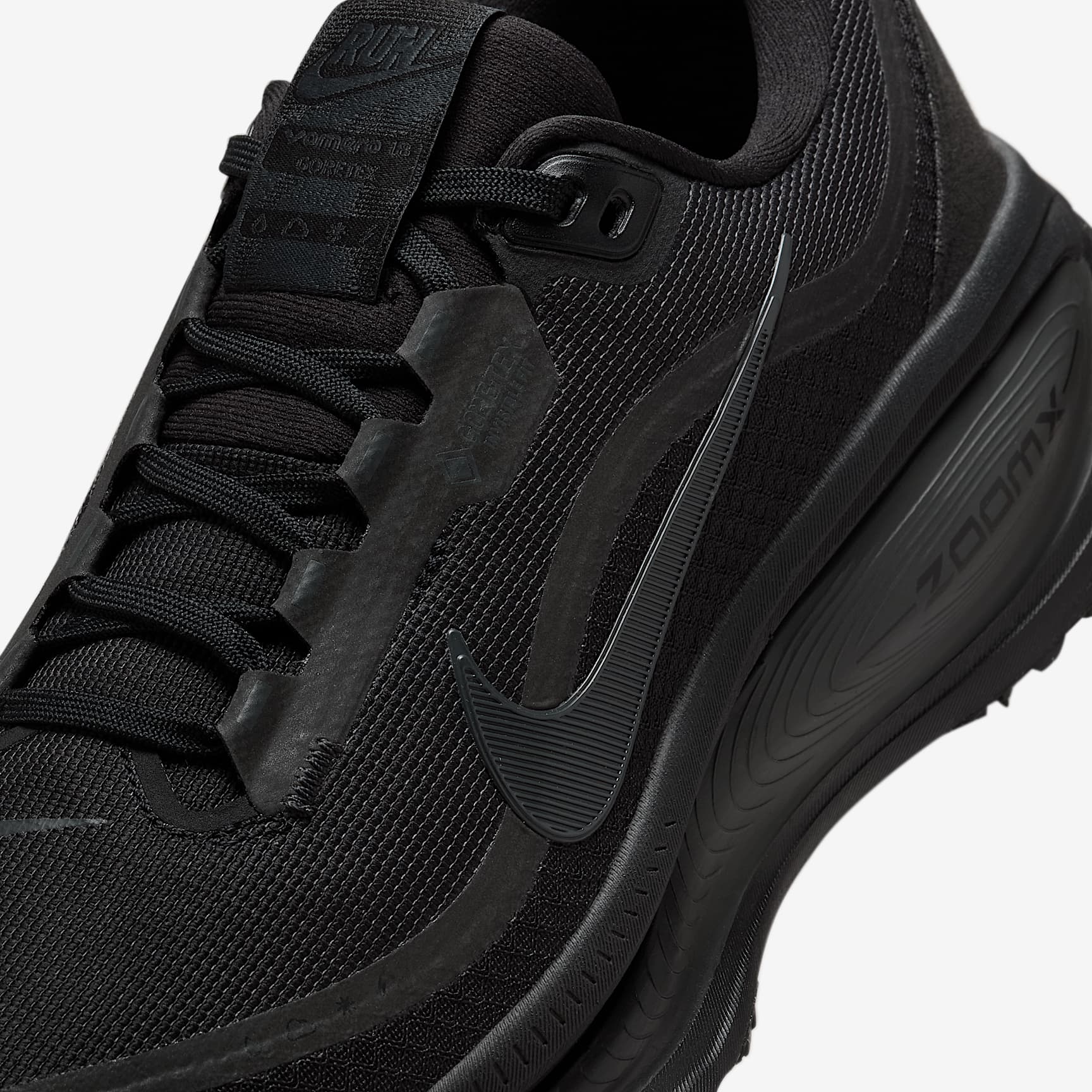 Waterproof tech meets maximum cushioning for a comfortable wet-weather ride. Maximum cushioning in the winterized Vomero 18 provides a comfortable ride for every run. Experience optimal comfort with lightweight ZoomX foam stacked on top of responsive ReactX foam in the midsole. Plus, a waterproof GORE-TEX upper and reflective design details throughout help you comfortably take on the elements. Rain-ready upper Waterproof GORE-TEX lining and technical mesh upper keep your feet dry. Dual-density midsole We stacked ZoomX foam on top of ReactX foam for a soft, comfortable ride. Storm Tread outsole The Storm-Tread outsole provides traction and grip for wet, slippery conditions. More benefits * Waterproof GORE-TEX liner and mesh upper * ZoomX foam stacked on top of ReactX foam * Higher stack height compared to Vomero 17 Product Details * Reflective design hit on heel * Not intended for use as personal protective equipment (PPE) * Weight: 268g approx. (Women's UK 5.5) * Heel-to-toe drop: 10mm