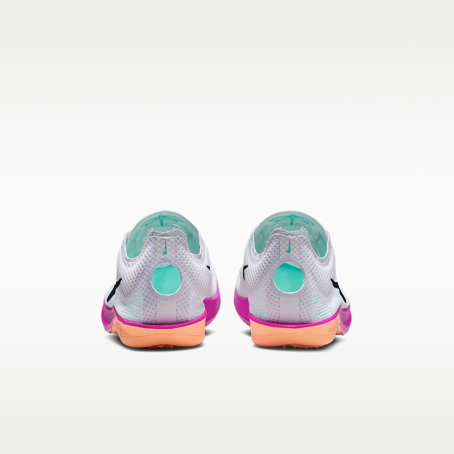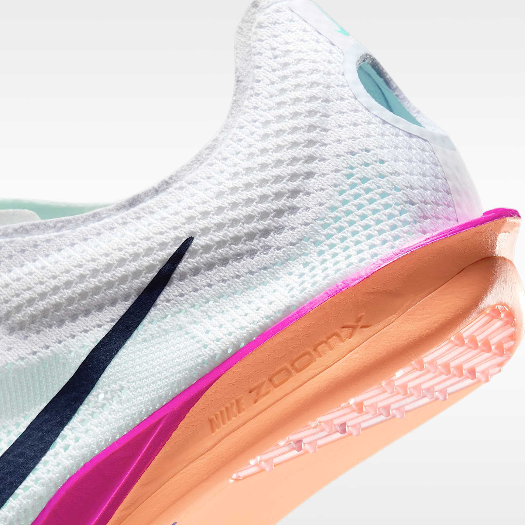 Updated spikes plus ZoomX foam equals straight speed. One of the fastest long-distance athletics spikes to ever cross the finishing line turns up the tempo even more. Updated spikes, full-length ZoomX foam and a lighter, more responsive plate are ready for speed and stamina. Sharp stability A slightly wider midfoot and forefoot improve the feeling of stability on straights and especially around the turns. Light and fast The new full-length plate material is lighter and more responsive than the previous version while adding durability. The curved design gives you a propulsive feel. Breathable comfort Engineered mesh on the upper enhances breathability and comfort. Its contouring fit gives you a disappearing sensation that is built to go the distance. Energy return for each stride Full-length ZoomX foam delivers Nike's highest energy return. Product details * Weight: 130g approx. (men's UK 7.5, women's UK 7.5)