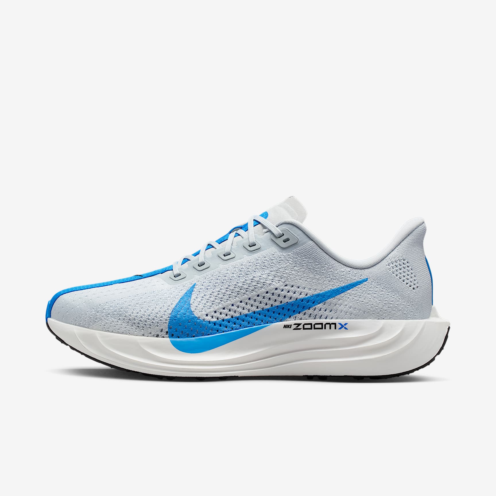 Ultra-responsive, light foam offers next-level energy return. Take responsive cushioning to the next level with the Pegasus Plus. It energizes your ride with full-length, superlight ZoomX foam to give you a high level of energy return for everyday runs. And a stretchy Flyknit upper conforms to your foot for a seamless fit. Flyknit Upper The Flyknit upper has perforations to help reduce the weight of the shoe and make it more breathable. ZoomX Midsole Ultra-responsive ZoomX foam midsole delivers Nike's highest energy return. Reliable Traction High-abrasion rubber on outsole provides traction. Product Details * Weight: Approx. 245g/8.6oz (Men's US 10) * Heel-to-toe drop: 10mm * Midfoot band for containment * Reflective details * Not intended for use as Personal Protective Equipment (PPE)