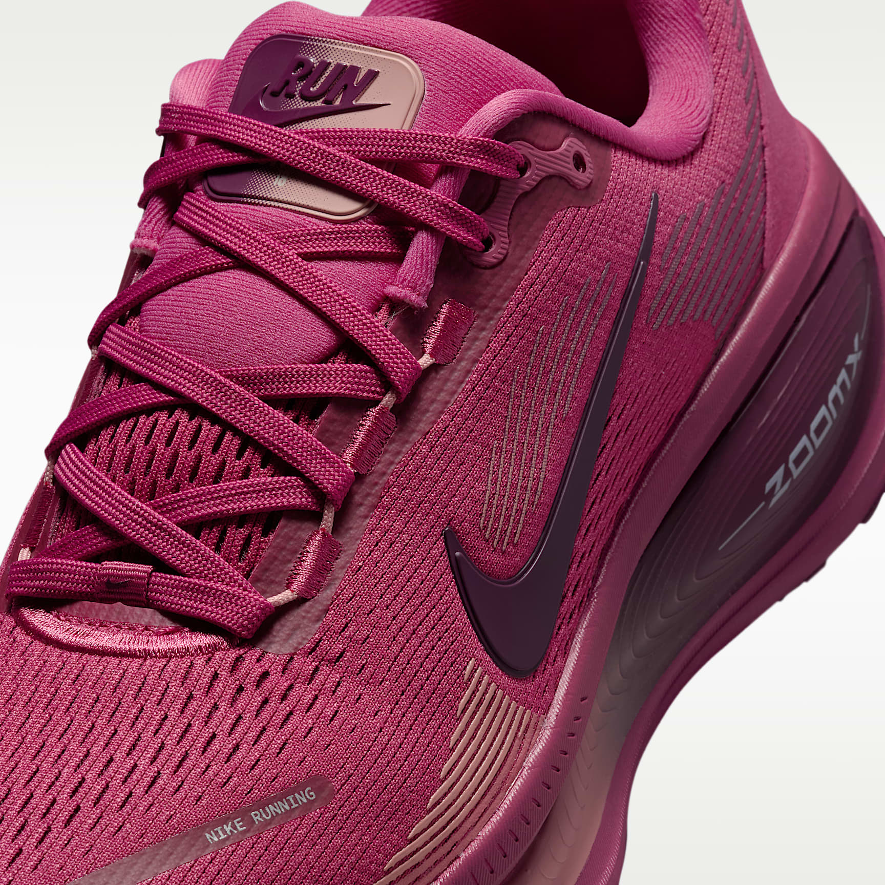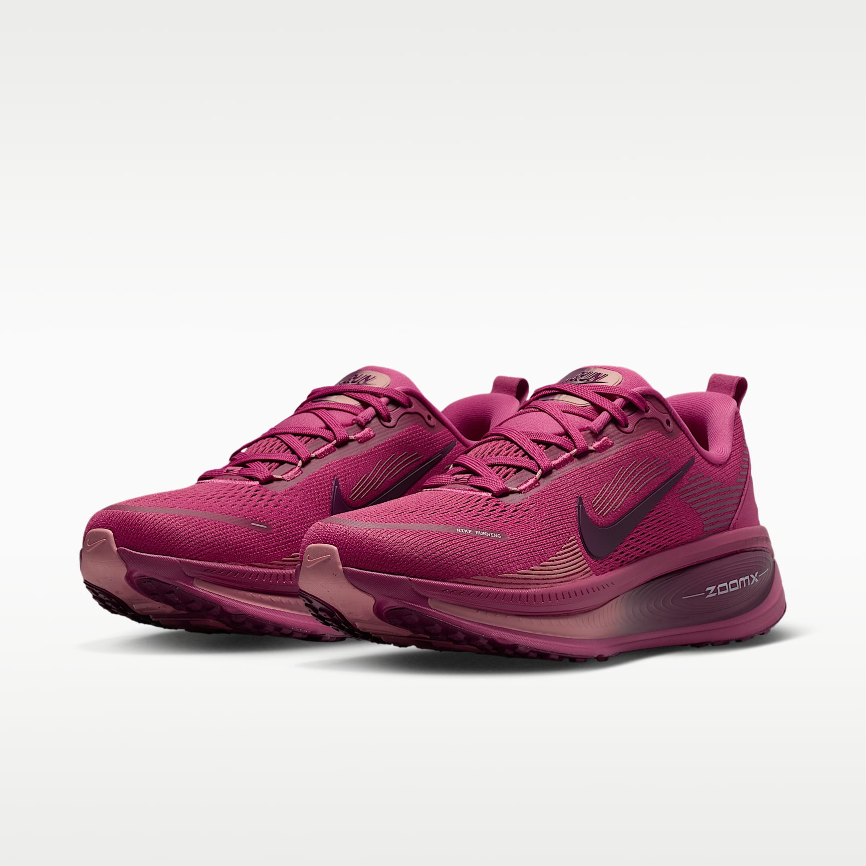 Maximum cushioning in the Vomero provides a comfortable ride for everyday runs. Our softest, most cushioned ride has lightweight ZoomX foam stacked on top of responsive ReactX foam in the midsole. Plus, a redesigned traction pattern offers a smooth heel-to-toe transition. Engineered mesh upper The upper is made from engineered mesh for soft breathability. Dual-density midsole Our dual-density midsole has ZoomX foam stacked on top of ReactX foam—13% more responsive than previous React technology—for a comfortable ride. Pods around the outsole We placed pods around the outsole to help enhance agility and smoother heel-to-toe transitions. Plush padding A plush tongue and lining give you a comfortably snug feel. What's new? The newly stacked foam midsole with premium ZoomX on top of ReactX foam amplifies cushioned comfort. Product details * Weight: 263g approx. (women's UK 5.5) * Heel-to-toe drop: 10mm * MR-10 Last—Our best, most consistent fit * Not intended for use as personal protective equipment (PPE)