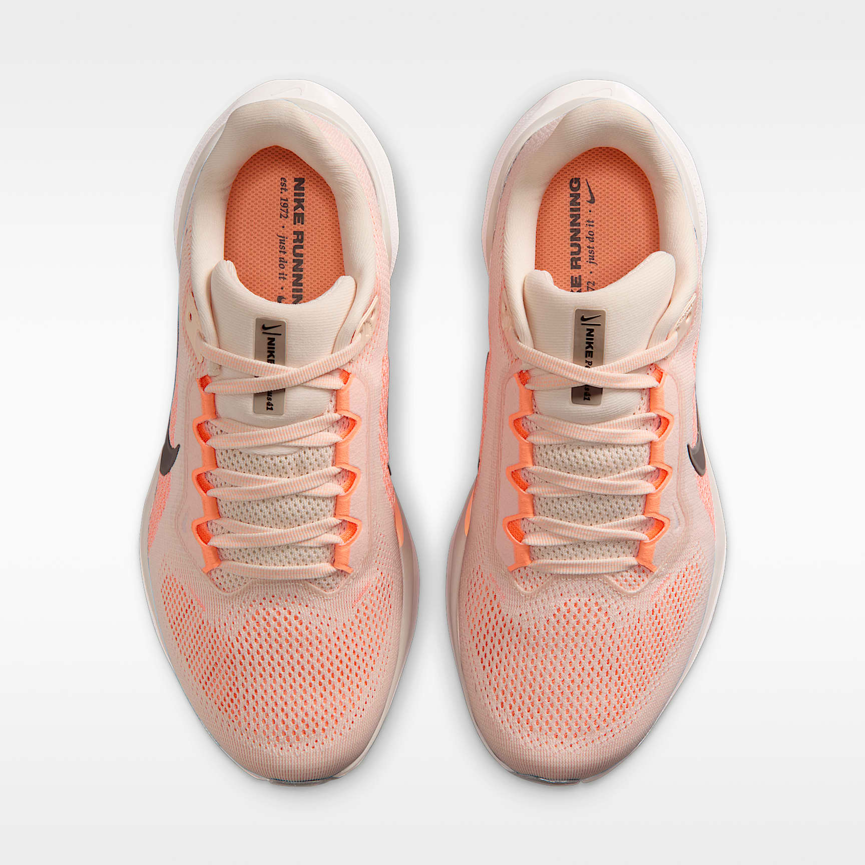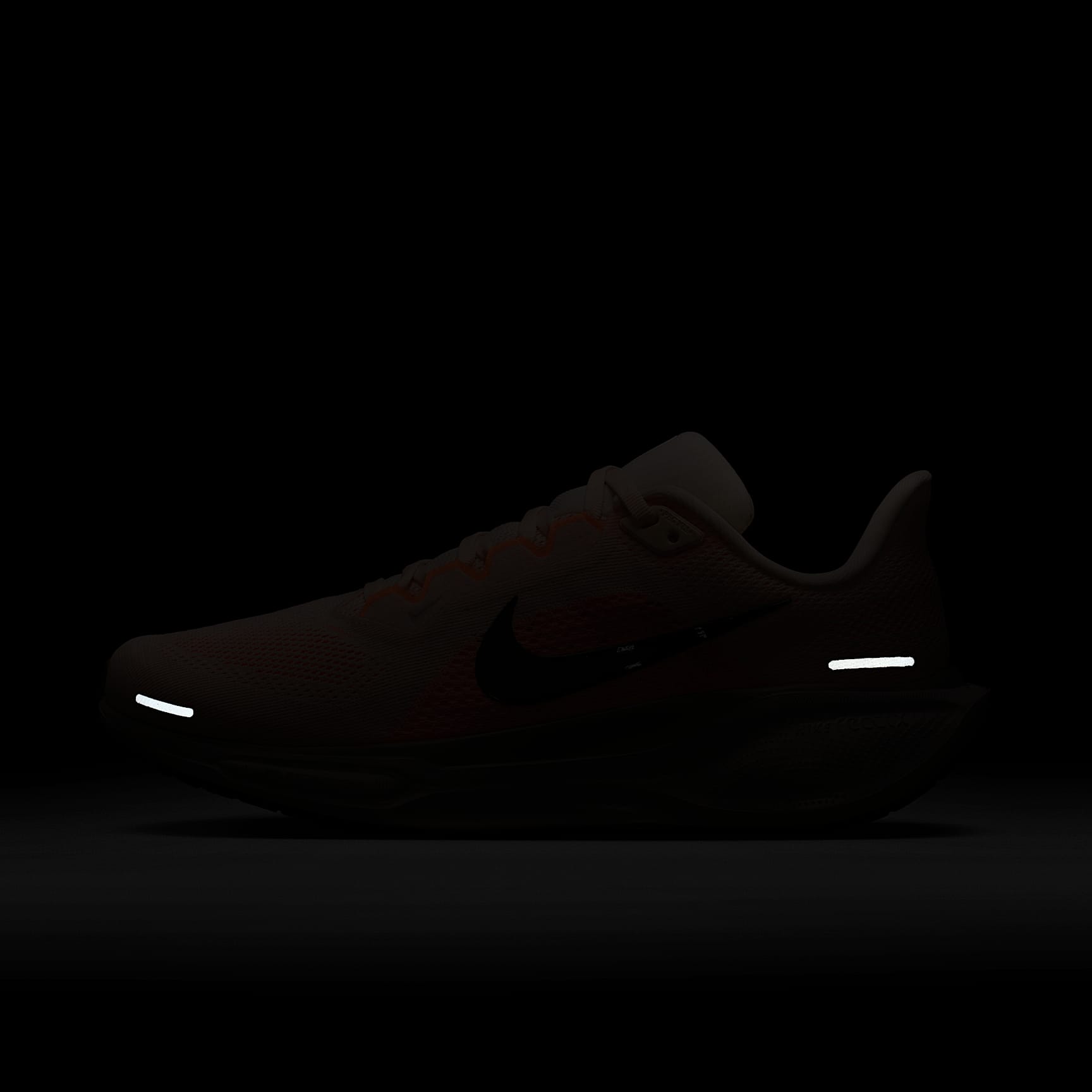 Responsive cushioning in the Pegasus provides an energized ride for everyday road running. Experience lighter-weight energy return with dual Air Zoom units and a ReactX foam midsole. Plus, improved engineered mesh on the upper decreases weight and increases breathability. Springy Cushioning We paired Nike ReactX foam with two Air Zoom units (one in the forefoot and one in the heel) to give you a bouncy, springy sensation and an energized feel at toe-off. Waffle-Inspired Traction Signature waffle-inspired rubber outsole provides traction and flexibility. Plush Padding Plush collar, tongue and sockliner for a secure and comfortable fit What's New? * ReactX foam midsole is 13% more responsive than previous React technology. * Engineered mesh upper is lighter and more breathable than the Pegasus 40. Product Details * Weight: Approx. 251g/8.9oz (Women's US 8) * Heel-to-toe drop: 10mm * MR-10 Last - Our best, most consistent fit (same as Pegasus 40) * Reflective details * Not intended for use as Personal Protective Equipment (PPE)