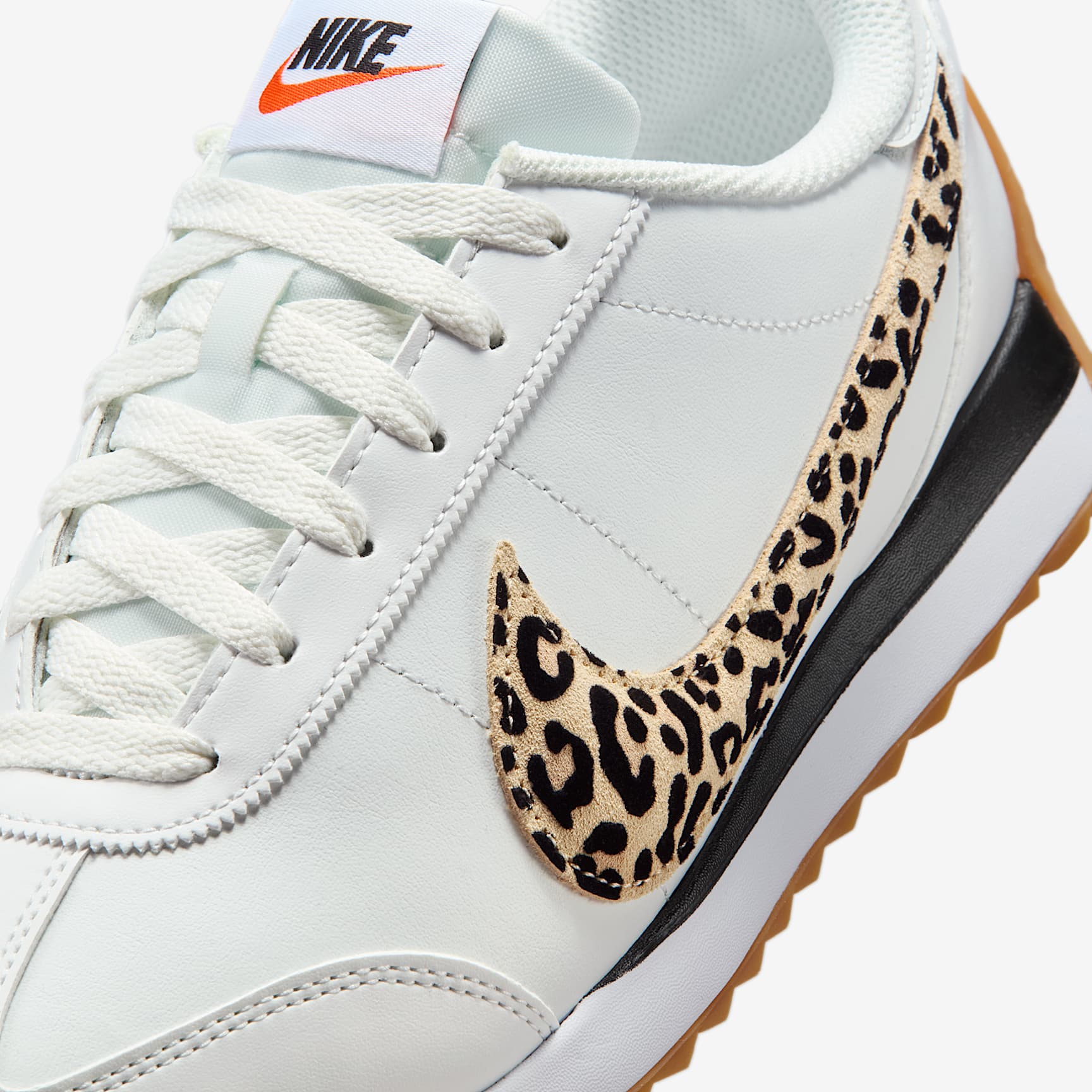 The Nike Pacific's silhouette and herringbone sole takes inspiration from old-school styles. This version's leather upper is finished with a leopard puffed Swoosh logo for a fierce look. Benefits * Wide collar opening captures the proportions of '70s running style. * Single-piece injected midsole for added flexibility. * Flex grooves in outsole for all-day comfort. Product Details * Padded collar * Foam midsole * Rubber outsole
