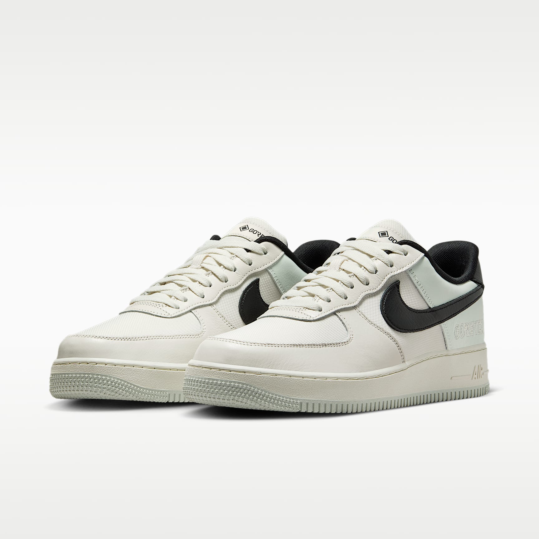 ALL FOR 1. The Nike Air Force 1 GORE-TEX ® retools the classic Air Force 1 with a street-approved design that meets the standards of GORE-TEX ® waterproof technology.It features water-wicking flat laces, a GORE-TEX ® bootie and GORE-TEX ® branding on the heel. Stay Dry A GORE-TEX ® inner sleeve keeps the foot warm, snug and dry. All-Day Comfort The Nike Air unit provides superior cushioning, while padding at the collar feels soft and comfortable. Durable Traction The non-marking rubber adds traction and durability. Premium Look A mixture of textile and full-grain leather on the upper adds breathability and gives a premium look. Product Details * GORE-TEX branding on heel and tongue