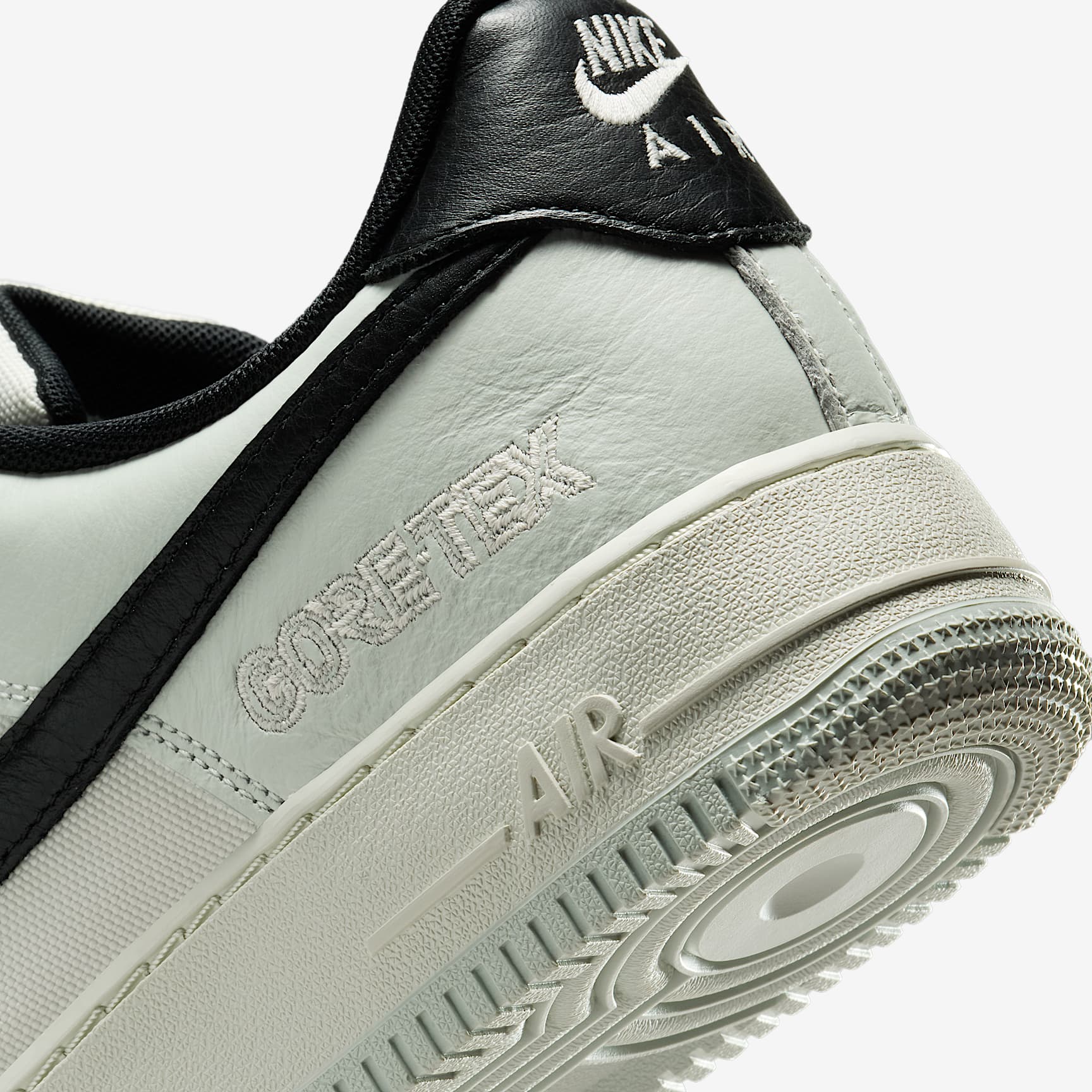 ALL FOR 1. The Nike Air Force 1 GORE-TEX ® retools the classic Air Force 1 with a street-approved design that meets the standards of GORE-TEX ® waterproof technology.It features water-wicking flat laces, a GORE-TEX ® bootie and GORE-TEX ® branding on the heel. Stay Dry A GORE-TEX ® inner sleeve keeps the foot warm, snug and dry. All-Day Comfort The Nike Air unit provides superior cushioning, while padding at the collar feels soft and comfortable. Durable Traction The non-marking rubber adds traction and durability. Premium Look A mixture of textile and full-grain leather on the upper adds breathability and gives a premium look. Product Details * GORE-TEX branding on heel and tongue
