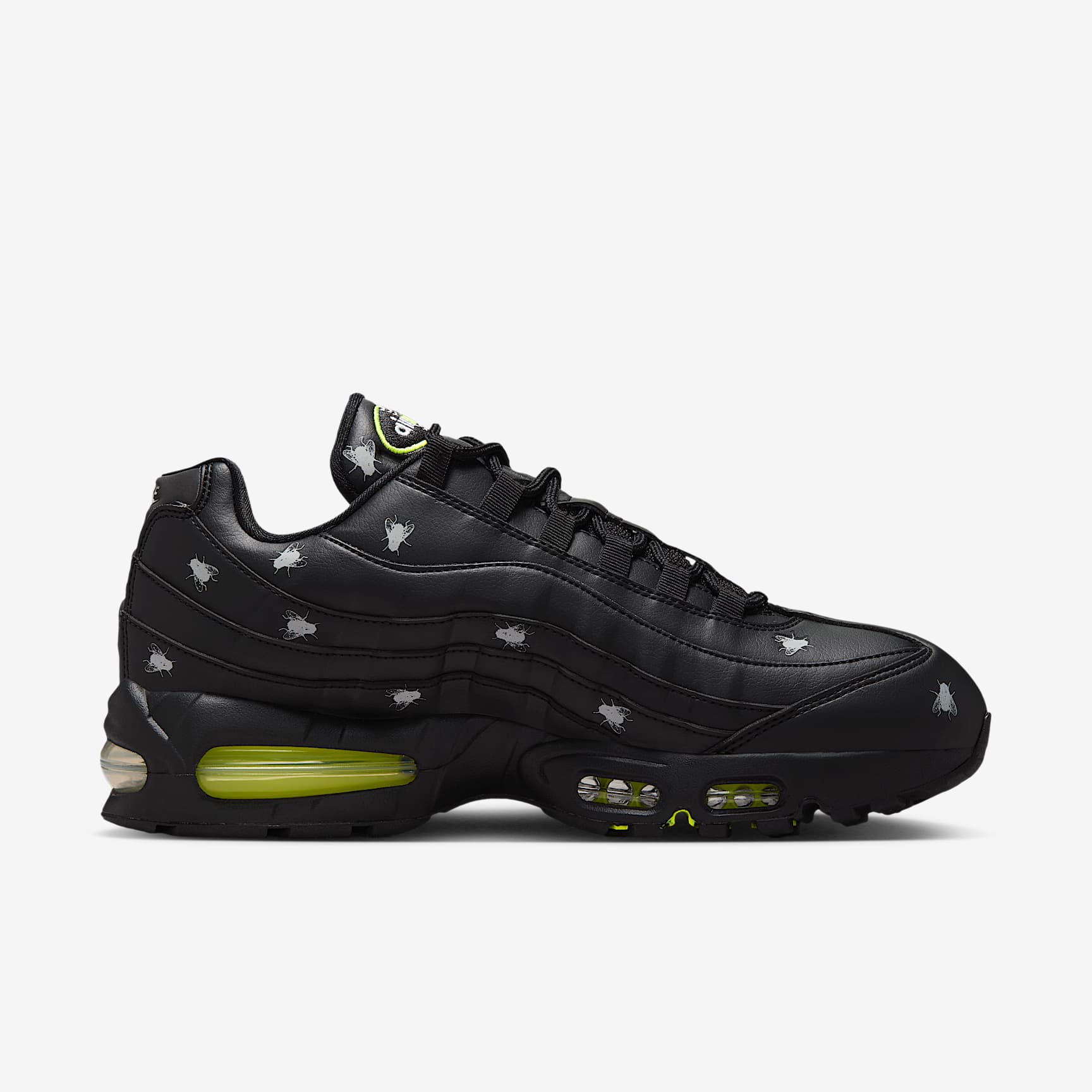 The Air Max 95 originally takes inspiration from the human anatomy, leading to its distinctive wavy design. This version pairs mixed materials and visible Max Air cushioning for a layered look with unbelievable comfort. Benefits * Visible Max Air cushioning provides lightweight cushioning. * Flex grooves in the midsole/outsole let you move freely. Product Details * Foam midsole * Rubber outsole
