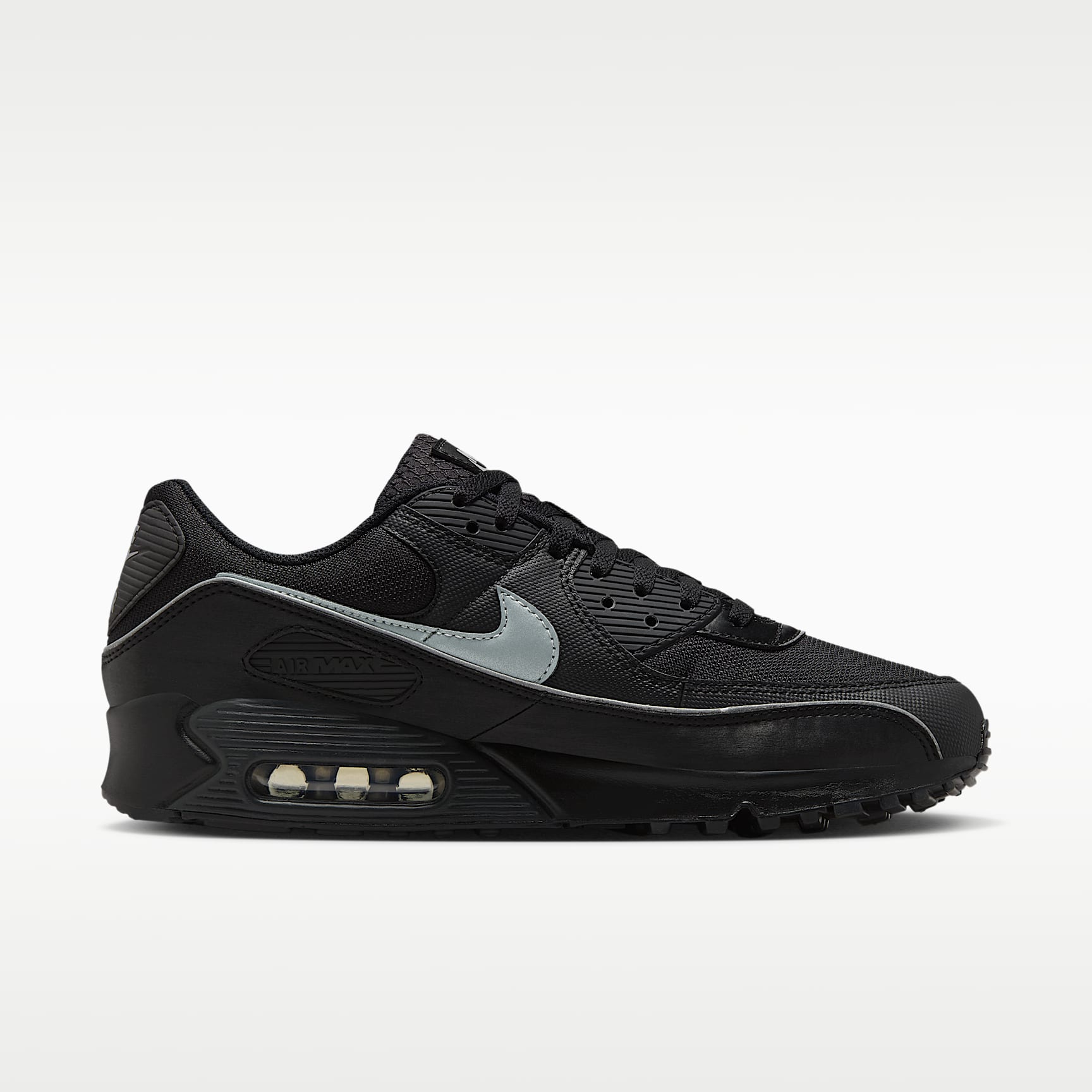 The Air Max 90 stays true to its running roots with the iconic Waffle sole. Plus, stitched overlays and textured accents create the '90s look you love. Finished with easy-to-style colours, its visible Air cushioning adds comfort to your journey. Benefits * The textile upper with leather and synthetic overlays creates a layered look that lasts. * Originally designed for performance running, visible Air cushioning puts the history of comfort beneath your feet. * Rubber Waffle outsole delivers durable traction and heritage style. Product details * Padded collar * Foam midsole * Reflective design details * Not intended for use as personal protective equipment (PPE)
