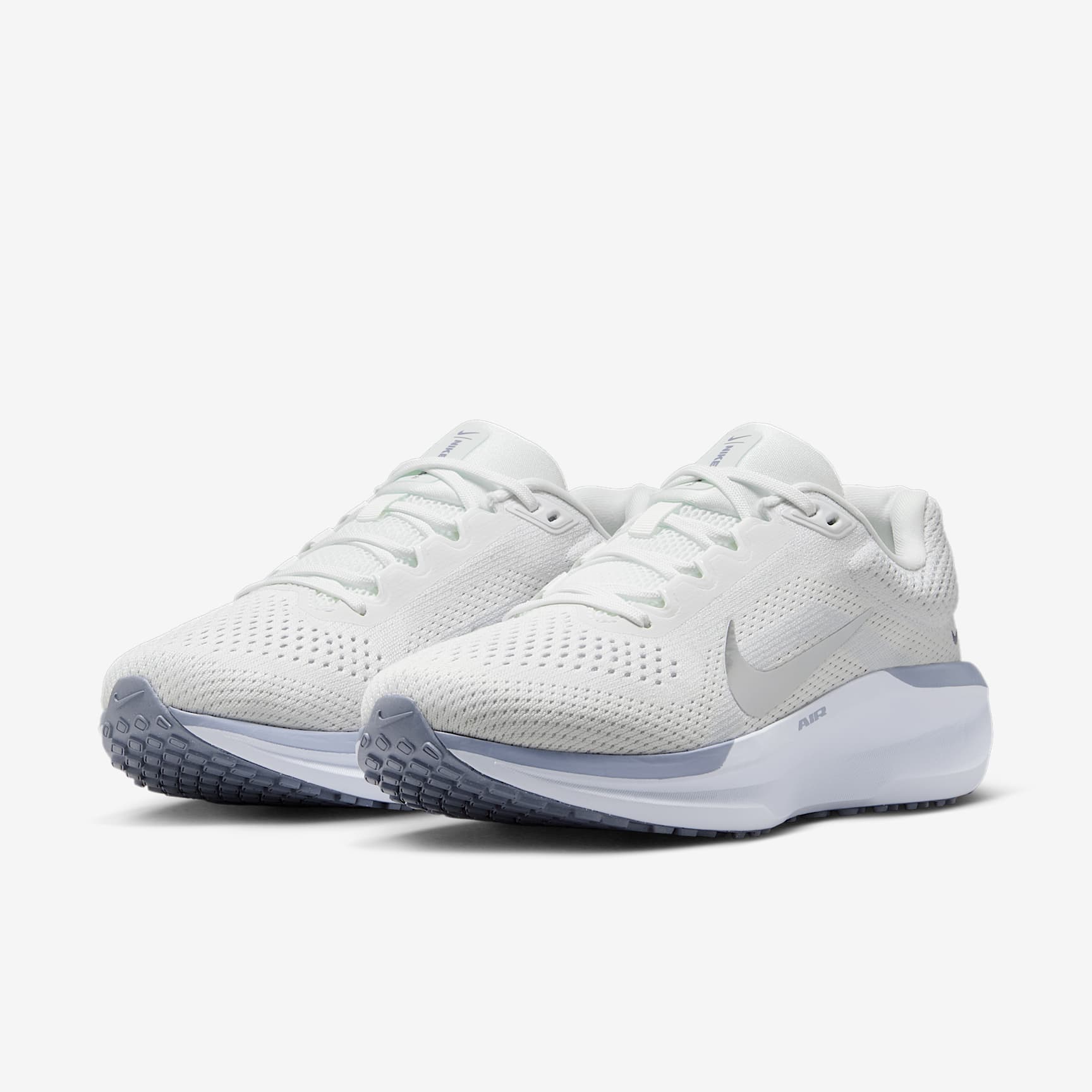 Springy Nike Air is combined with soft foam for an energised ride. Responsive cushioning provides a balanced ride for everyday runs. Experience energy return with a combination of Cushlon 3.0 foam and a full-length Nike Air unit in the midsole. Plus, an elastic midfoot band and a spacious forefoot provide an accommodating, comfortable fit. Breathable upper The engineered mesh on the upper provides breathability. Responsive ride Our Cushlon 3.0 foam midsole is combined with a full-length Nike Air unit to energise each step. Reliable traction The rubber Waffle-inspired outsole offers reliable traction. What's new? * More space in the forefoot * A wider heel * Added breathability Product details * Weight: 262g approx. (women's UK 5.5) * Heel-to-toe drop: 10mm * MR-10 Last—Our best, most consistent fit * An elastic midfoot band for accommodating various fits and activities * Reflective design details * Not intended for use as personal protective equipment (PPE)