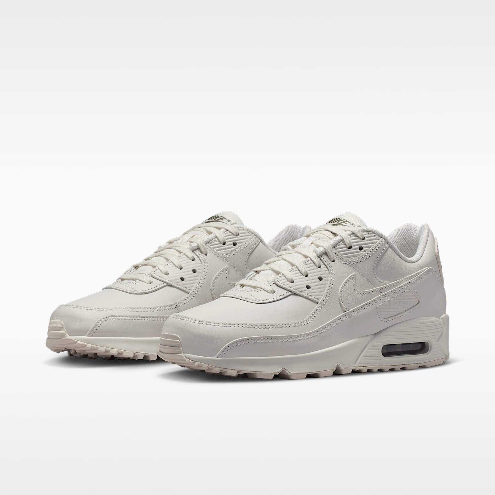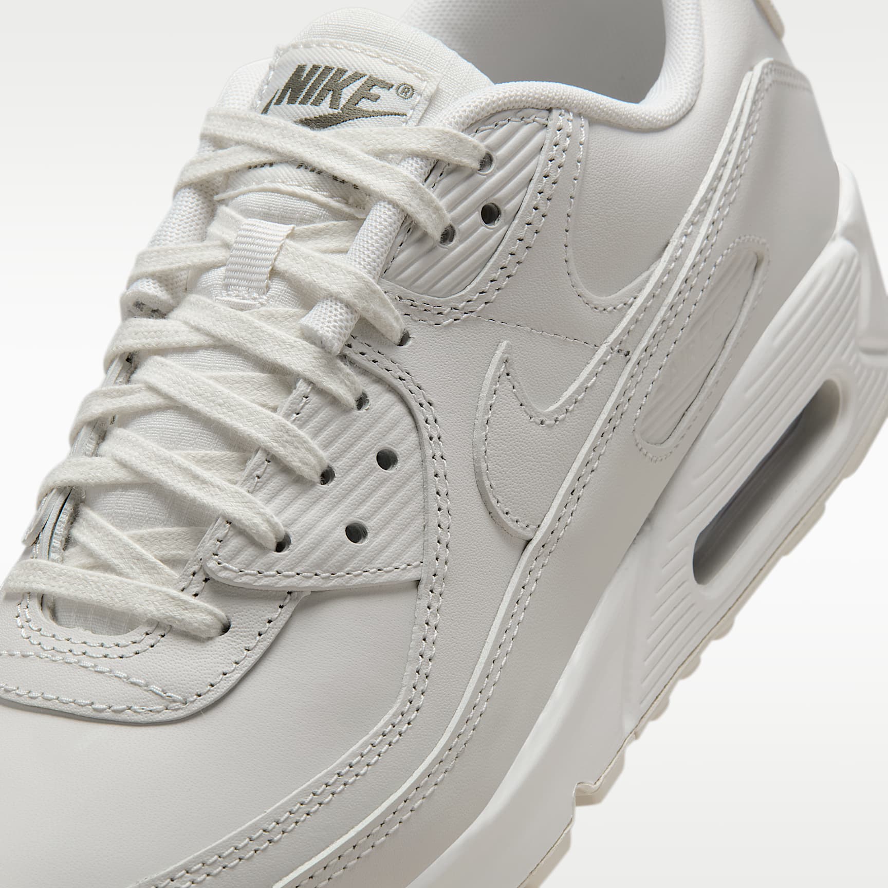 The Air Max 90 stays true to its running roots with the iconic Waffle sole. Plus, stitched overlays and textured accents create the '90s look you love. Finished with easy-to-style colors, its visible Air cushioning adds comfort to your journey. Benefits * Textile upper with leather and synthetic overlays creates a layered look that lasts. * Originally designed for performance running, visible Air cushioning puts the history of comfort beneath your feet. * Rubber Waffle outsole delivers durable traction and heritage style. Product Details * Padded collar * Foam midsole Air Max 90 The 90s were a turning point in culture—art, music, fashion and sneakers. The Air Max was at the forefront of the movement. With even more exposed Air cushioning and a bold new color affectionately dubbed as “infrared,” its revolutionized design helped the first 90 take on a life of its own. No longer just a running shoe, it solidified Air Max as a streetwear cornerstone.