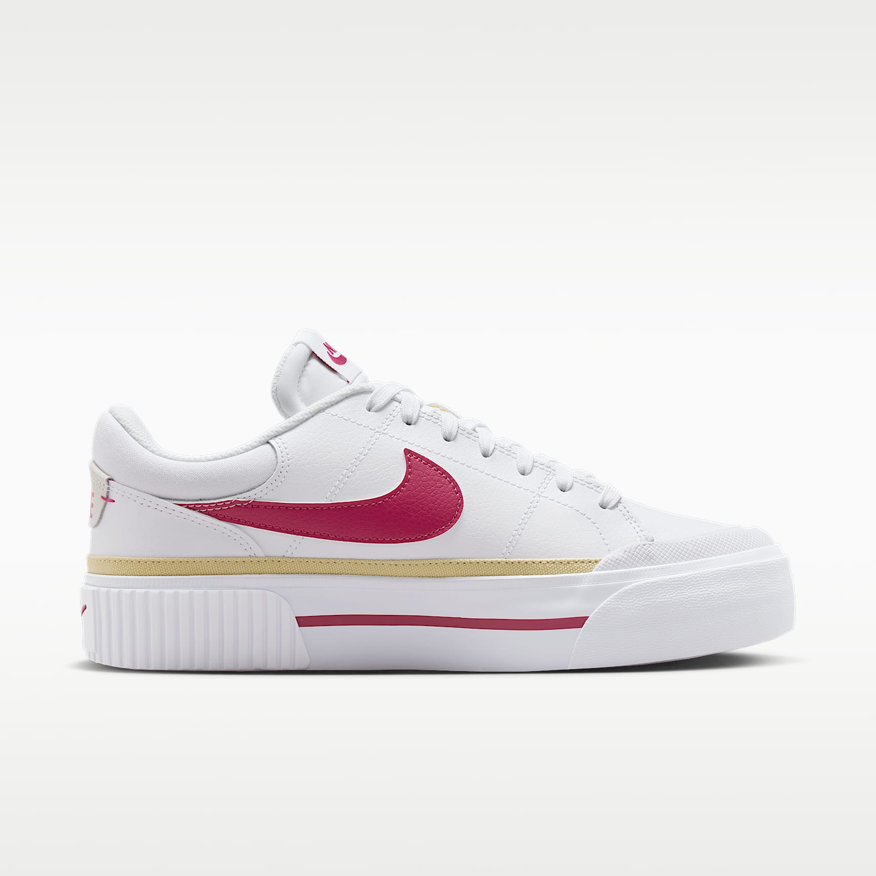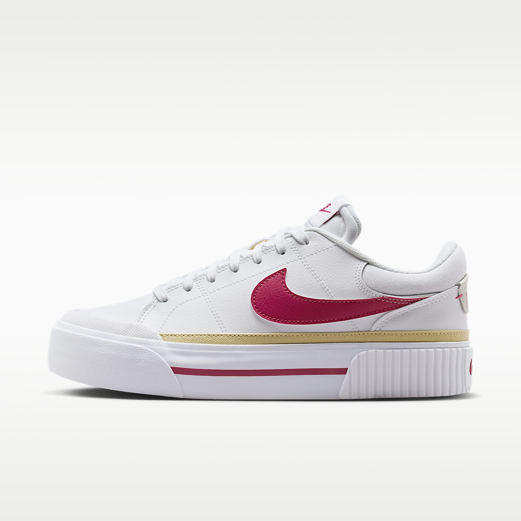 Elevate your style with the Nike Court Legacy Lift. Its platform midsole delivers a bold statement on top of the classic, easy-to-wear design. And don't worry, we've kept the fit you love. Benefits * Subtly layered upper keeps it classic and easy to wear. * Rubber outsole delivers traction and durability. * Padded heel and plush tongue feel soft.