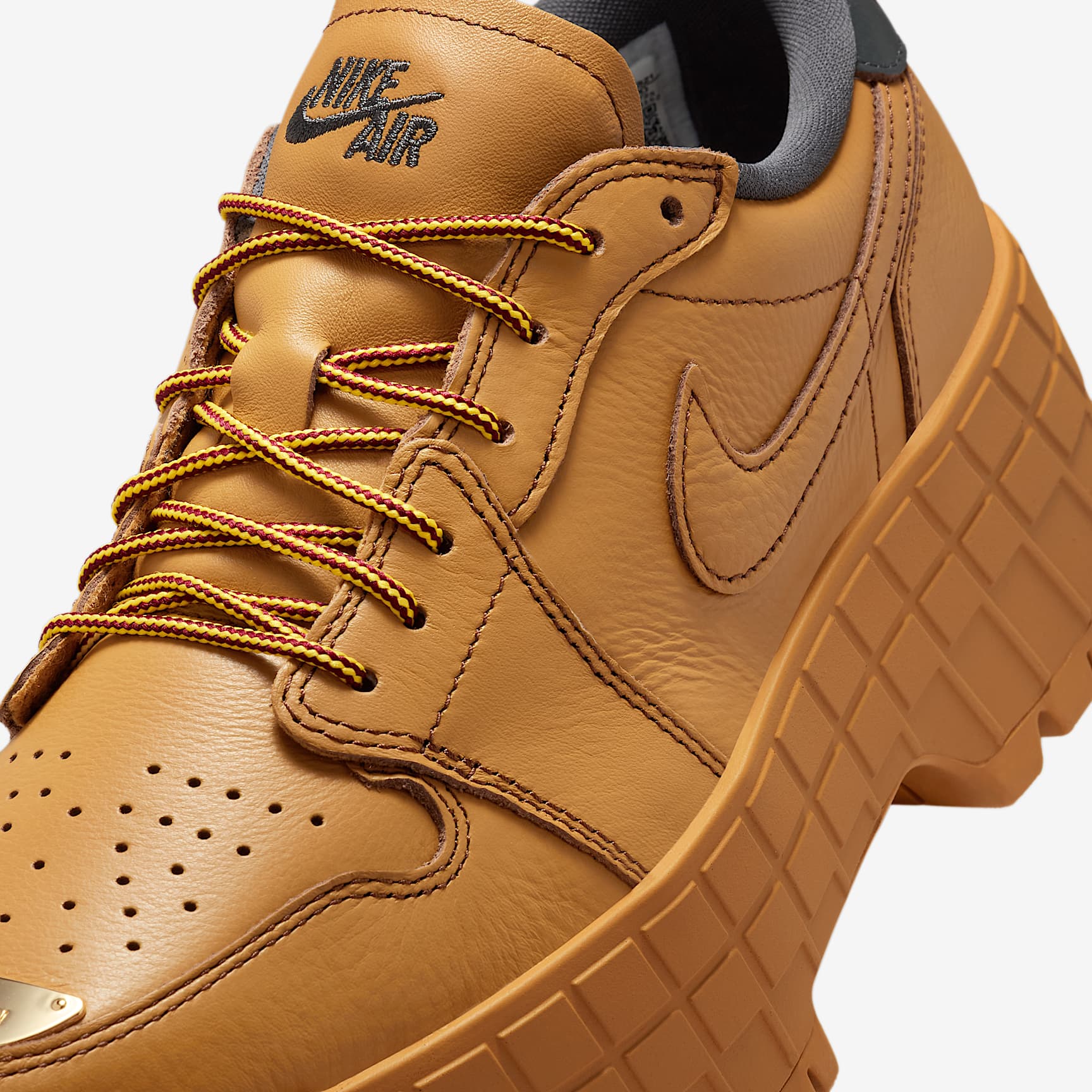Luxe full-grain leather combines with a chunky platform to pump up your personal style. Exaggerated outsole lugs and Nike Air cushioning support your every step. And don't sleep on the AJ1 DNA: A diamond inset on the heel displays Jumpman insignia, grounding your look in hoops heritage. Benefits * Genuine full-grain leather in the upper gives you a premium look and feel. * Nike Air in the heel helps cushion every step. * Foam midsole helps add soft, supportive cushioning. * Perforated toe box lets your foot breathe. * Elevated lugged rubber outsole adds height and extra comfort.