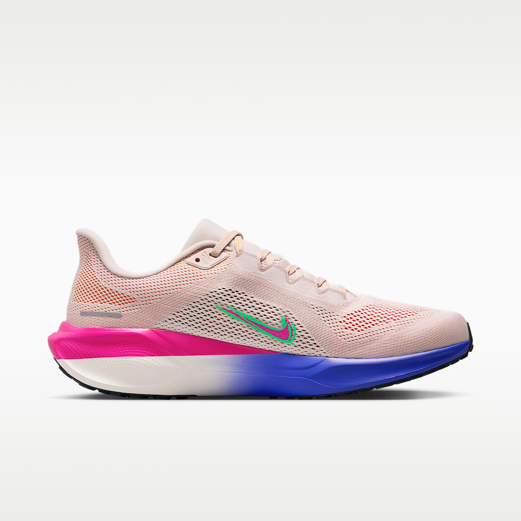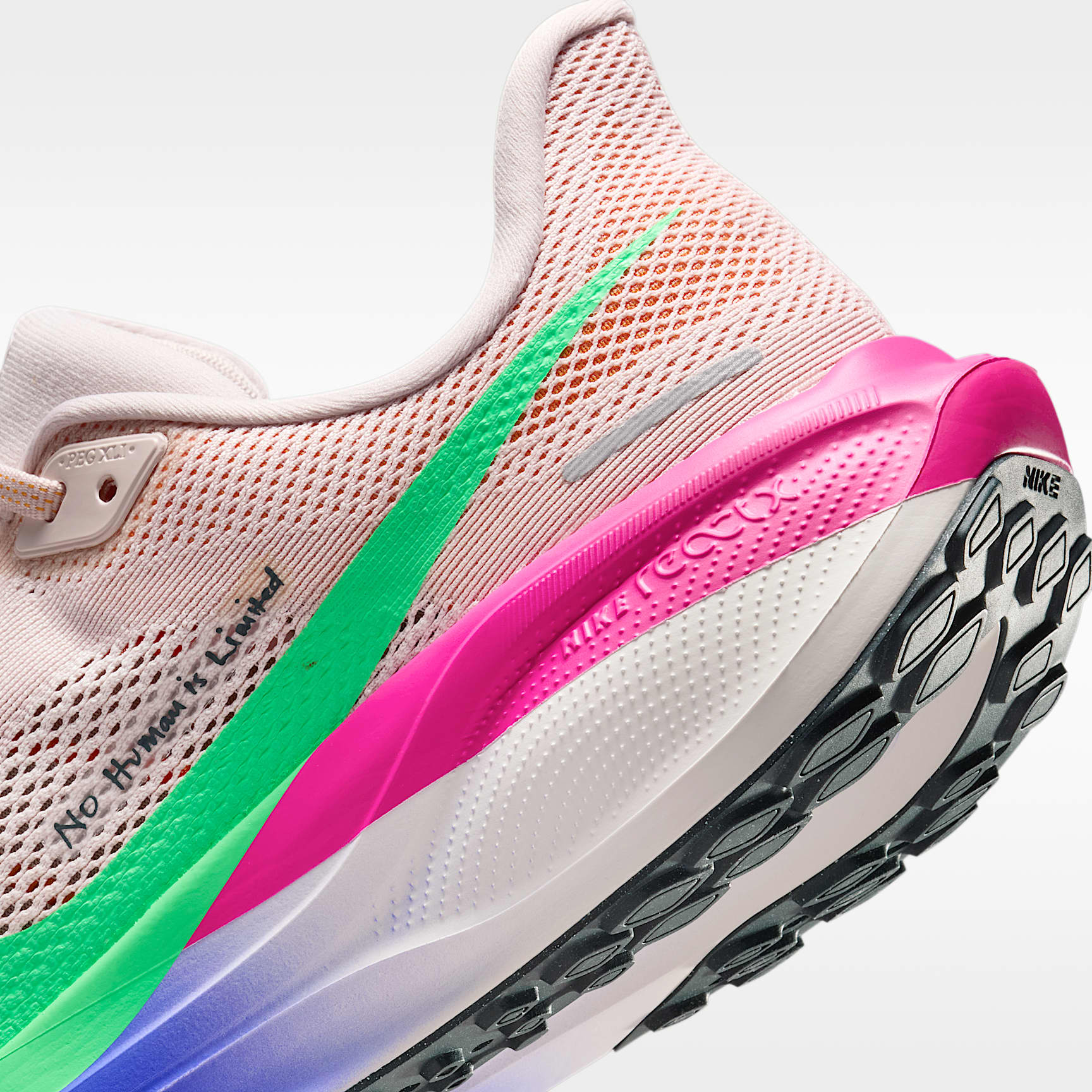 Responsive cushioning in the Pegasus provides an energised ride for everyday road running. Experience lighter-weight energy return with dual Air Zoom units and a ReactX foam midsole. Plus, improved engineered mesh on the upper decreases weight and increases breathability. Keep growing Whenever someone trains with Eliud Kipchoge, they're asked to plant a tree at his base camp to signify their growth. The sockliner graphics mimic that growth with branches moving forwards towards the front of the shoe. The Red Clay colour fade nods to the Kenyan dirt that stains the shoes when training. The font is a play on African trees that have fractal-like patterns on the surfaces. Key features * Upgraded breathable engineered mesh upper * ReactX foam midsole surrounds forefoot and heel Air Zoom units for an energised ride. * Signature waffle-inspired rubber outsole for traction and flexibility * A plush collar, tongue and sockliner for a secure and comfortable fit * What's new? All-new ReactX foam midsole is 13% more responsive than previous React technology. * Crafted for performance and planet, ReactX foam is engineered to reduce its carbon footprint by at least 43% in a pair of midsoles due to reduced manufacturing process energy compared with prior React foam. The carbon footprint of ReactX is based on cradle-to-gate assessment reviewed by PRé Sustainability B.V. and Intertek China. Other midsole components such as airbags, plates or other foam formulations were not considered. Product details * Weight: Approx. 297g (men's size 9) * Heel-to-toe drop: 10mm * MR-10 last—our best, most consistent fit (same as Pegasus 40) * Not intended for use as personal protective equipment (PPE)