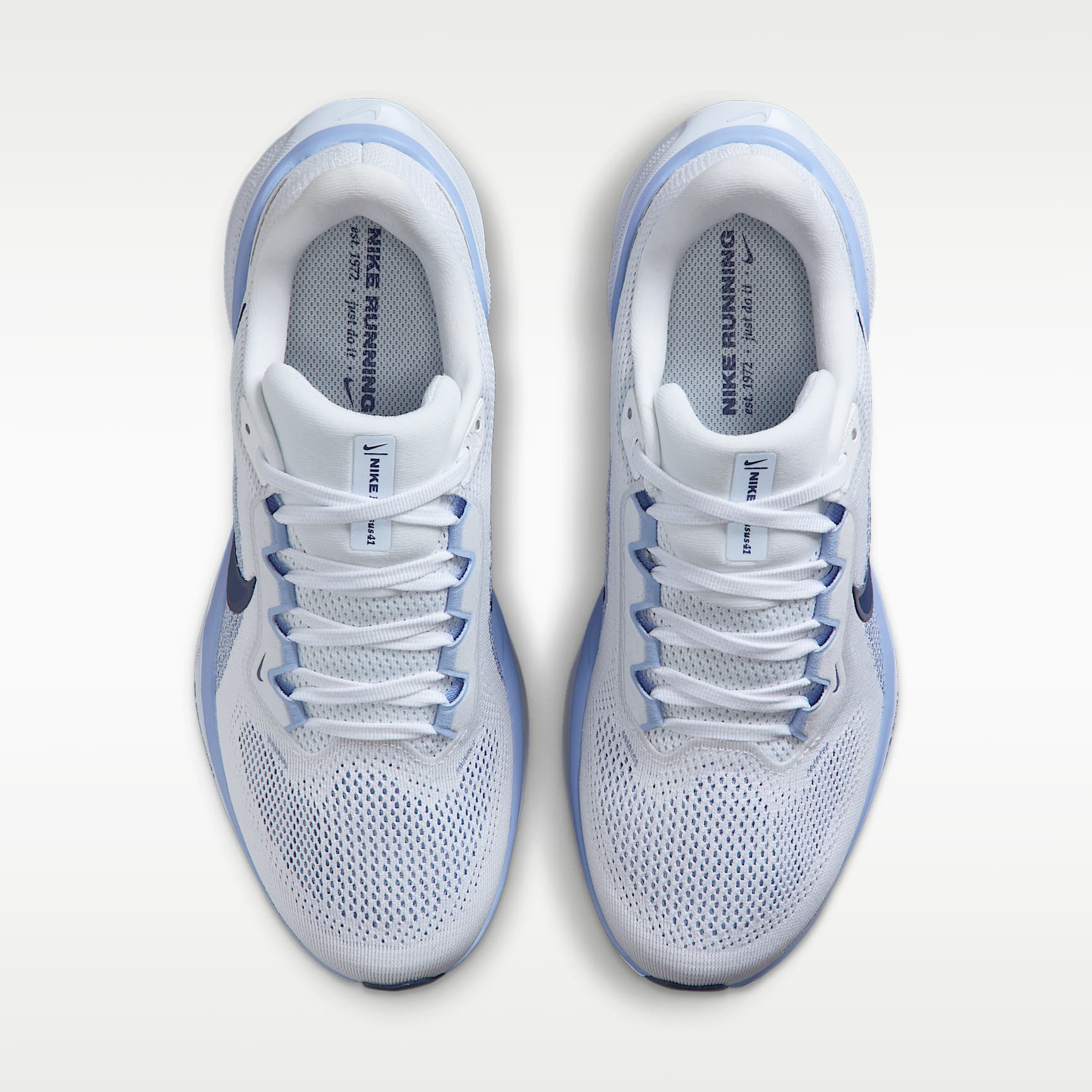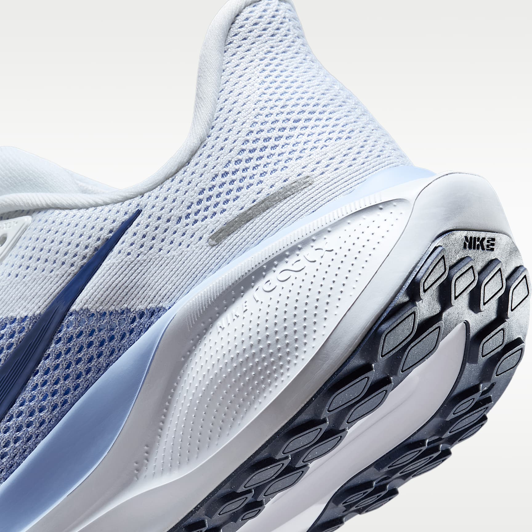 Springy foam plus snappy Air Zoom units equals our most energised ride. Responsive cushioning in the Pegasus provides an energised ride for everyday road running. Experience lighter-weight energy return with dual Air Zoom units and a ReactX foam midsole. Plus, improved engineered mesh on the upper decreases weight and increases breathability. Responsive Ride ReactX foam midsole surrounds forefoot and heel Air Zoom units for an energised ride. It's 13% more responsive than previous React technology. Waffle-inspired traction The signature Waffle-inspired rubber outsole provides traction and flexibility. Plush padding A plush collar, tongue and sockliner provide a secure and comfortable fit. What's new? * A ReactX foam midsole * A lighter, more breathable engineered mesh upper Product details * Weight: approx. 251g (women's size 5.5) * Heel-to-toe drop: 10mm * MR-10 last—our best, most consistent fit (same as Pegasus 40) * Reflective design details * Not intended for use as personal protective equipment (PPE)