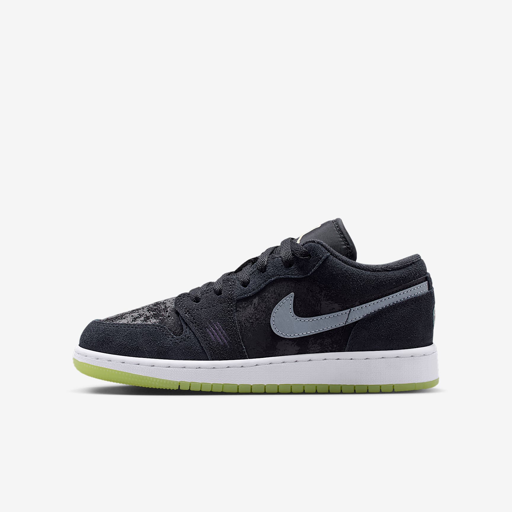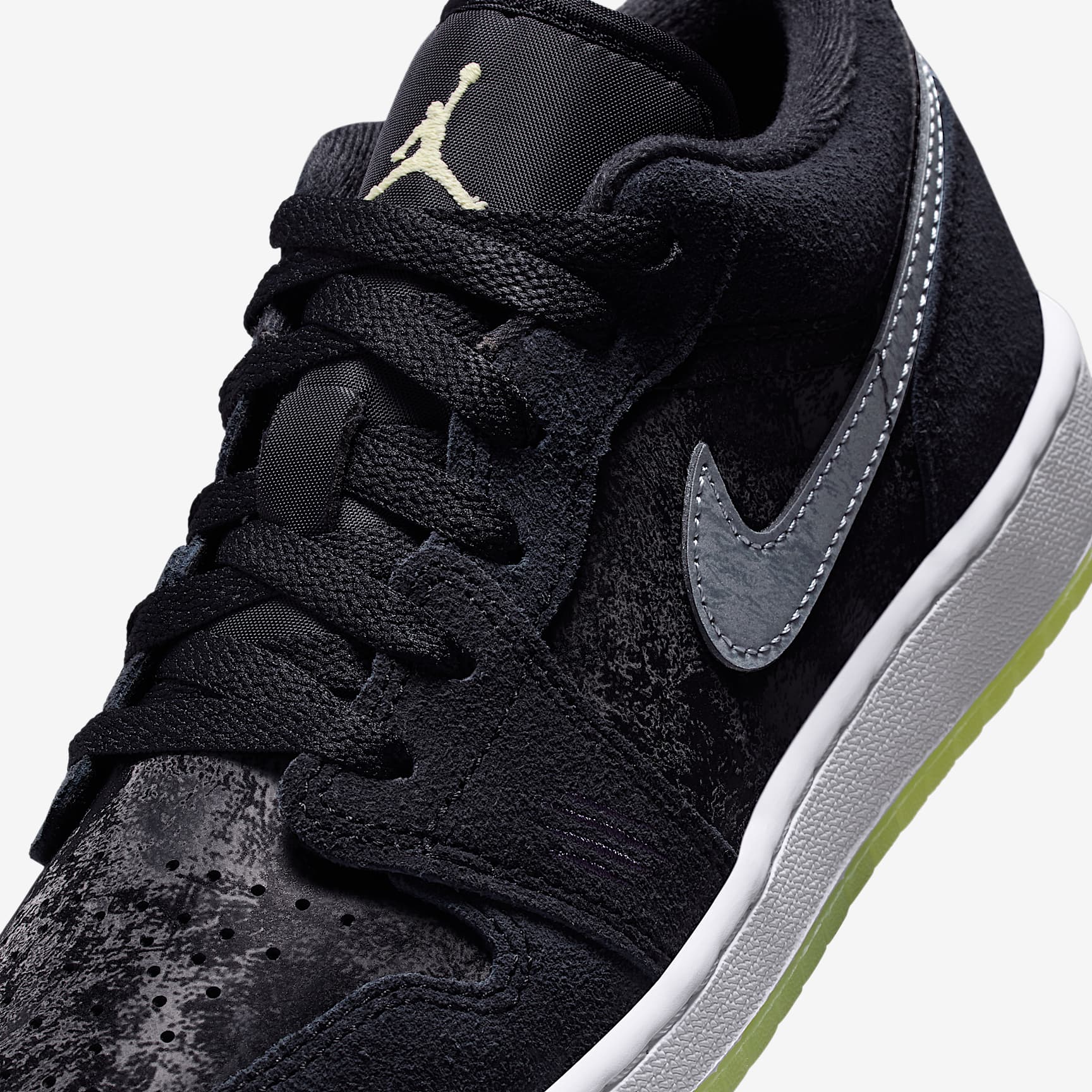 An iconic look that lasts. This AJ1 pairs the classic design of the original with premium materials that will keep you going all day, and glow in-the-dark details to light up the night. Benefits * Real and synthetic leather in the upper offers durability and structure. * Encapsulated Nike Air-Sole unit provides lightweight cushioning. * Rubber in the outsole gives you everyday traction. Product Details * Stitched-down Swoosh logo * Jumpman on tongue * Not intended for use as Personal Protective Equipment (PPE)