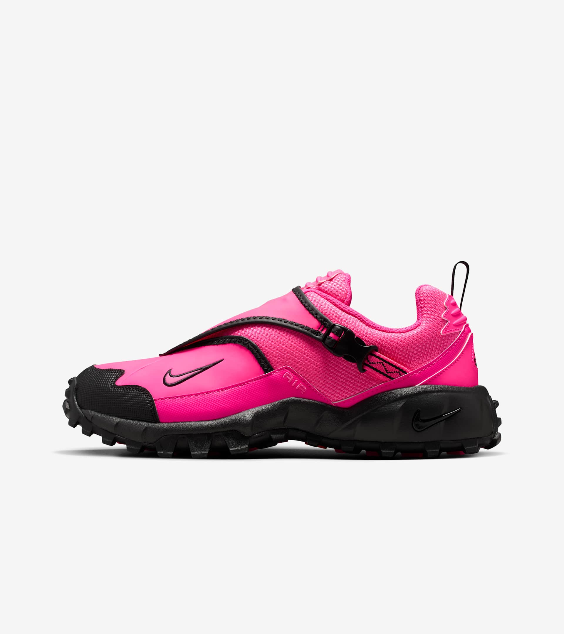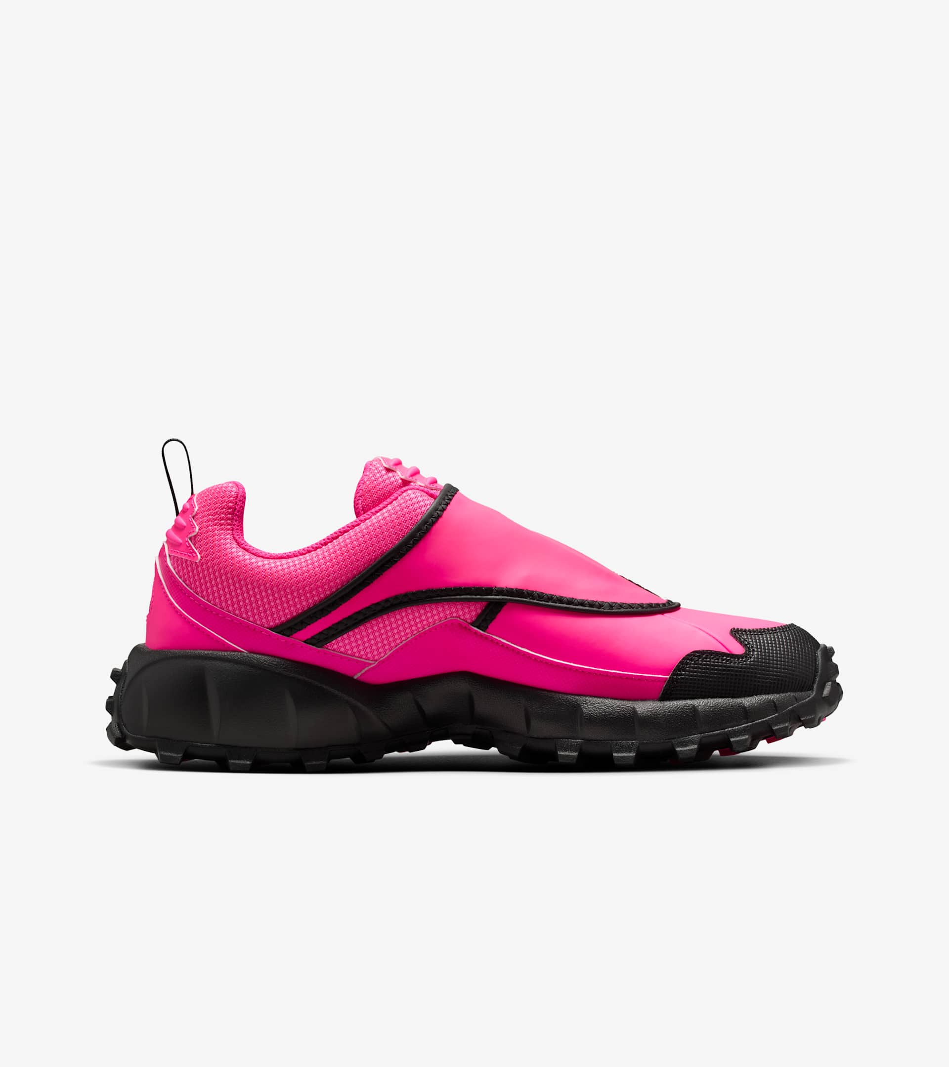 This 2003 trail runner is back and ready for your next adventure. A shroud inspired by tent flaps covers the laces for a clean look. The Hyper Pink and black colourway includes high-density overlays that wrap the toe and mudguard for added texture and durability. A mesh lining helps provide breathable comfort when temps climb. And the rugged outsole is ready for the road ahead, even when that road is off-road. SKU: HM7133-600