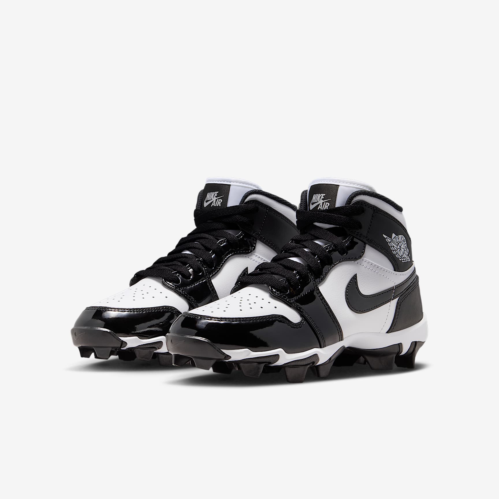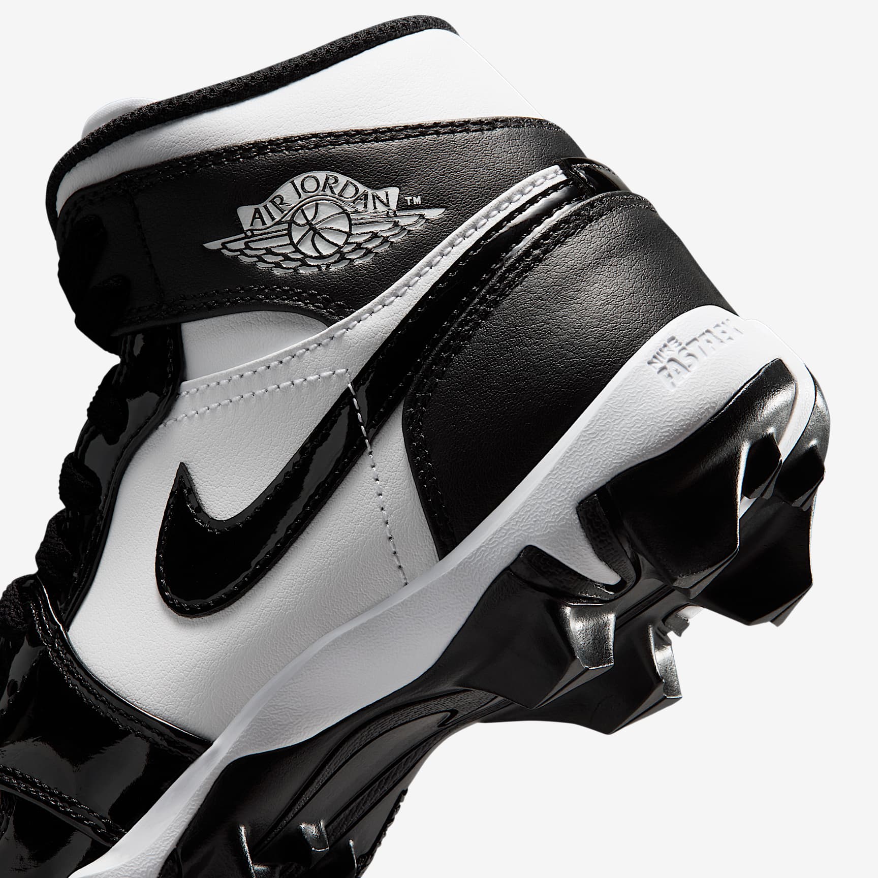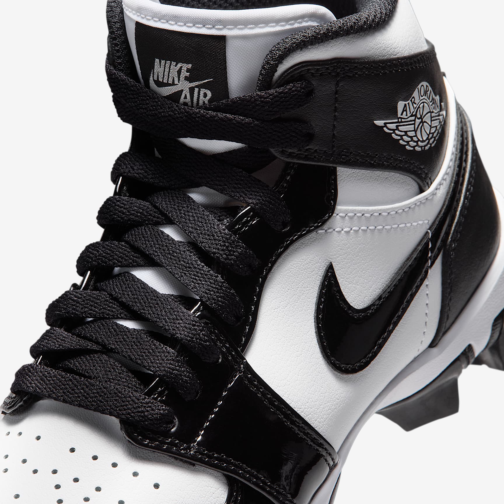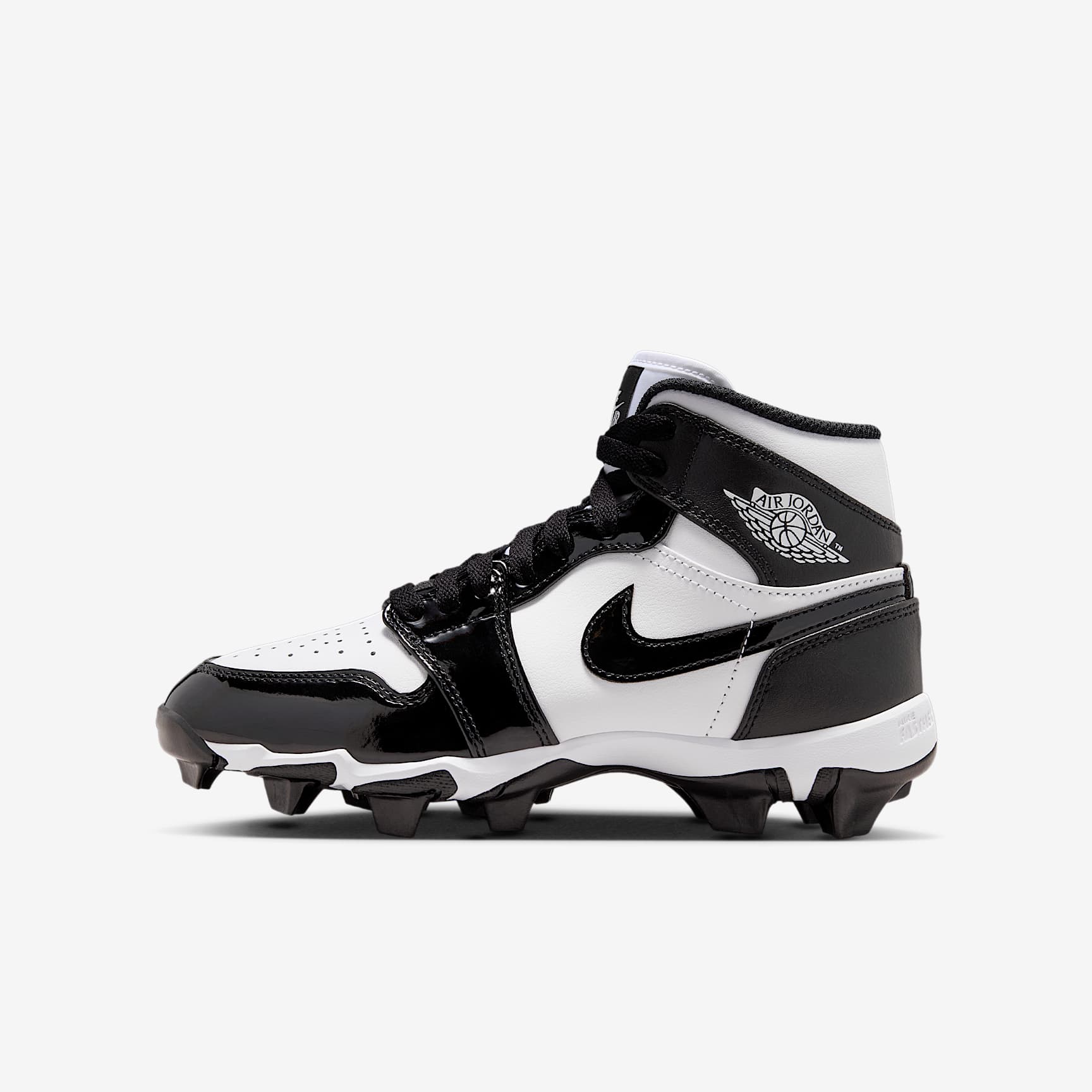 No matter what game you're playing, the Jordan 1 cleat is here to help give you a little extra edge on the field. Its wide stud placement helps you cut fast while external pods deliver optimal traction for quick pivots. Plus, its durable design is ideal for whatever activity you choose—whether that’s football, baseball, softball or lacrosse. Benefits * Upper takes the best parts of the AJ1 and reimagines the silhouette as a cleat. * Synthetic leather adds durability and structure. * Wide stud placement helps you make quick cuts on the field. Product Details * Classic laces * Perforations on toe