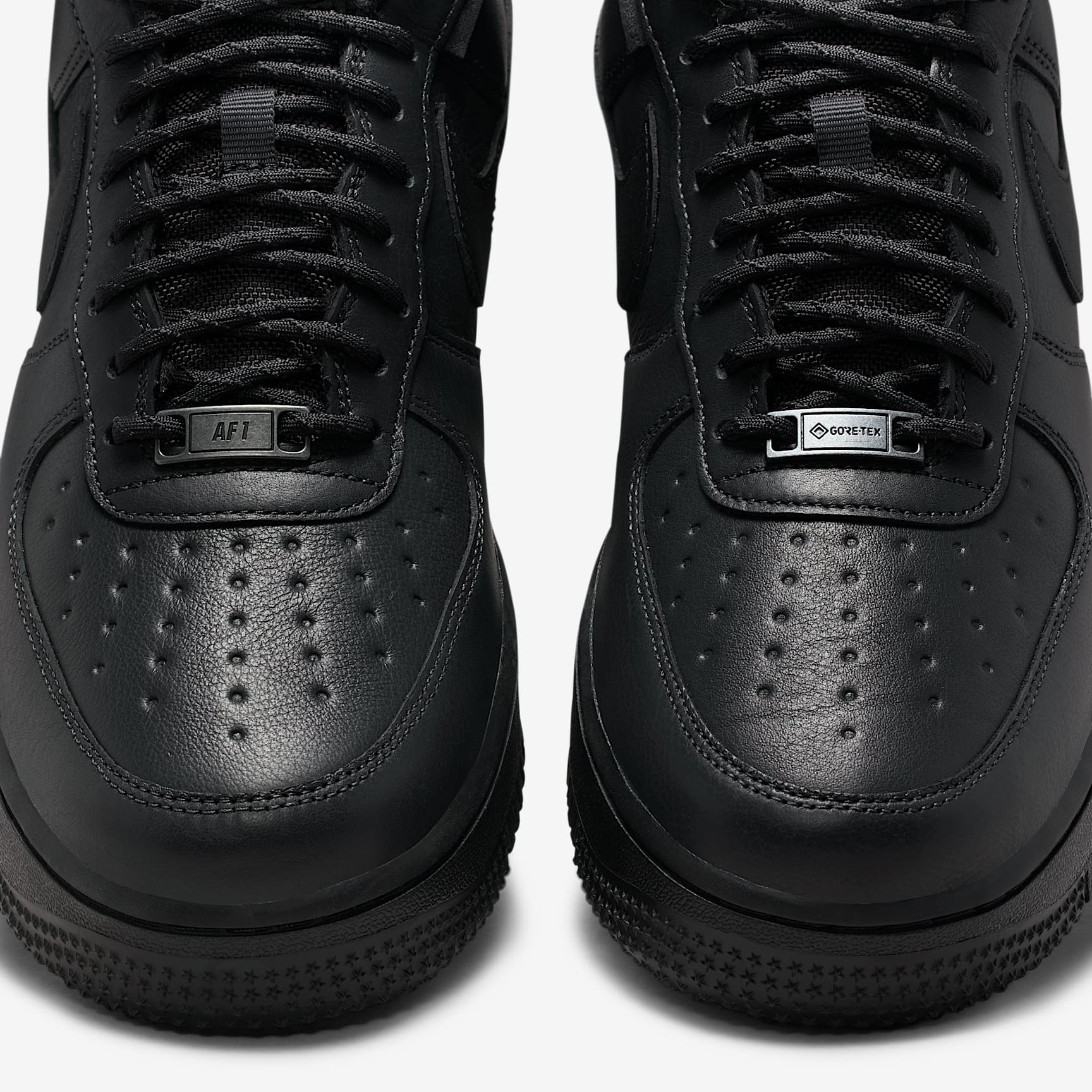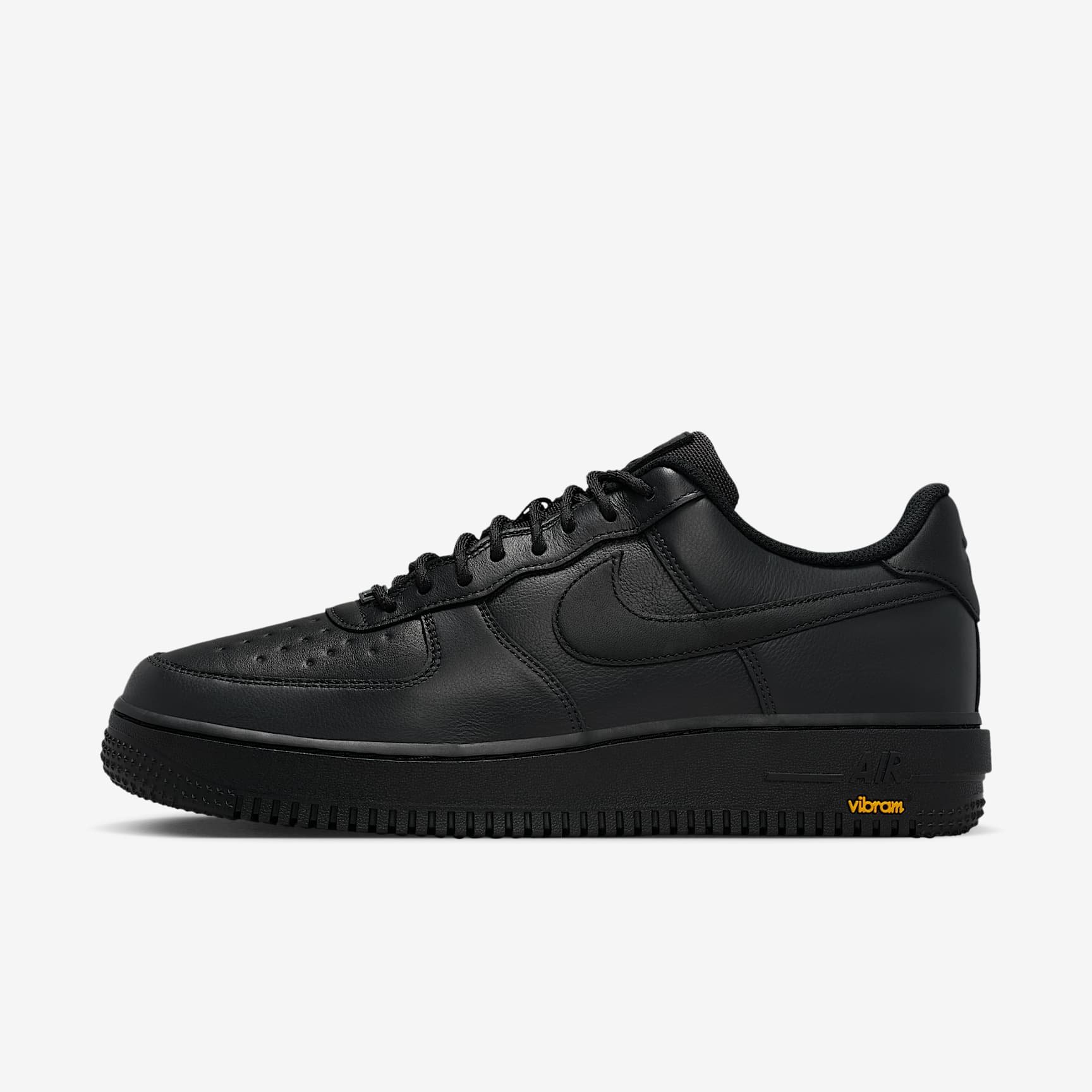 The AF1 has always been a rugged shoe, but we're takin' it to the next level. The all leather upper sits atop a waterproof GORE-TEX membrane that helps protect you against rain, sleet and snow. Beneath that you got a Vibram sole designed to help you brave every wet, slippery and cold surface. Best winter ever? Benefits * Leather and GORE-TEX make for a durable shoe. * Vibram outsole adds traction and durability. Product Details * Padded collar
