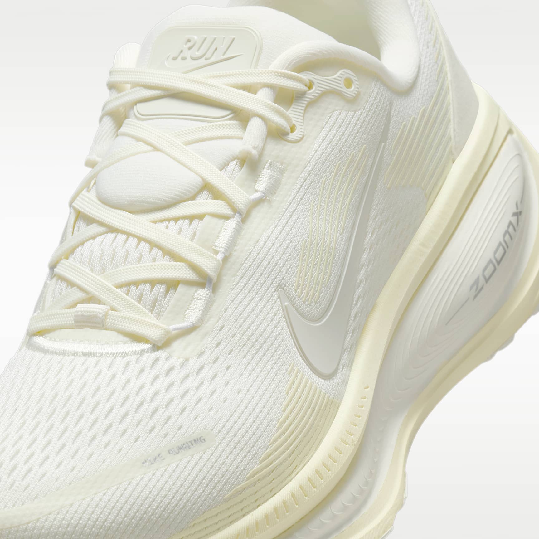 Maximum cushioning in the Vomero provides a comfortable ride for everyday runs. Our softest, most cushioned ride has lightweight ZoomX foam stacked on top of responsive ReactX foam in the midsole. Plus, a redesigned traction pattern offers a smooth heel-to-toe transition. Engineered mesh upper The upper is made from engineered mesh for soft breathability. Dual-density midsole Our dual-density midsole has ZoomX foam stacked on top of ReactX foam—13% more responsive than previous React technology—for a comfortable ride. Pods around the outsole We placed pods around the outsole to help enhance agility and smoother heel-to-toe transitions. Plush padding A plush tongue and lining give you a comfortably snug feel. What's new? The newly stacked foam midsole with premium ZoomX on top of ReactX foam amplifies cushioned comfort. Product details * Weight: 263g approx. (women's UK 5.5) * Heel-to-toe drop: 10mm * MR-10 Last—Our best, most consistent fit * Not intended for use as personal protective equipment (PPE)