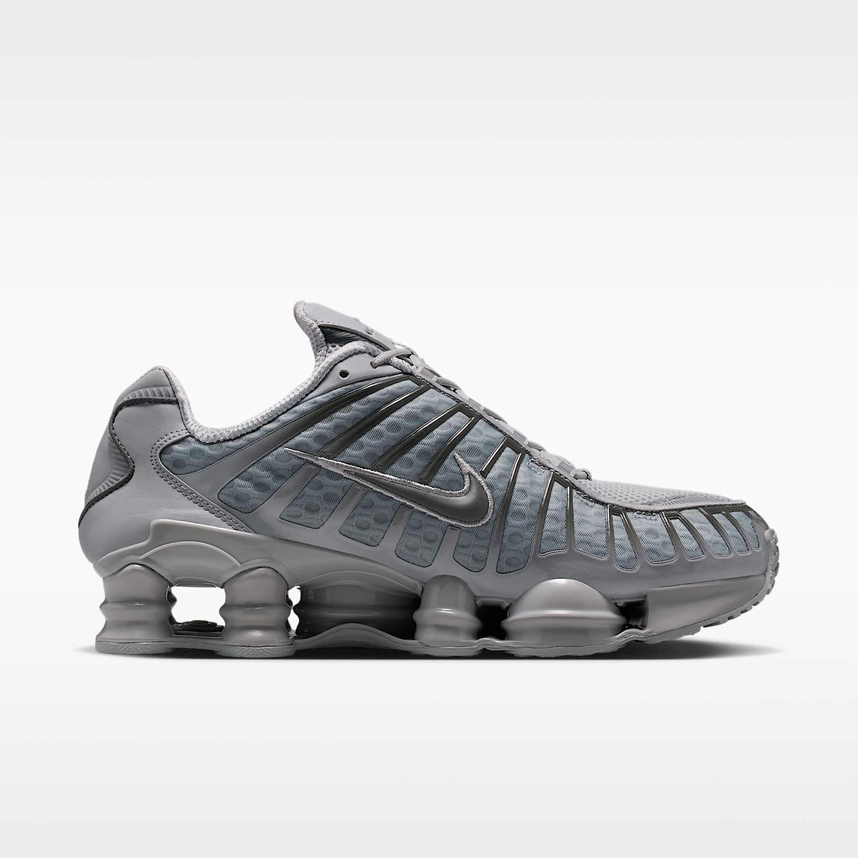 SHOCK AND AWE. The Nike Shox TL takes mechanical cushioning to the next level. A recrafted version of the 2003 icon, it features breathable mesh in the upper and full-length Nike Shox technology for optimal impact absorption and a bold look on the streets. Benefits * Nike Shox technology combines resilient, flexible columns with moderator plates for outstanding cushioning that compresses and regains its shape. * A combination upper with a full TPU cage is a near-exact replica of the 2003 Nike Shox TL. * Molded overlays throughout the midfoot provide support and a snug fit. * A TPU plate in the heel between the midsole and Nike Shox technology helps provide lateral stability and support. * A foam midsole provides lightweight cushioning. * Non-marking, solid rubber in a modified waffle outsole gives great traction and durability. Product Details * Synthetic and textile upper * Not intended for use as Personal Protective Equipment (PPE)
