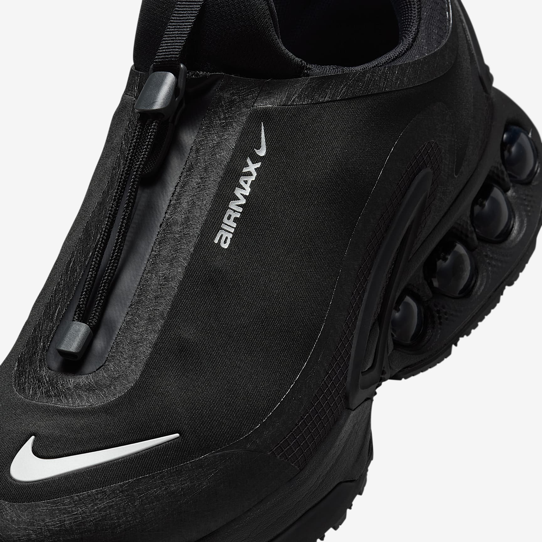 Hit the streets with confidence in this weatherised rendition of the Air Max Dn. While maintaining its Dynamic Air unit cushioning system, we added a waterproof zip-up shroud and Nike Storm Tread for reliable coverage and traction. Maxxed Out coverage An inner sleeve creates a supportive feel, while a water-repellent zip-up shroud covers the laces to help keep out rain. Maxxed Out traction Rubber outsole combines Nike Storm Tread and flex grooves to give you reliable, multi-surface traction. Maxxed Out durability The textile and synthetic leather upper features a rubber toe tip for a tactile look with extra durability. Maxxed Out Motion Our Dynamic Air unit system features two sets of dual-pressure tubes. With the firmest amount of pressure in the heel and the softest amount of pressure towards your midfoot, the air levels shift within each set for a smooth transition as you step. Product Details * Pull tabs * Reflective design branding