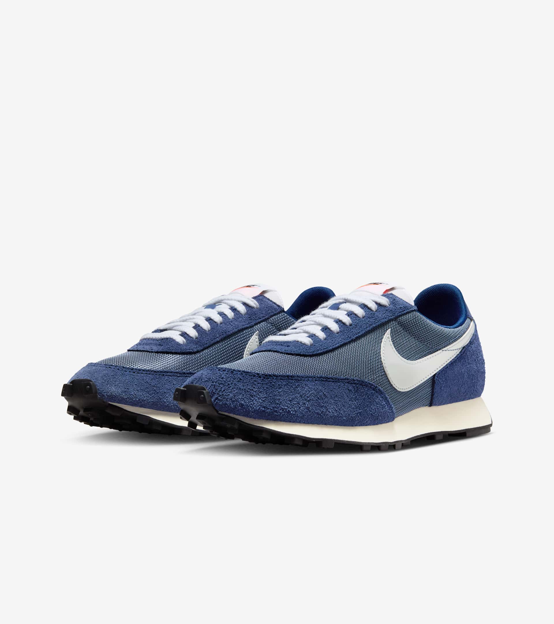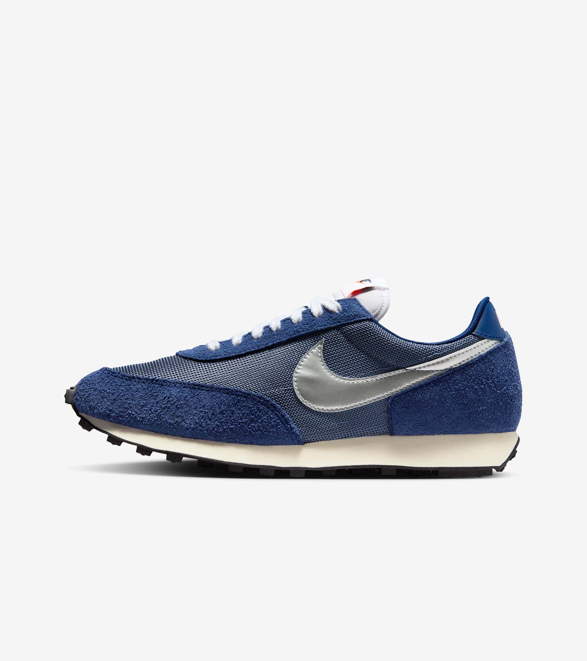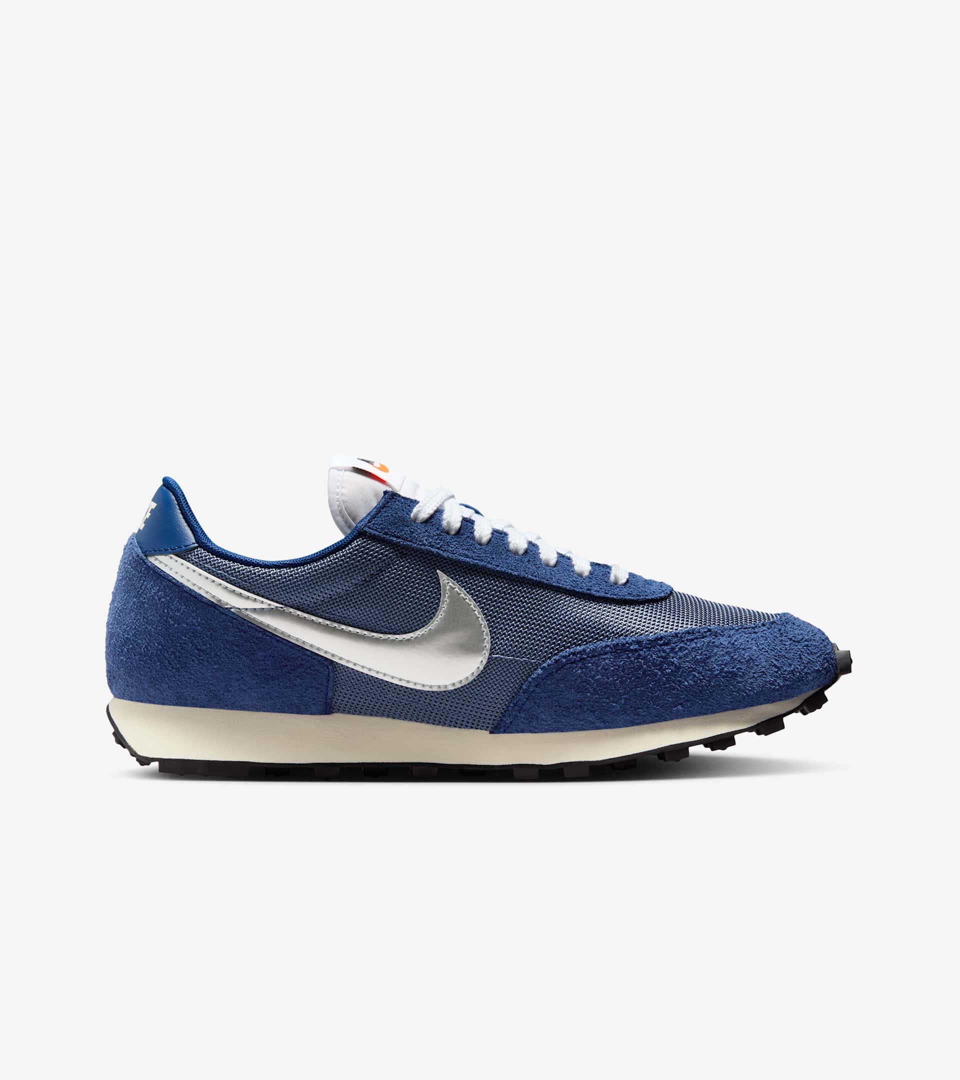 Nike's running heritage is older than the brand itself, dating back to the days when Blue Ribbon Sports catered to an up-and-coming crowd of serious runners. Inspired by an original design from the '70s running boom era, this Daybreak gives a nod to the sneaker's everlasting appeal by combining breathable mesh and shaggy suede. Metallic Silver accents glisten against the Blue Void and Diffused Blue colourway. And the vintage Waffle outsole? The day wouldn't break without it. SKU: BV7725-401