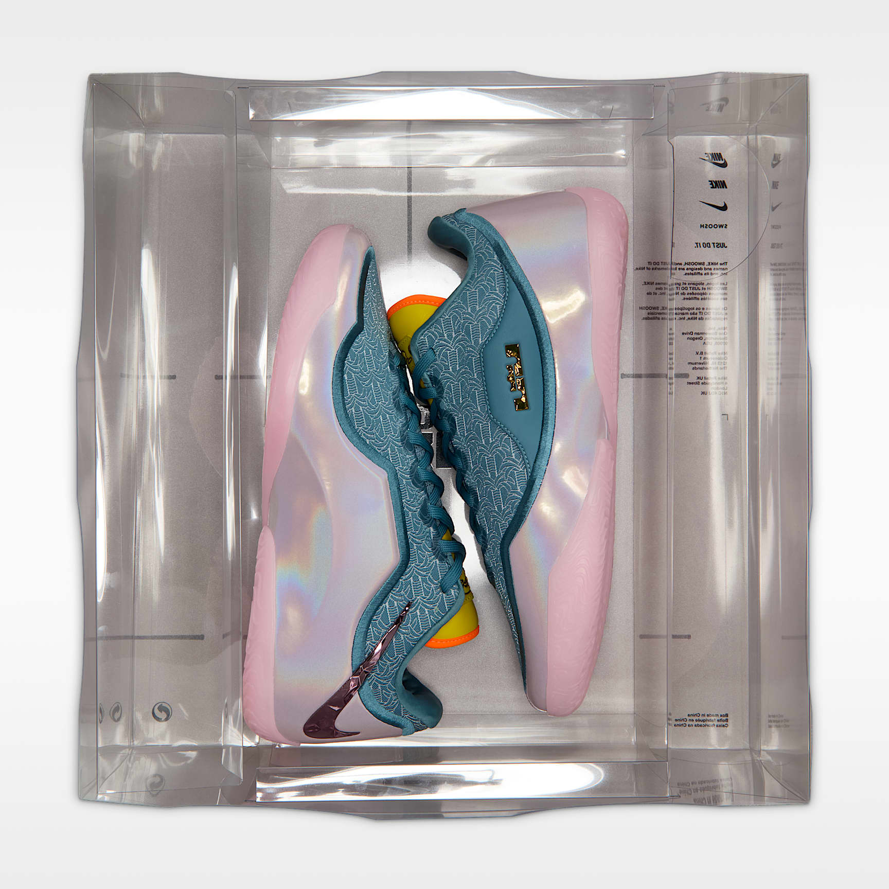 LeBron's carried the game for two decades. But what if we could help lighten the load? Enter the LeBron XXIII. It offers peak lightweight responsiveness thanks to springy, full-length ZoomX foam—perfect for the high speed demands of the modern game. This special design salutes his second ring and the indelible title-run moments that are forever commemorated in King history. Back-to-back One championship put LeBron in the conversation as a great. But back-to-back titles? Against one of the best dynasties ever? That's when his legacy was immortalised. This special design brings back those wavy Miami vibes, complete with a repeating palm tree graphic along the upper. Nods to some of your favourite LeBron models during his Heat days are everywhere too, including the slanted reverse Swoosh logo and iconic "LJ" crown. Unreal Bounce The LeBron XXIII offers ultimate lightweight responsiveness thanks to some of our best basketball technology. A full-length ZoomX drop-in midsole offers optimal bounce. And, a carbon-fibre plate helps keep your foot stable when making sudden movements while helping add a bit of speed. Stay sturdy Whether attacking the paint or applying perimeter pressure, the innovative containment system will help you stay locked in. Light Work With an engineered jacquard and premium bootie lining, the LeBron XXIII is the ultimate in lightweight luxury, so you can get to your spots and keep your cuts razor sharp. Quick Moves A sticky, squeaky multi-directional traction pattern offers you regal court feel, you'll stay a step ahead of all pretenders to the throne.
